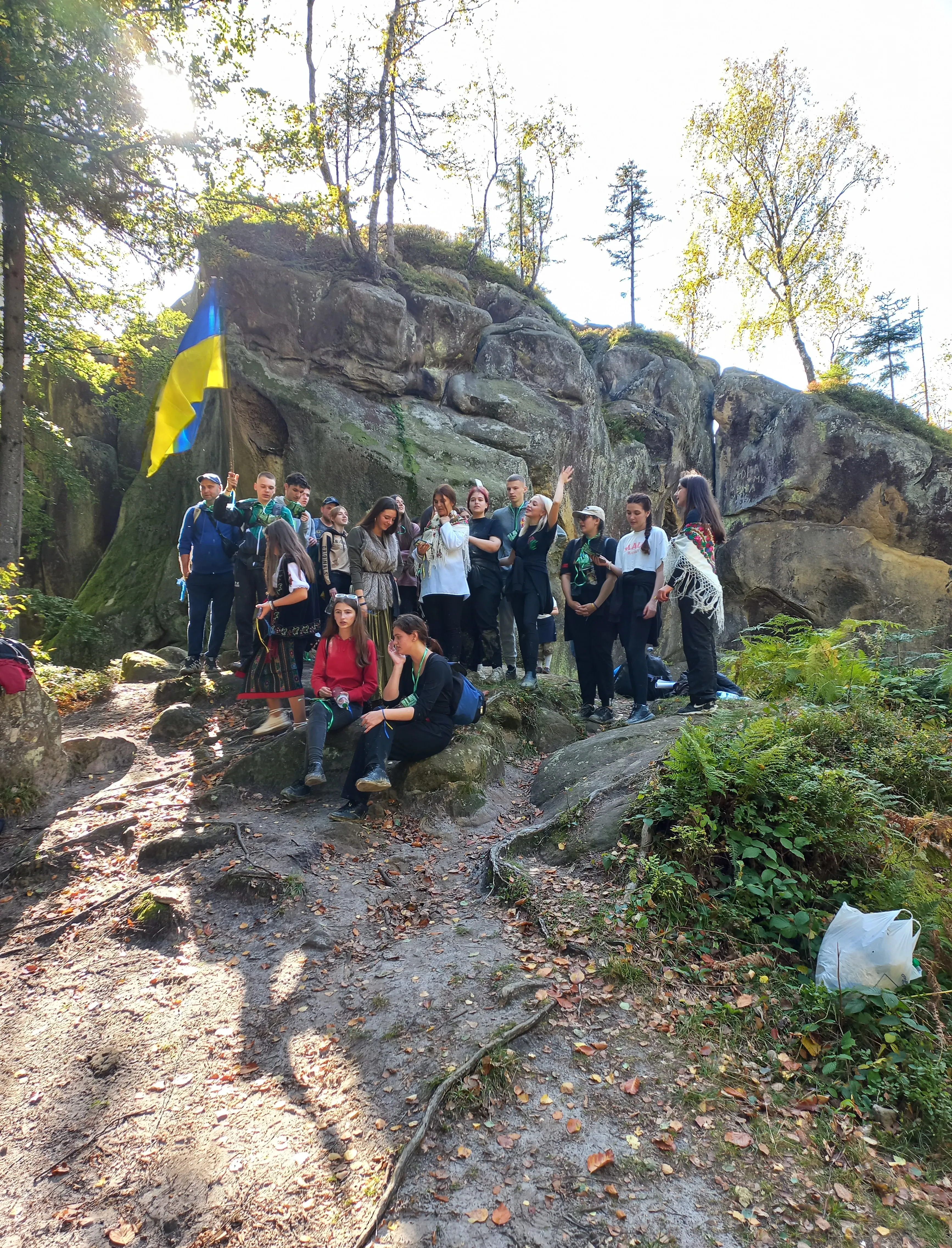 Далі студентів-першокурсників привезли до підніжжя перевалу Німчич. Тут розпочався їх пішохідний маршрут прекрасними карпатськими стежками. Новачкам роздавали паспорти із гімном та «кричалками» географічного факультету, щоб їм запам’яталося на довго студентське життя! Протягом маршруту новоспечені географи долали нелегкі підйоми та спуски, проходили болота під спів гімну геофаку, а четвертокурсники пропонували різні географічні завдання, випробовуючи їх. Там студенти, деякі вперше, побачили диво природи – геологічну пам’ятку природи – «Протяте Каміння» з відомим «Соколиним оком».