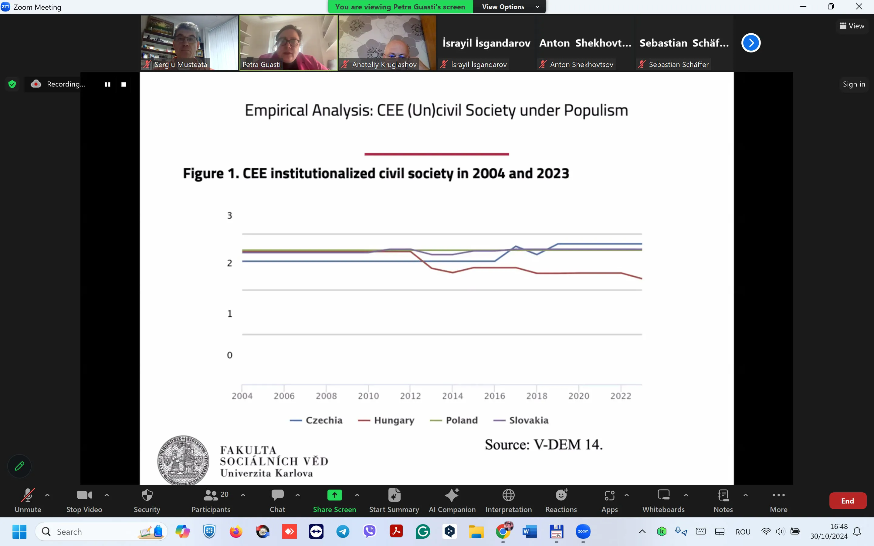 На цю дискусію їх організатором та модератором проф. Сержіу Мустяцею (Кишинів, Молдова) було запрошено експертів, а саме Петру Гуасті, факультет соціальних наук Карлового університету у Празі, Антона Шеховцова, Центральноєвропейський університет (Відень, Австрія), Анатолія Круглашова, зав. кафедри політології та державного управління Чернівецького національного університету імені Юрія Федьковича, і Себастьяна Шафера, директора Інституту Дунайського регіону і Центральної Європи (Відень, Австрія).