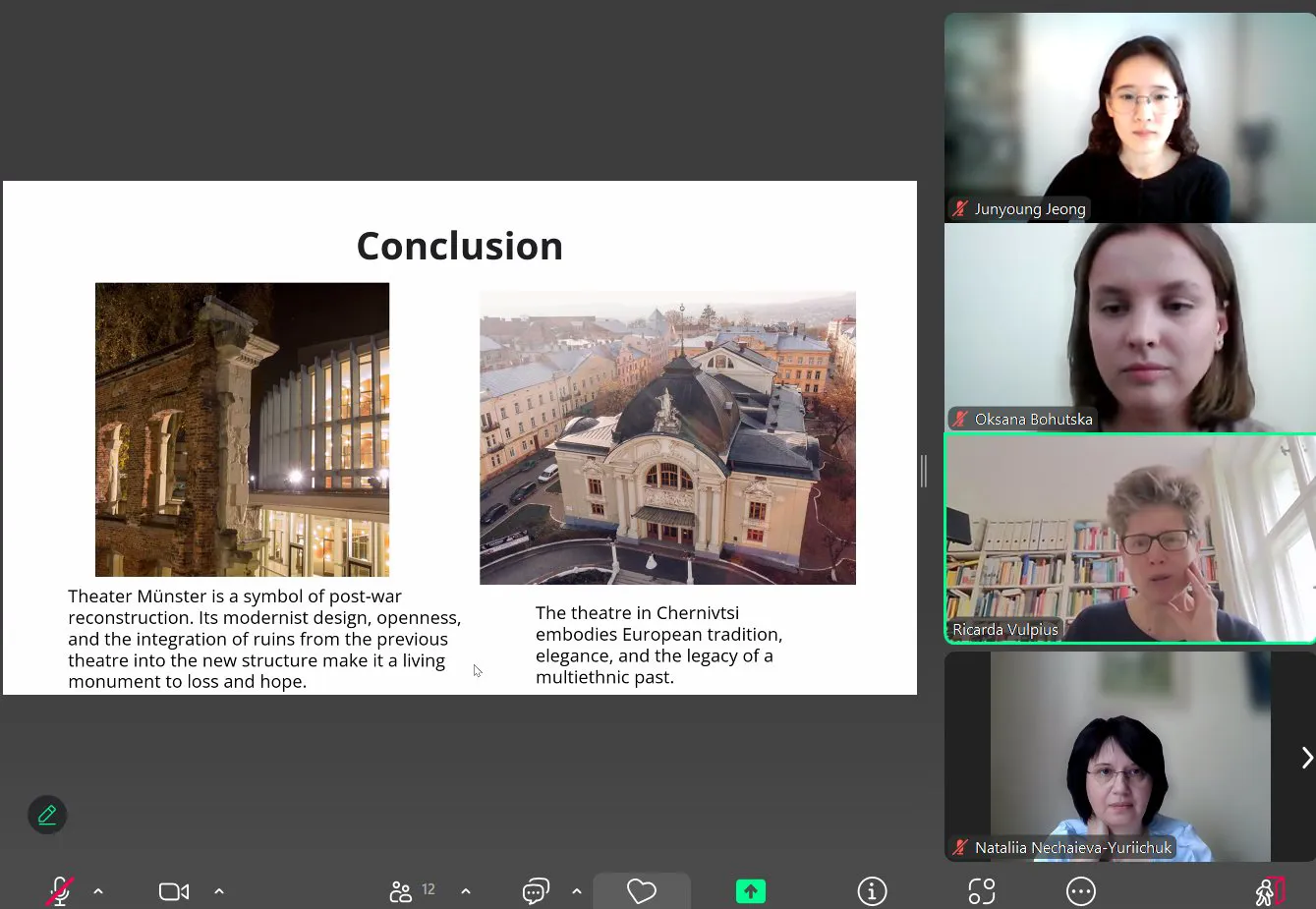 Оксана Богуцька, студентка кафедри історії України продовжує: «Даний курс дав можливість краще зрозуміти важливість збереження пам’яток, які несуть в собі багатовікову історію. Було цікаво познайомитися з пам’ятками Мюнстера, поєднати між собою ці два міста: одне з яких зазнало руйнувань під час Другої світової війни (Мюнстер), а інше вціліло (Чернівці), провести паралелі між готикою, класикою та модерном. Було дуже захоплююче».