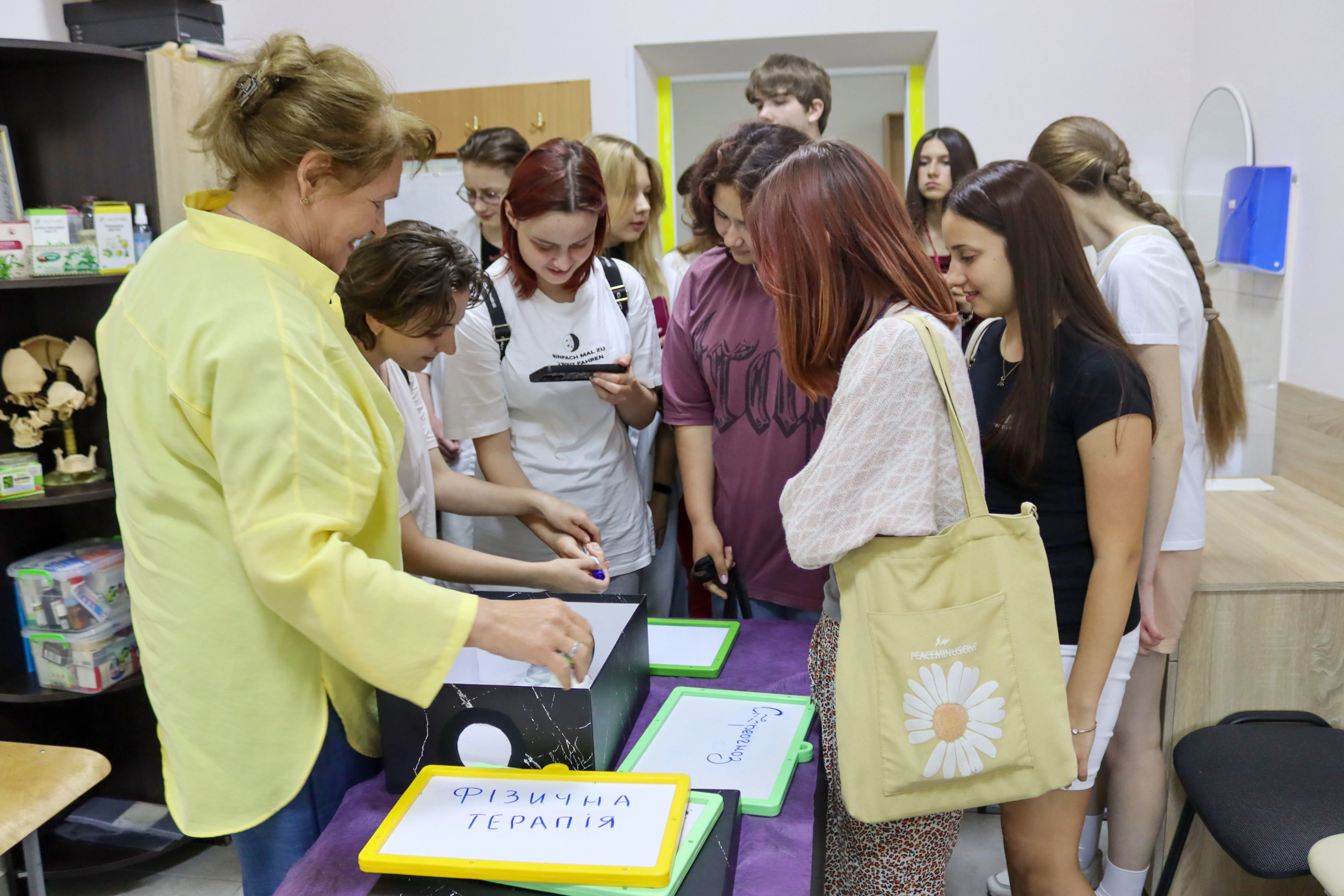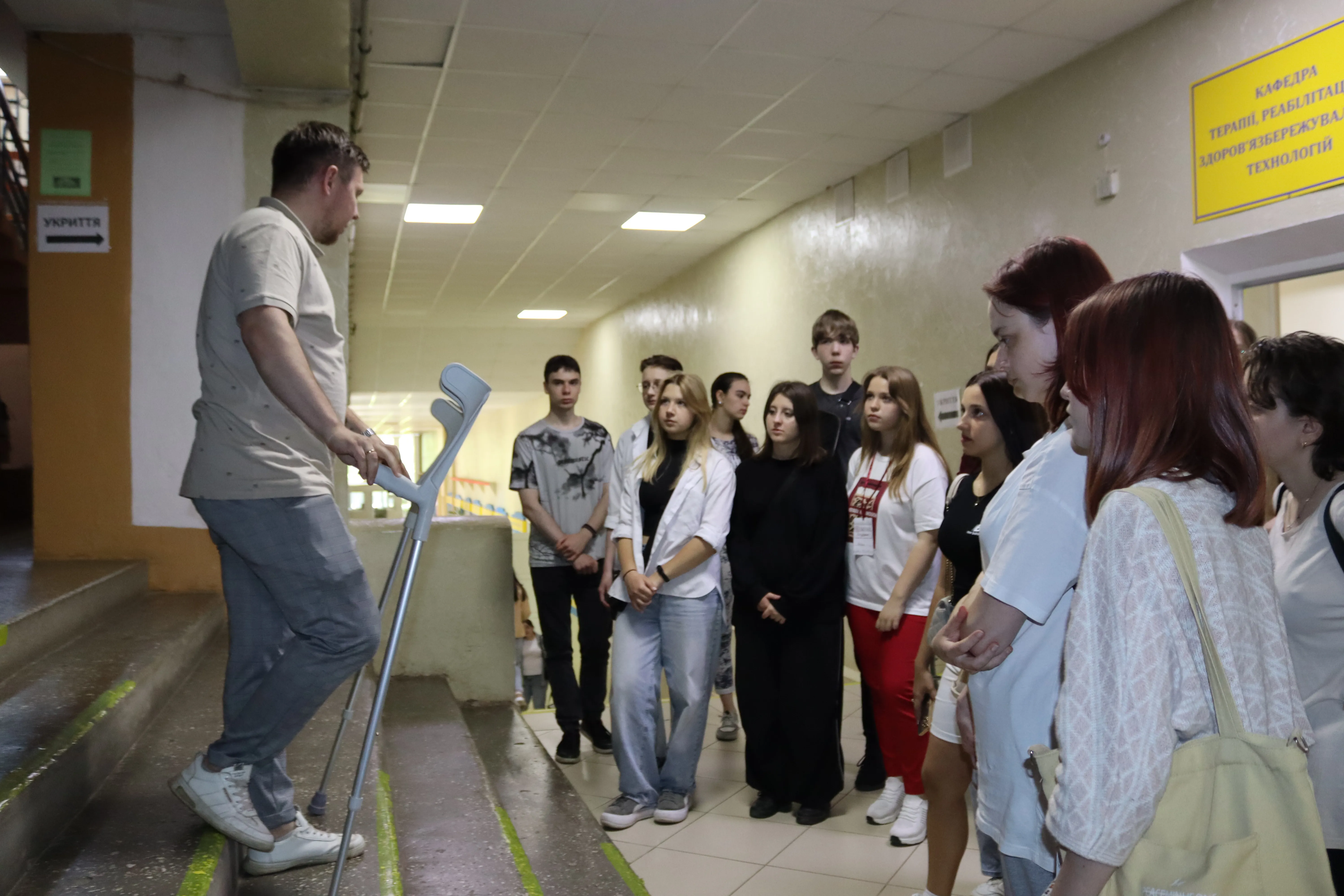 Якнайперше, учні були ознайомлені із авдиторними приміщеннями та інструментарієм, котрі допомагають у відновленні людям з інвалідністю. Охочі мали змогу відчути на собі важкий процес пересування із допомогою спеціальних засобів та важливість реабілітаційних обладнання та вчення.