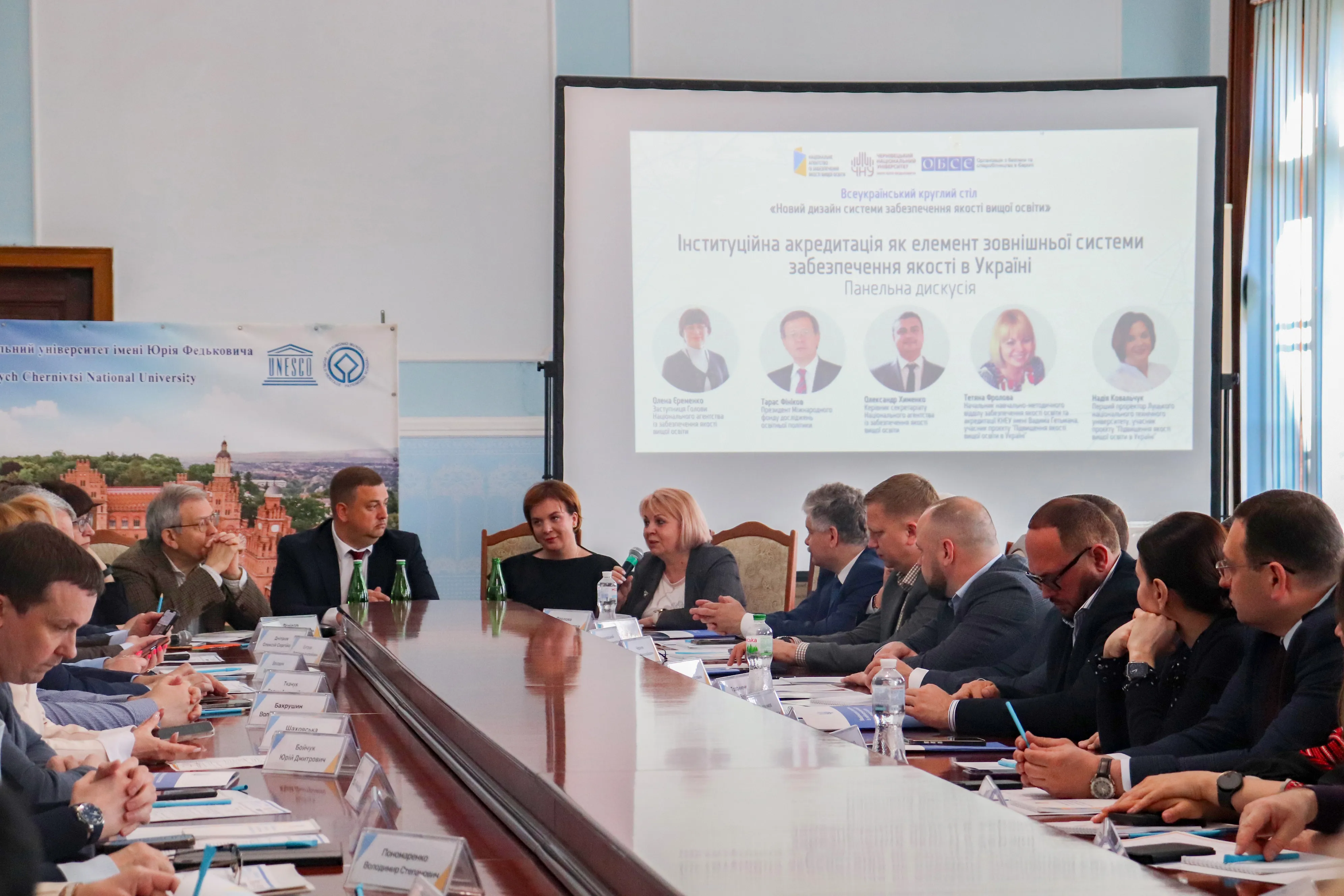 Дискусії проходили у форматі двох тематичних панелей: «Інституційна акредитація як елемент зовнішньої системи забезпечення якості в Україні» та «Ефективна модель забезпечення якості вищої освіти України».