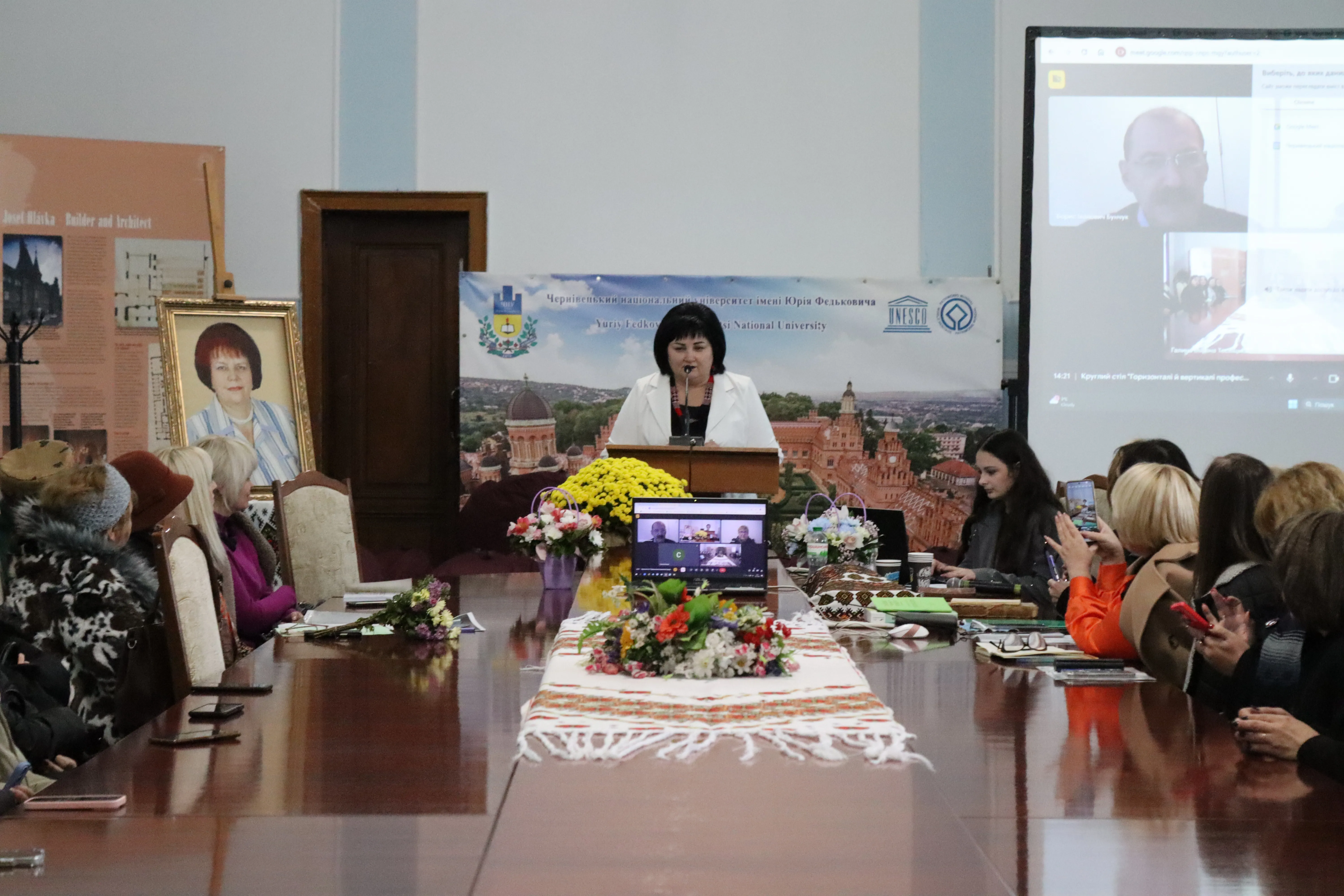 У Блакитній залі Чернівецького національного університету імені Юрія Федьковича відбувся круглий стіл «Горизонталі й вертикалі професора Ніни Гуйванюк», на якому в емоційно-чуттєвій атмосфері виступили викладачі кафедри сучасної української мови, зокрема доктор філологічних наук, професор Світлана Шабат-Савка, доктор філологічних наук, професор Наталія Руснак, доктор філологічних наук, професор Людмила Ткач, доктор філологічних наук, доцент Тетяна Гуцуляк, кандидат філологічних наук, доцент Алла Антофійчук, кандидат філологічних наук, доцент Оксана Максим՚юк, кандидат філологічних наук, доцент Людмила Томусяк, кандидат філологічних наук, доцент Іванна Струк, кандидат філологічних наук, асистент Галина Тесліцька, кандидат філологічних наук, доцент Наталія Шатілова, старший лаборант кафедри Юлія Константинюк. Ліричний супровід заходу створили студенти філологічного факультету ‒ Ольга Щур, Юліана Якименко, Каріна Щорчук.