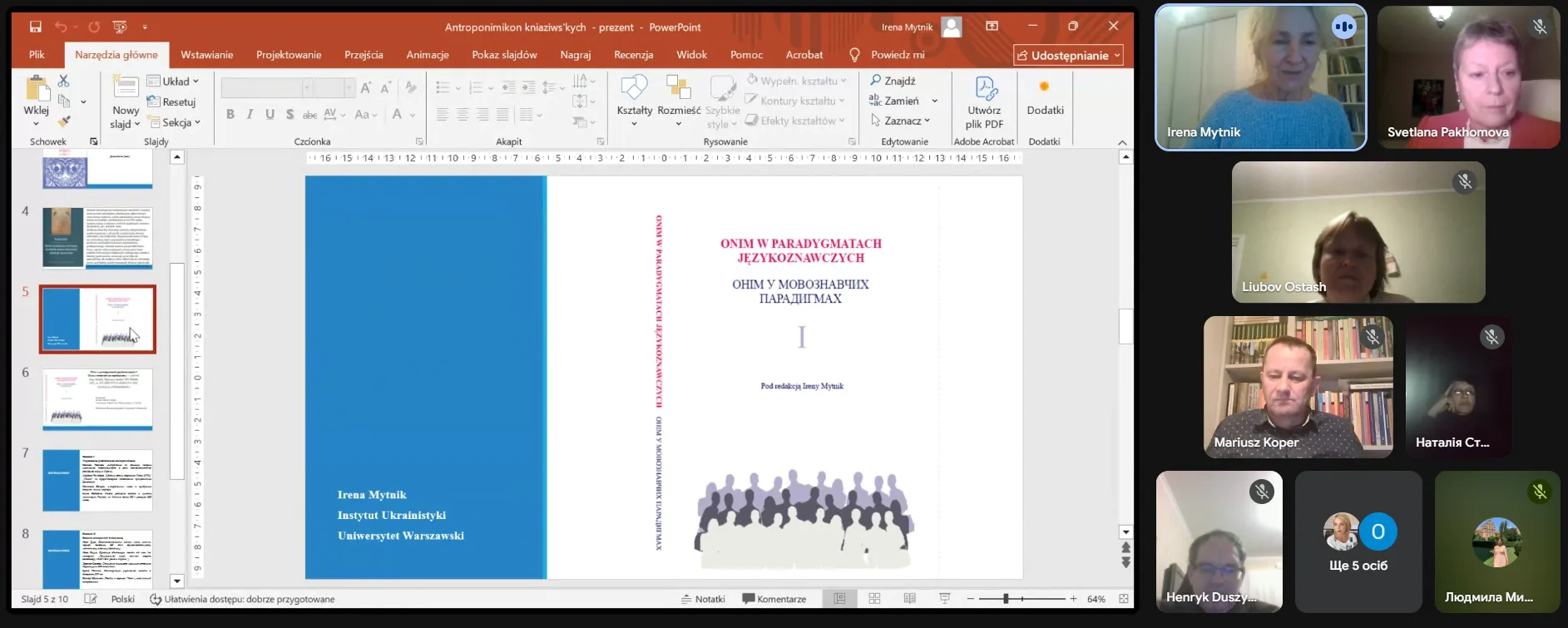 На завершення за традицією згаданого наукового заходу (а конференція відбулася цьогоріч втретє), було презентовано нові ономастичні видання: монографію Ірени Митник та Світлани Пахомової «Антропонімікон українського привілейoваного прошарку X-XVIII ст.» ( Warszawa-Siedlce: WN IKRiBL 2024, ss. 320) та збірник матеріалів попередньої конференції за ред. Ірени Митник «Onim w paradygmatach językoznawczych // Онім у мовознавчих парадигмах» (t. 1 pod red. Ireny Mytnik, Warszawa-Siedlce: WN IKRiBL 2024, ss. 255).