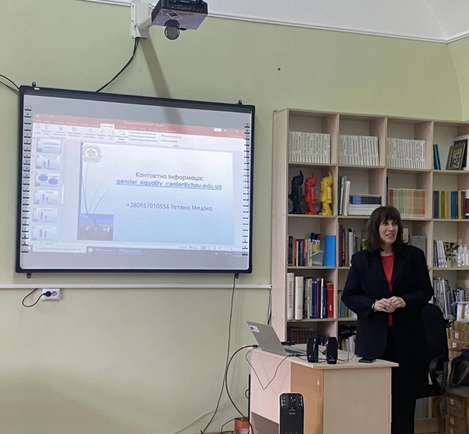 - Актуальні проблеми гендерної рівності в ЧНУ (Тетяна Медіна, кандидатка соціологічних наук, доцентка кафедри філософії та культурології, керівниця Центру гендерної рівності).