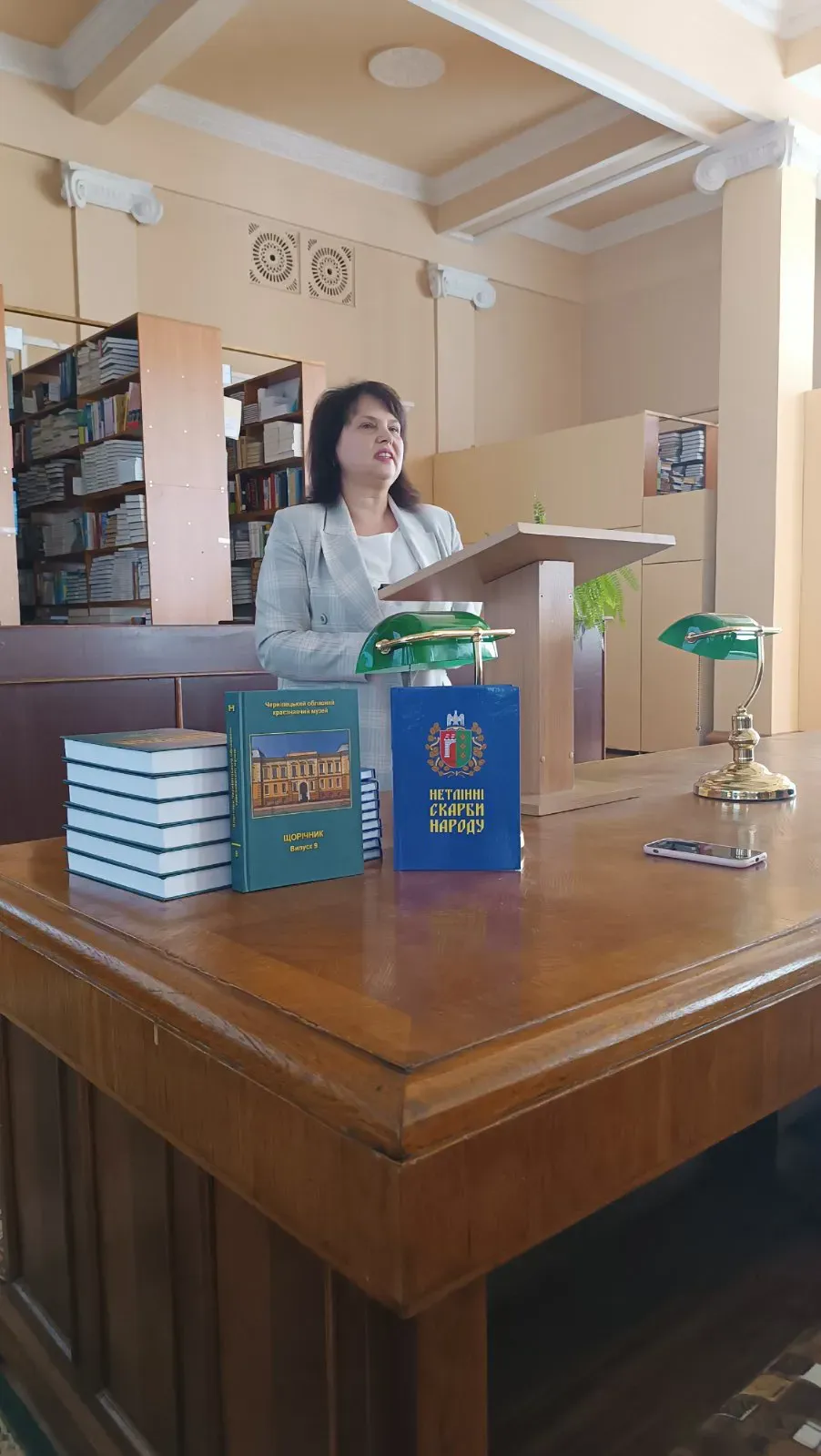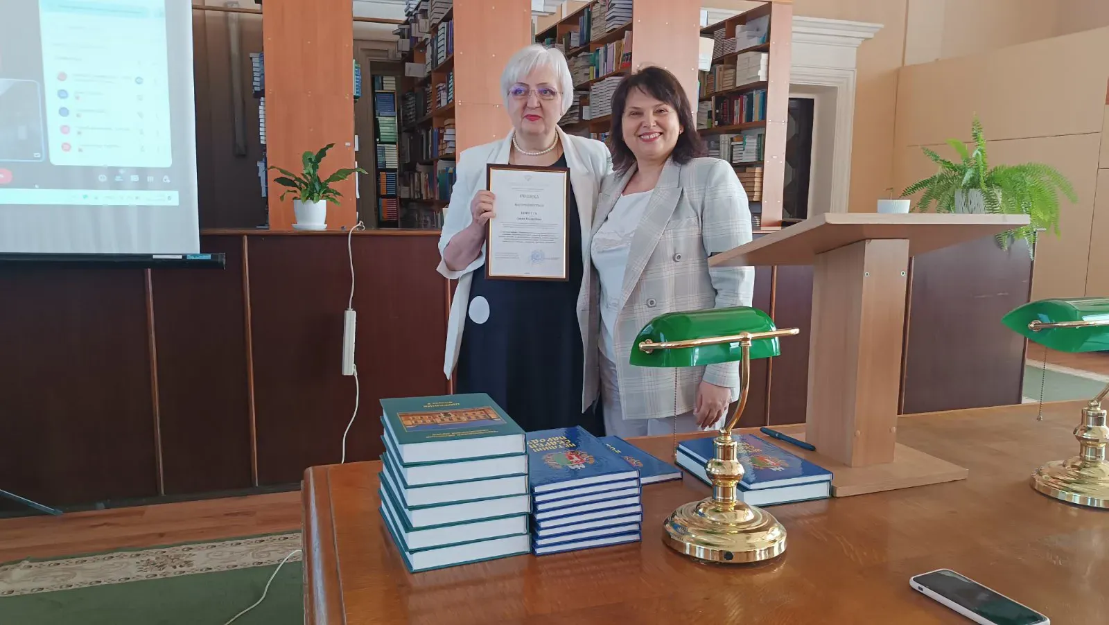 Олена Боднар привітала присутніх та вручила Подяку управління культури завідувачці кафедри архітектури та збереження об`єктів Всесвітньої спадщини ЮНЕСКО університету, заслуженій архітекторці України, професорці Ірині Коротун за вагомий внесок у збереження і популяризацію культурної спадщини. Разом з тим, пані Олена подарувала Науковій бібліотеці університету останні наукові видання, присвячені проблематиці охорони культурної спадщини, зокрема Каталог пам`яток Чернівецької області.