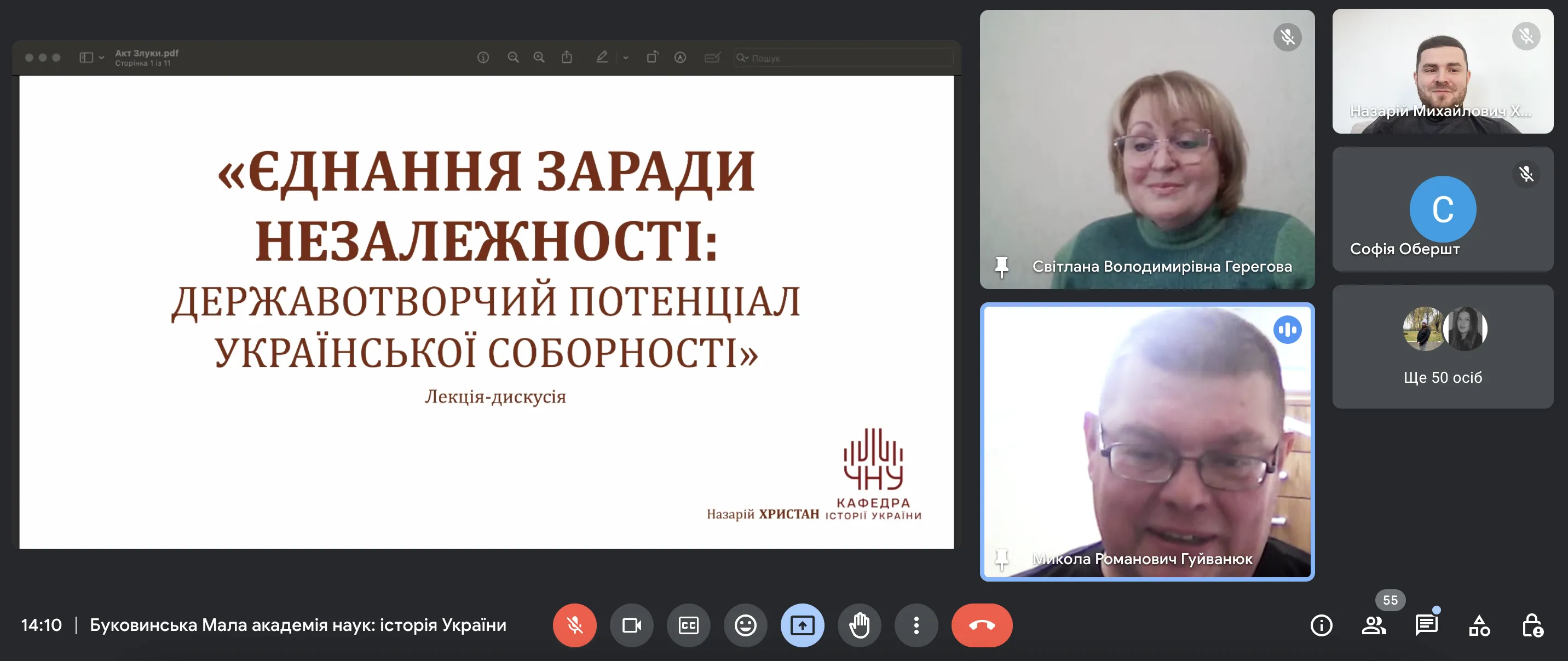 Лекція була організована для слухачів з Буковинської малої академії наук та учнівської молоді старших класів закладів освіти Чернівецької області. Перед початком учасники вшанували пам’ять загиблих Захисників України хвилиною мовчання із вдячністю за можливість жити, працювати і навчатись.