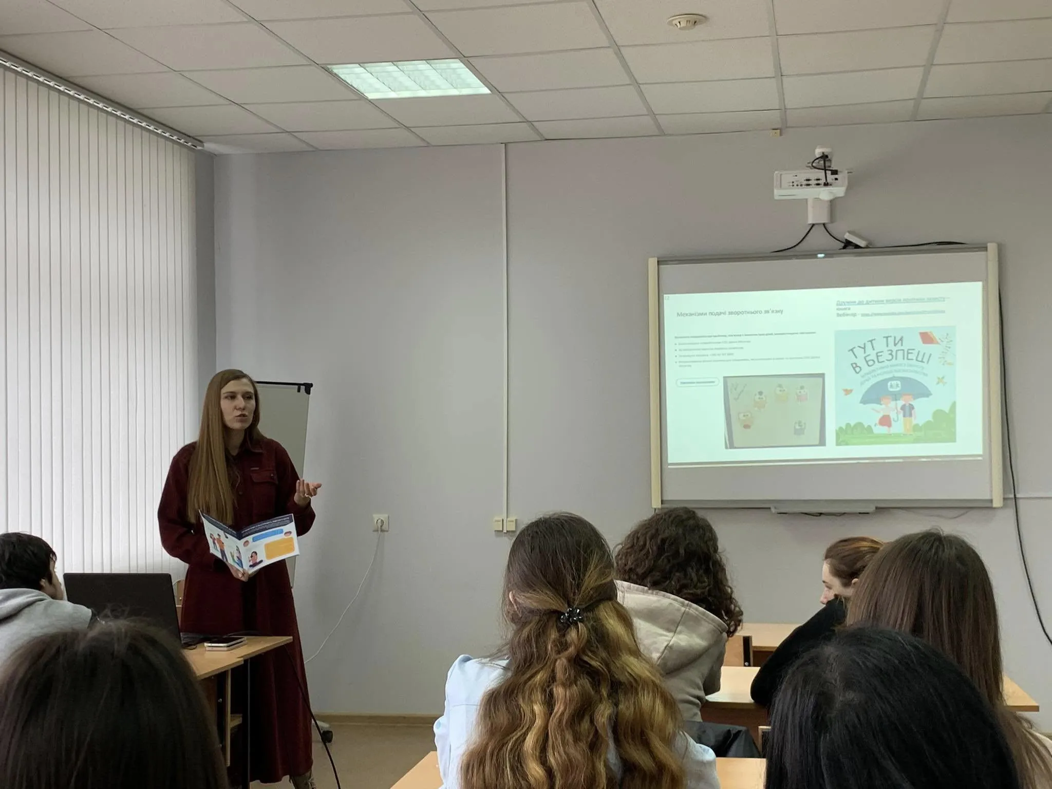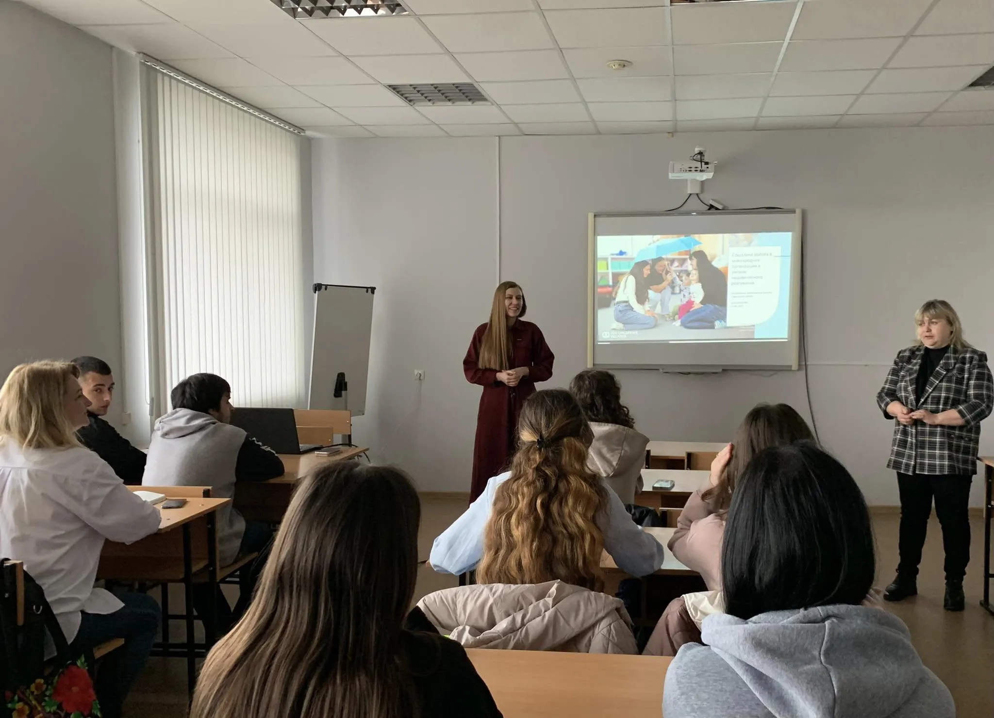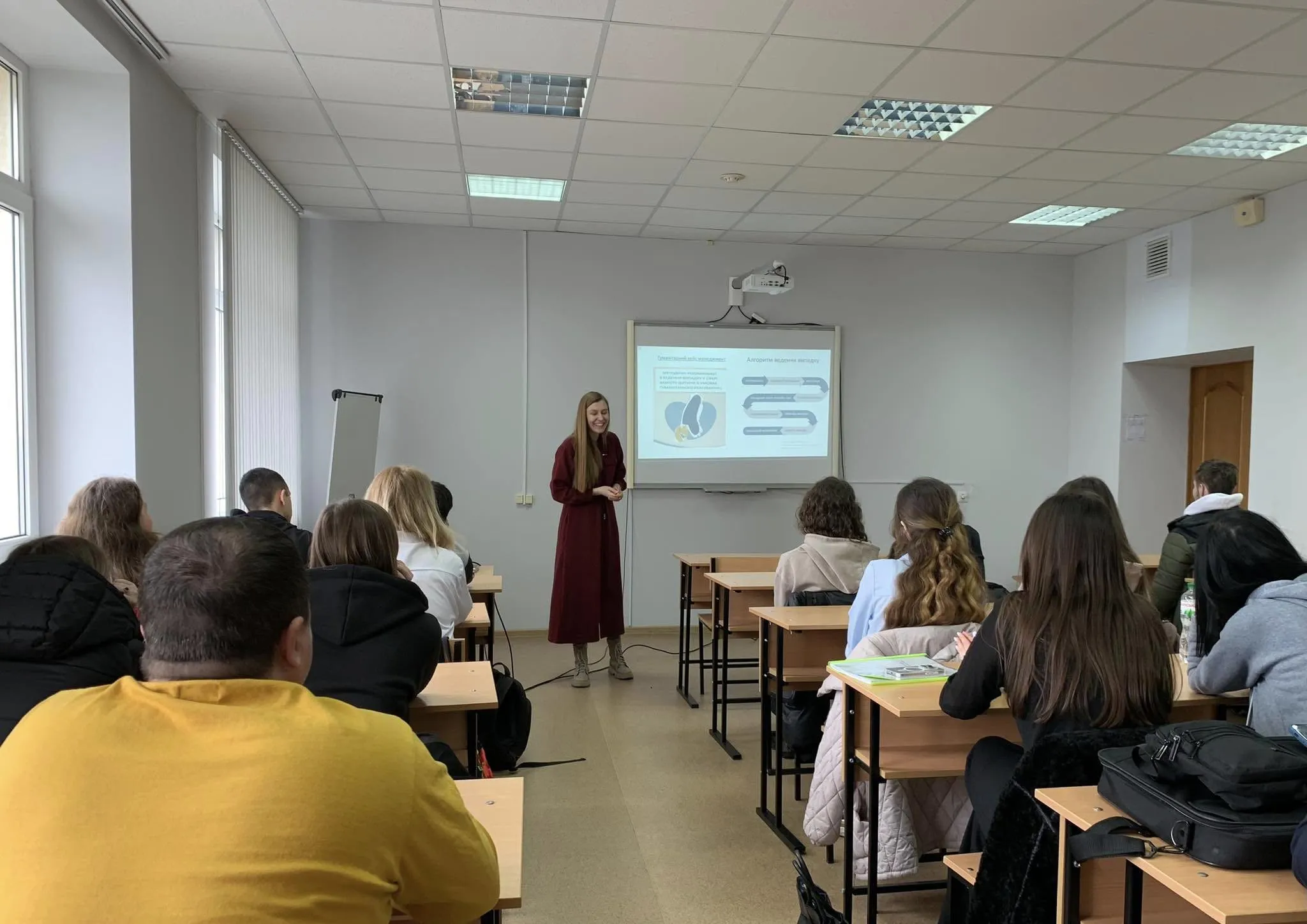 Під час лекції пані Анна поділилась цінним досвідом роботи міжнародних благодійних організацій, розповіла про основні стандарти, якими вони керуються, ознайомила студентів із внутрішніми політиками захисту, які створюють безпечне середовище для дітей. Закцентувала на важливості кейс-менеджменту в гуманітарному реагуванні, підкресливши, як цей інструмент допомагає ефективно надавати допомогу в кризових ситуаціях, а також поділилась реальними прикладами комплексної допомоги, розповідаючи історії успіху, які демонструють ефективність роботи організації.