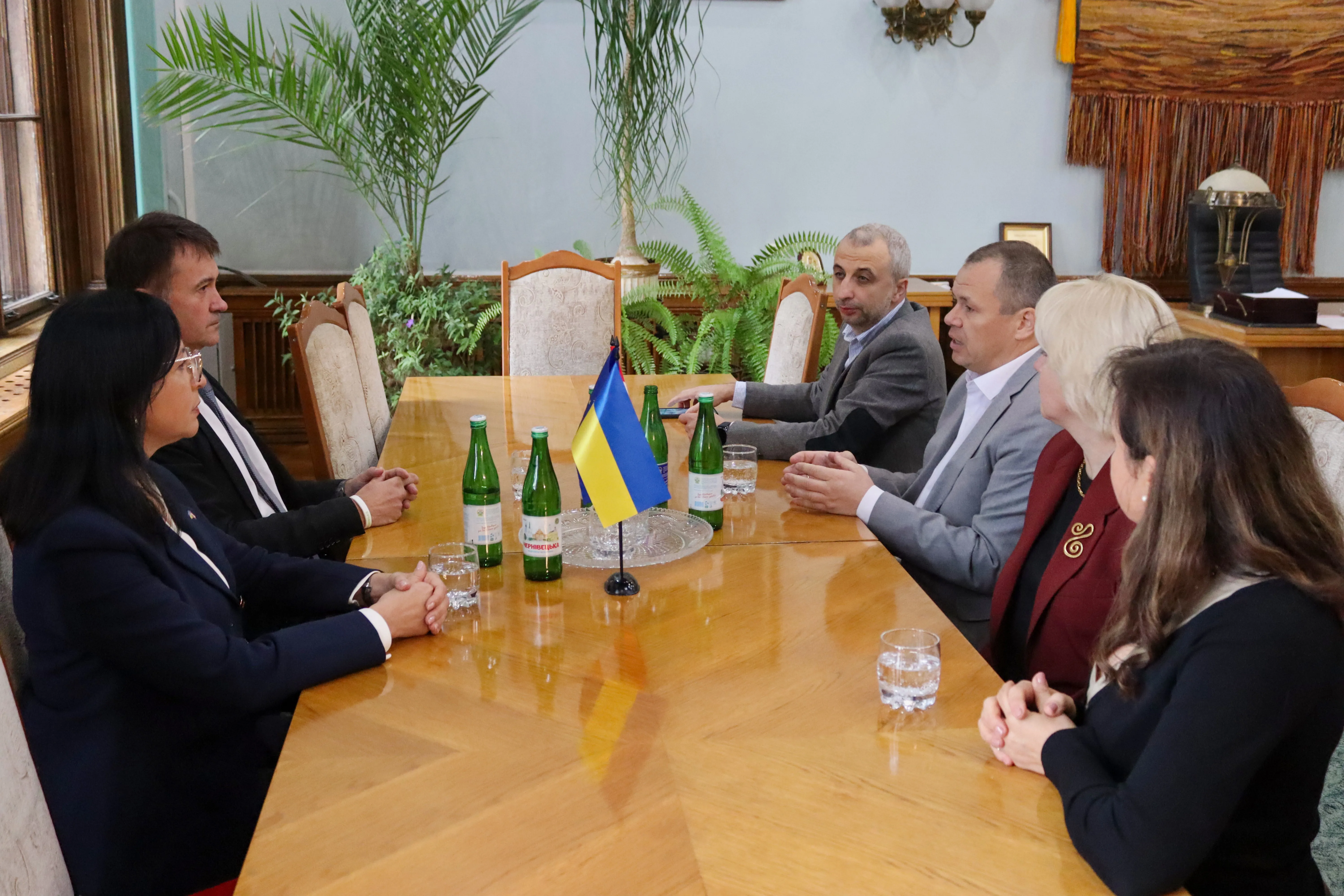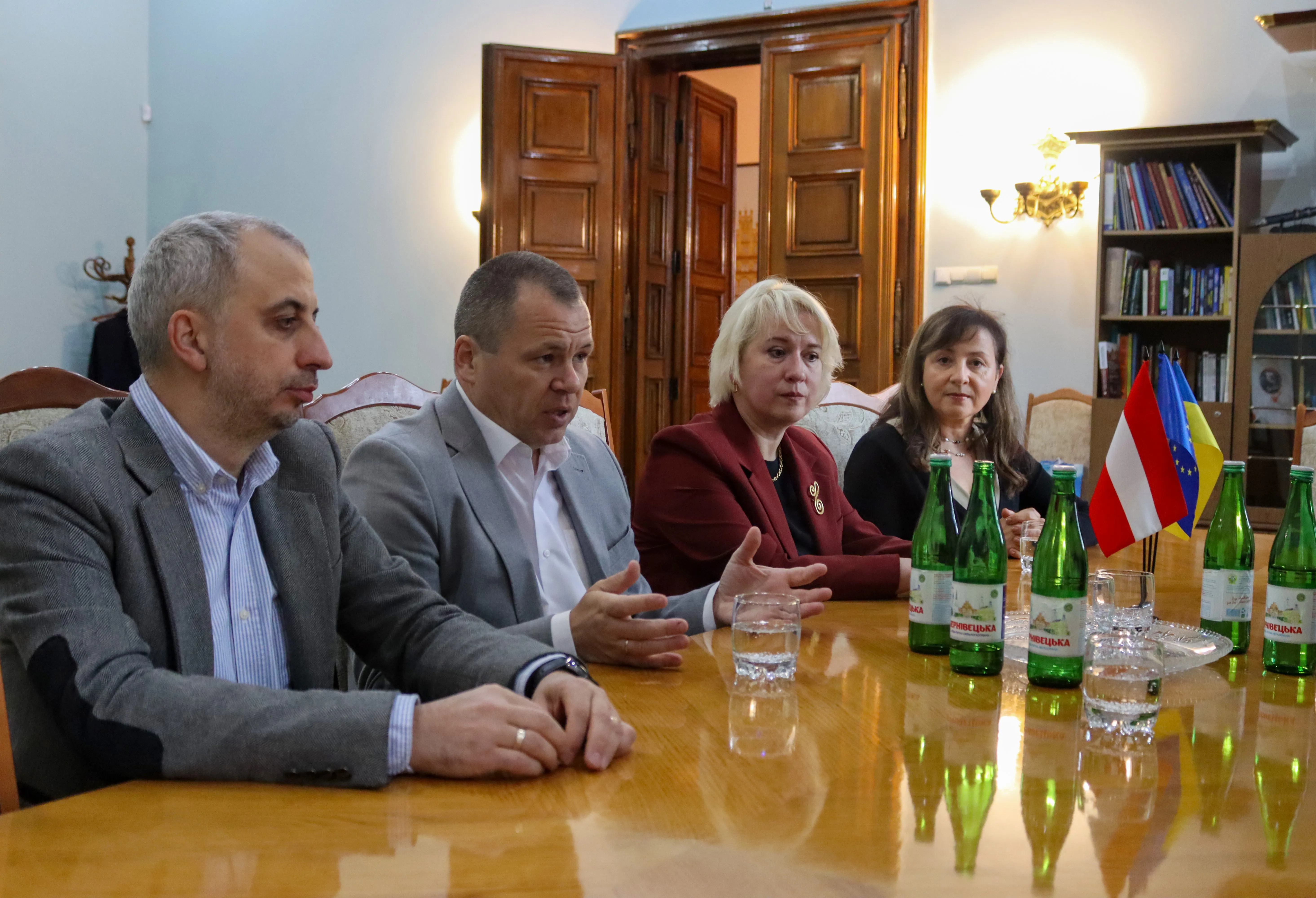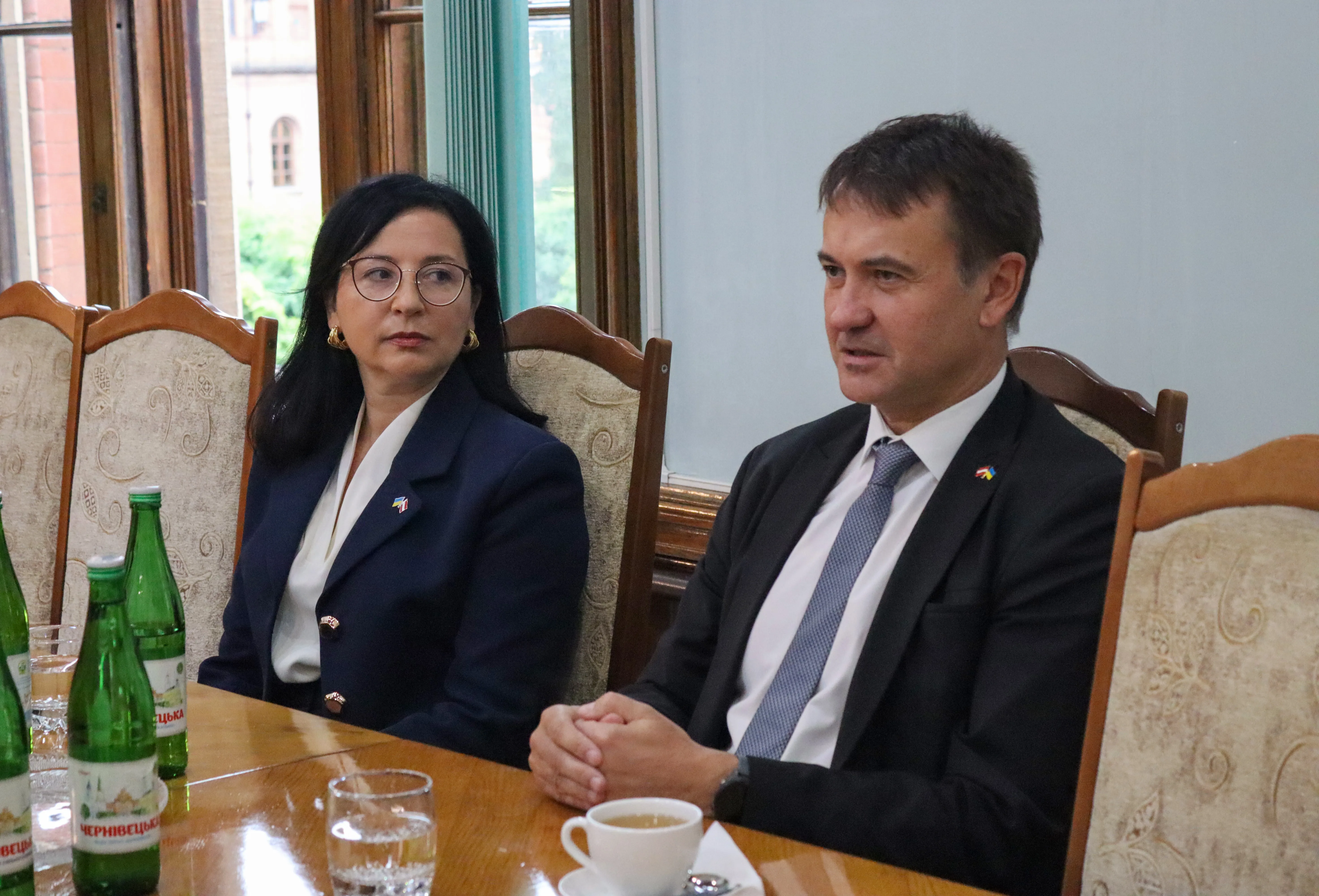 25 вересня в кабінеті ректора Чернівецького національного університету імені Юрія Федьковича відбулася зустріч ректора Руслана Білоскурського з Надзвичайним і Повноважним Послом Республіки Австрія в Україні Робертом Мюллером. У розмові також взяли участь Почесний консул Австрії у Чернівцях Людмила Осачук, проректор з науково-педагогічної роботи, міжнародної та гуманітарної діяльності Ірина Осовська, начальник відділу міжнародних зв’язків Сергій Луканюк та доцентка кафедри германської філології та перекладу Лариса Олексишина. Ця зустріч стала важливою частиною програми масштабного Міжнародного експертного форуму «Українська дипломатія в умовах війни та постконфлікту», який цього ж дня приймав університет.