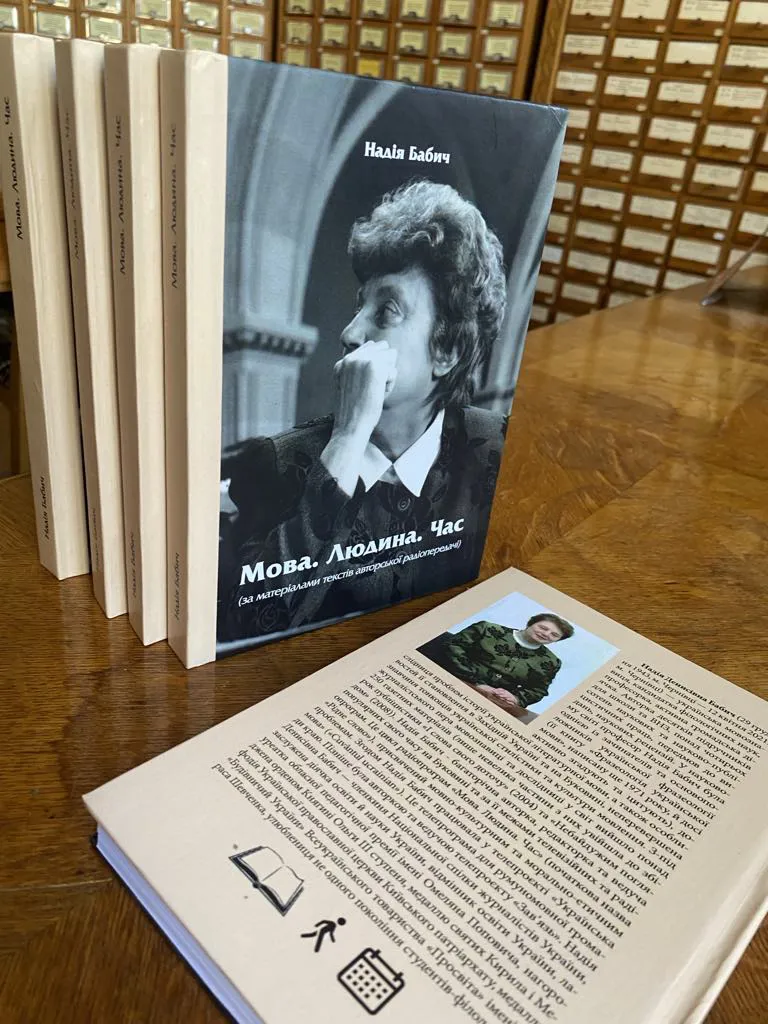 Висловлюємо щиру вдячність доньці Н. Бабич – Олесі Жук, асистентці кафедри журналістики Чернівецького національного університету імені Юрія Федьковича, членкині Національної спілки журналістів України, Заслуженій журналістці України, журналістці телеканалу UA: Буковина, яка упорядкувала і видала, а також подарувала Науковій бібліотеці ЧНУ п’ять примірників видання: Бабич Н. Мова. Людина. Час. За матеріалами текстів авторської радіопередачі. Чернівці: Видавничий дім "Букрек", 2024. 288 с. Іл.