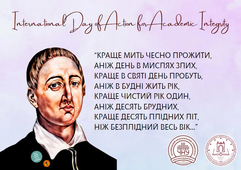 З нагоди International Day of Action for Academic Integrity з 21 по 28 жовтня на філологічному факультеті організовано тиждень академічної доброчесності. У низці заходів взяли участь здобувачі першого та другого рівнів вищої освіти ОП «Середня освіта» (Українська мова та література), “Середня освіта” (Румунська мова та література), “Середня освіта” (Мова та зарубіжна література (румунська)), «Філологія» (Українська мова та література), «Європейські славістичні студії”, “Соціальне забезпечення”, “Культурологія”, “Богослов'я”.