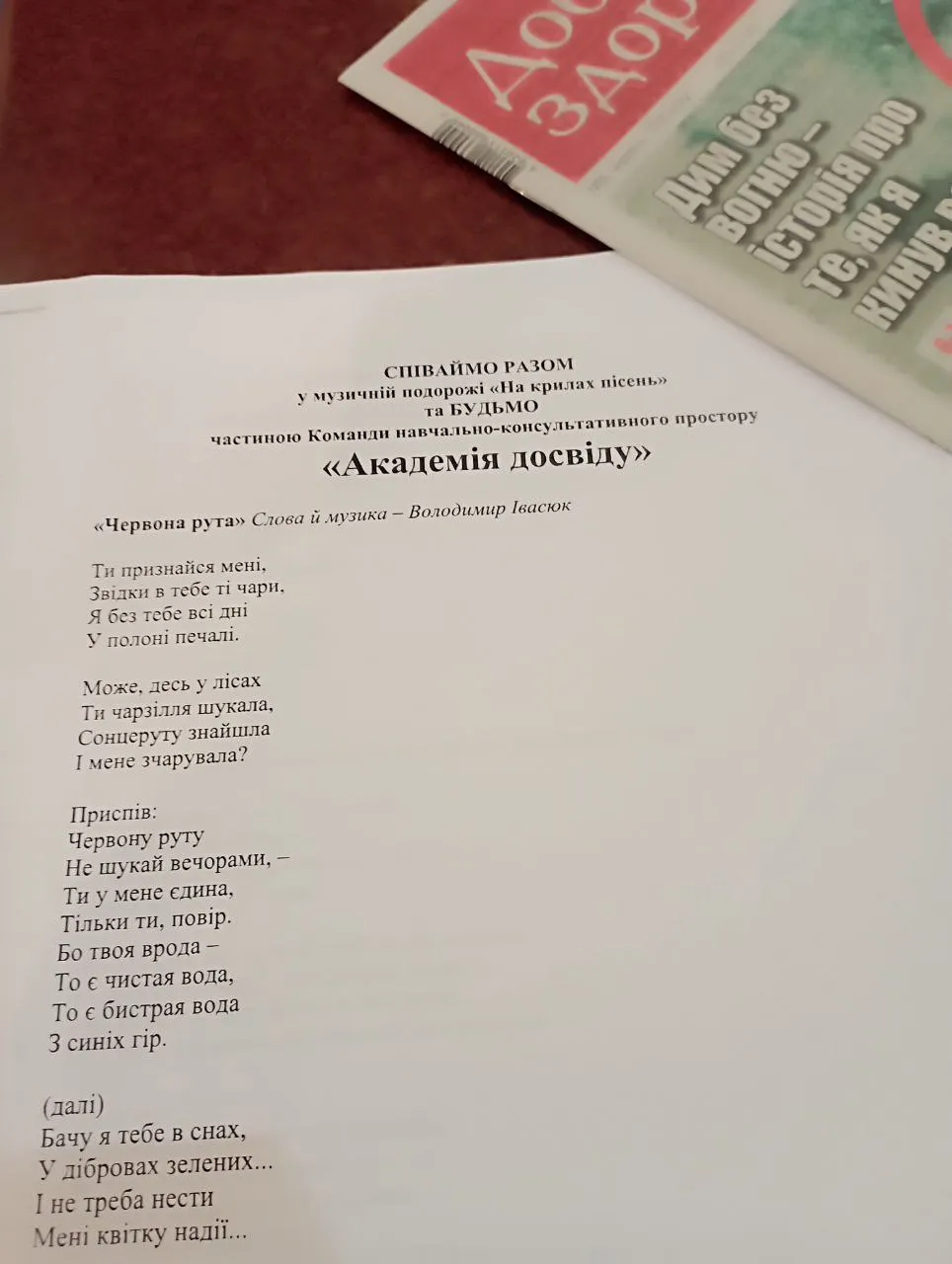 29 червня у навчально-консультативному просторі «Академія досвіду» відбувся культурно–мистецький захід «На крилах пісень», який зібрав шанувальників золотого фонду української музики, об’єднавши у ньому різні покоління, що створило особливу атмосферу щирості, теплоти, любові, поваги, віри, надії.