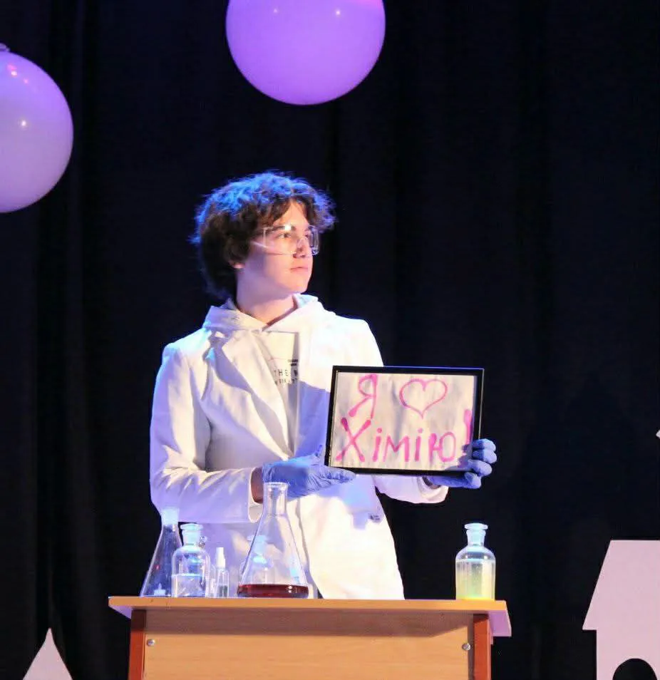 Яскравою частиною форуму став виступ учнів Чернівецьких ліцеїв № 3 (медичного профілю) та № 14, які провели серію наукових експериментів безпосередньо на сцені. Серед них – використання червонокачаної капусти як природного кислотно-лужного індикатора, демонстрація «виверження гейзера», викид гарячої пари та кисню з колби, а також кольорові перетворення у так званому «розчині-хамелеоні». Завершальним став експеримент із миттєвим створенням картини з написом «Я люблю хімію», а також проведення діагностичного експрес-тесту з визначення рівня глюкози в крові, що підкреслило міждисциплінарний характер представленого наукового простору та його практичну орієнтованість.