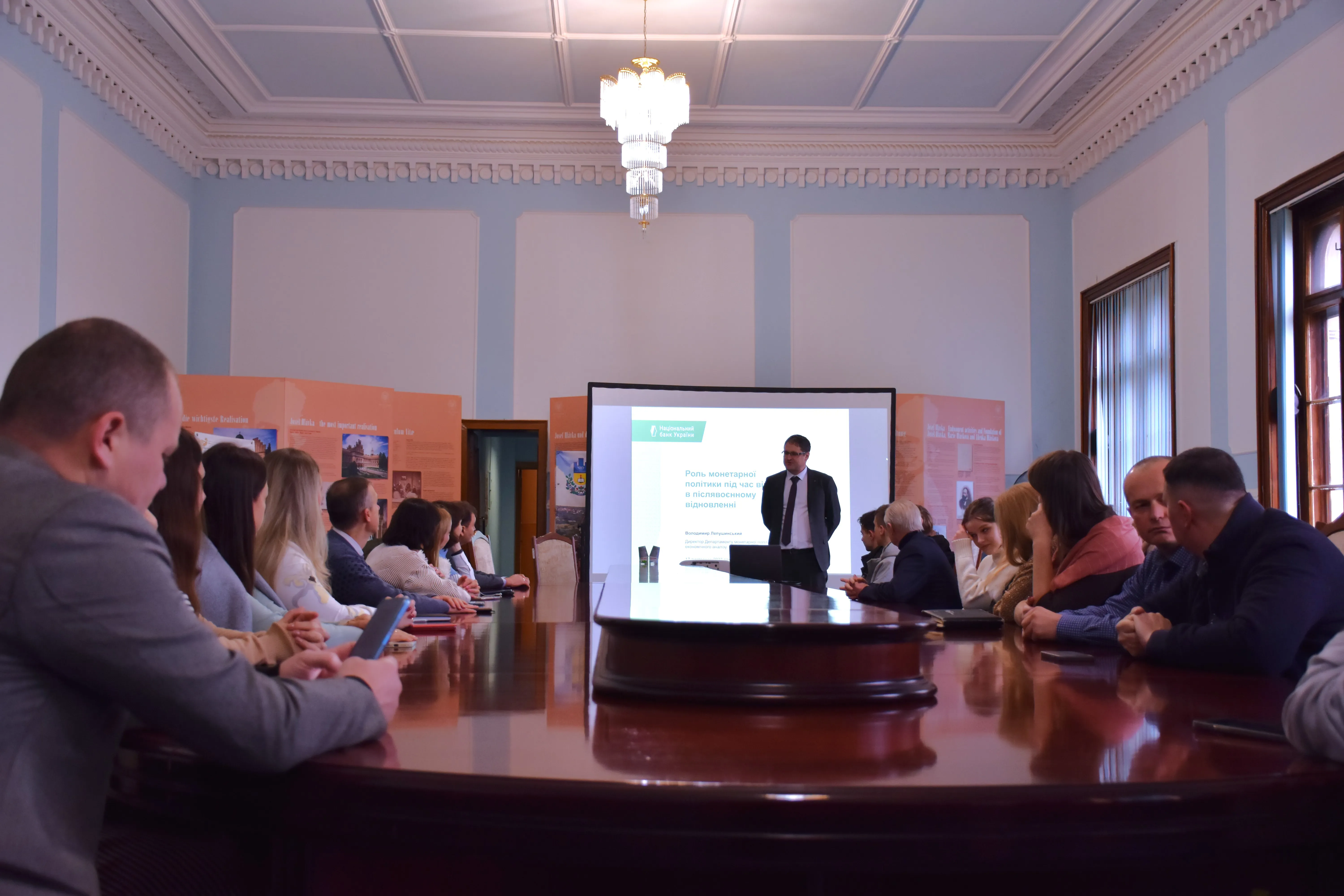 Науковий семінар та гостьова лекція для студентів з директором департаменту монетарної політики та економічного аналізу Національного банку України Володимиром Лепушинським в Чернівецькому національному університеті імені Юрія Федьковича на тему: "Особливості монетарної політики в Україні у сучасних умовах". Модерував зустріч доцент кафедри фінансів і кредиту Євген Ткач.