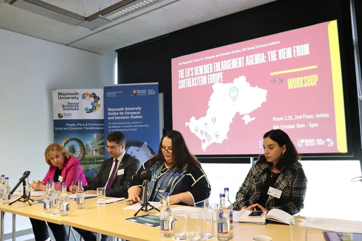 Наприкінці минулого тижня, в ірландському університеті Мейнут (партнер нашого університету в консорціумі університетів Аґрус) пройшов міжнародний семінар, присвячений перспективам подальшого розширення ЄС. У ньому взяли участь науковці, що представляли Україну та країни Західних Балкан – кандидатів на вступ до ЄС. Організатором семінару виступив професор Джон О. Бренанн зі своїми колегами з Центру європейських та євразійських студій Інститут соціології Університету Мейнут.