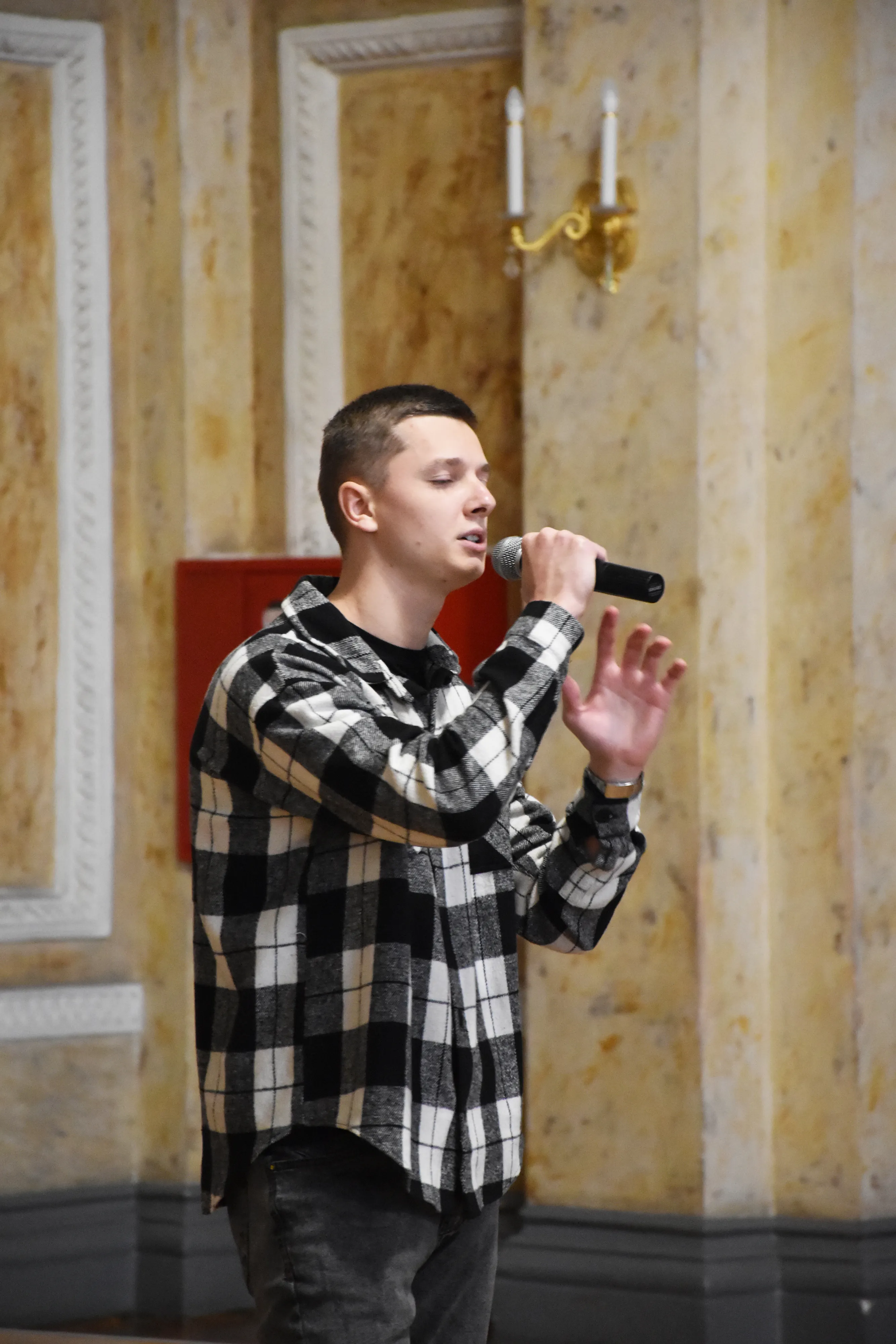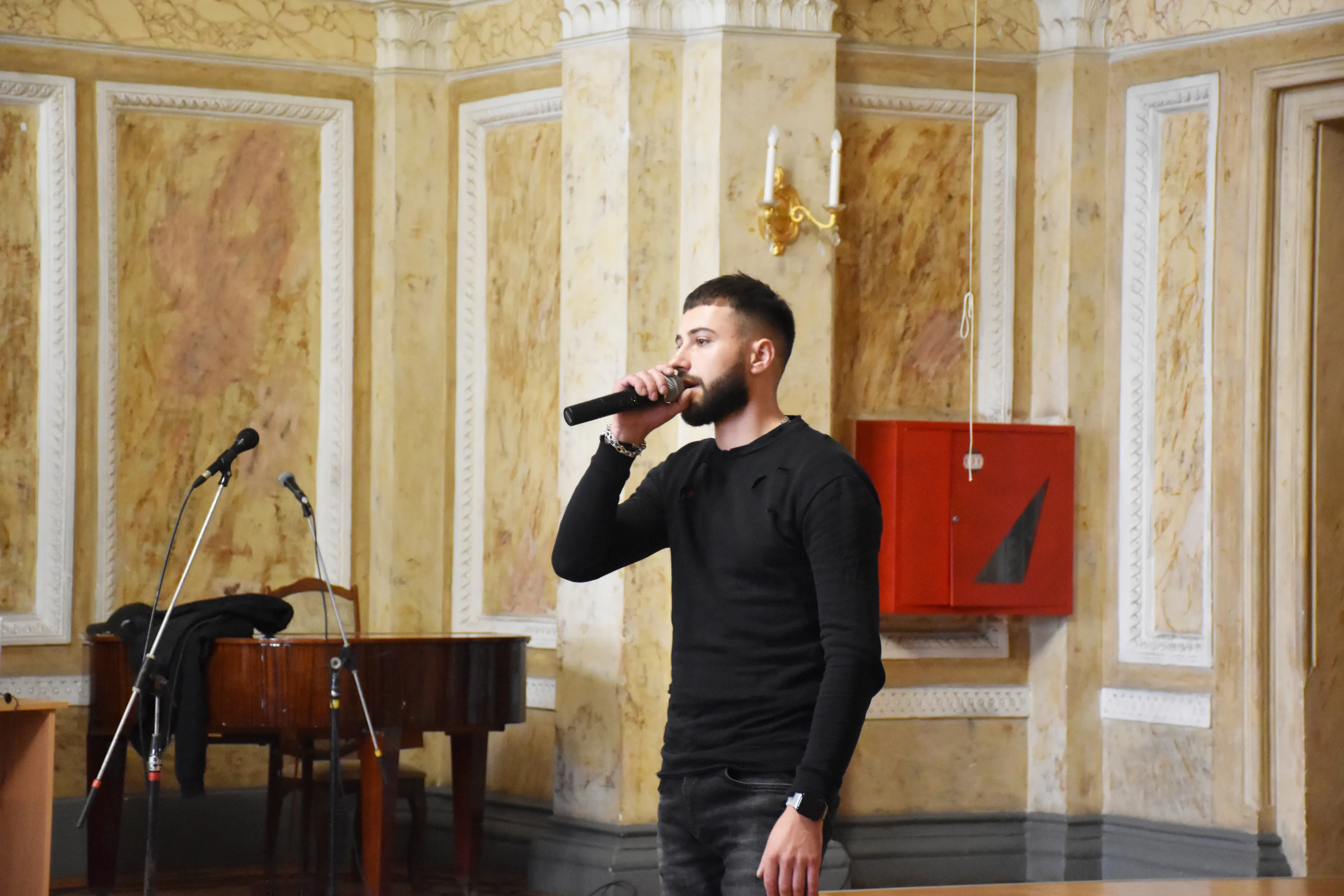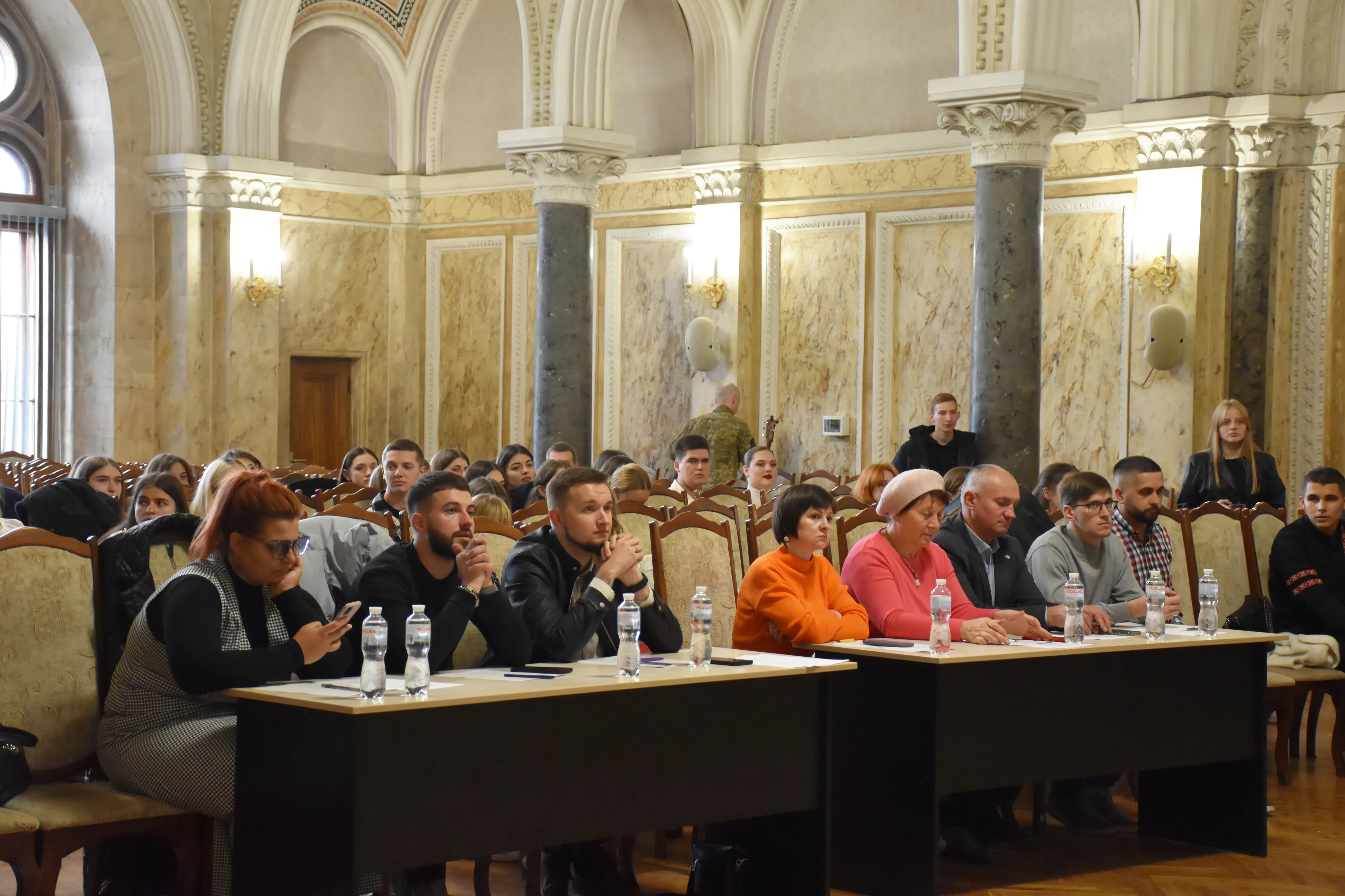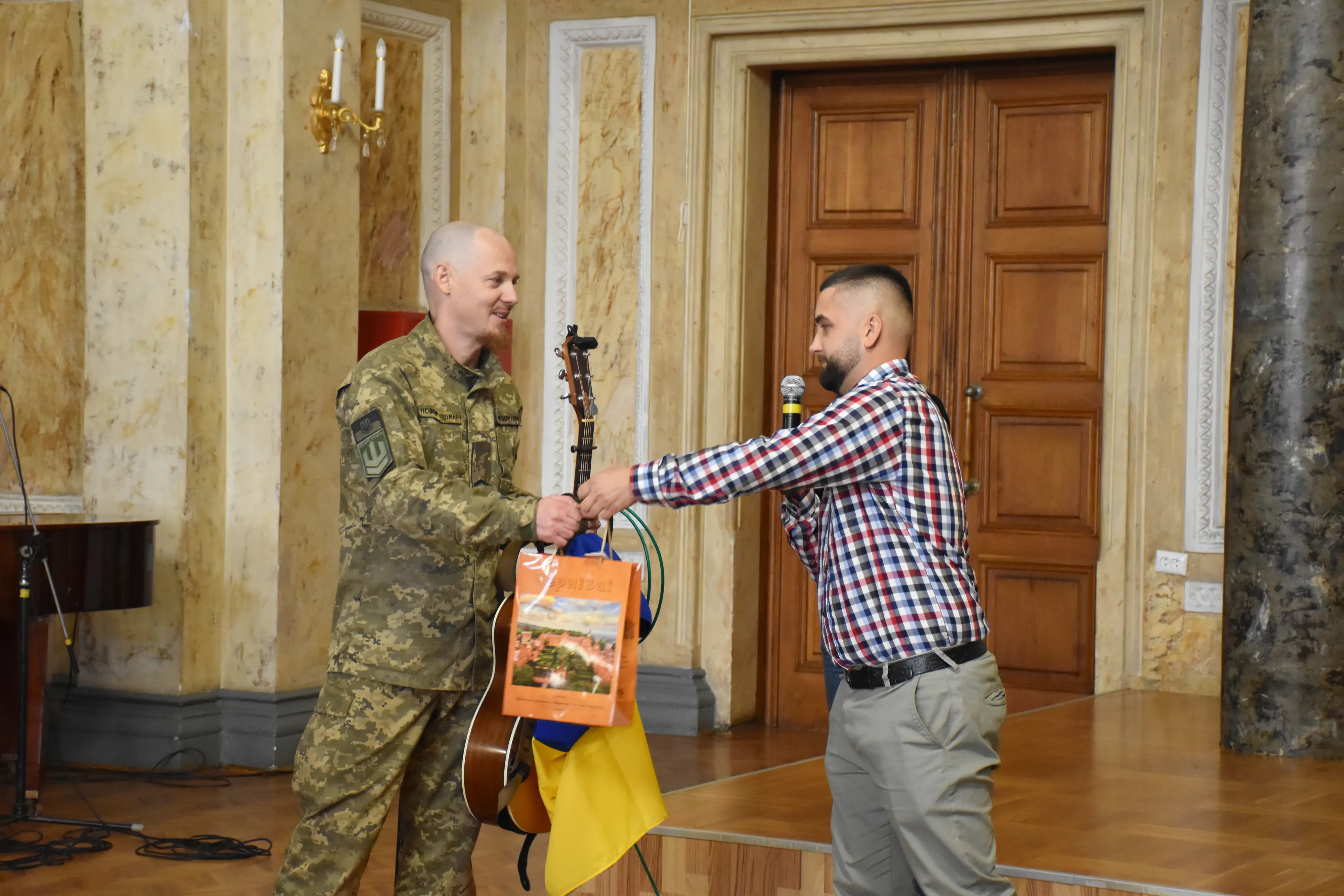 Захід розпочався виступом старшого солдата 130 батальйону 241 окремої бригади ТРО, фронтмена гурту "Тінь сонця" - Сергія Василюка з хітом гурту "Козаки". Дмитро Павлюк та Уляна Юлик передали Сергію та його побратимам прапор України з щирими побажаннями від вихованців Центру культури і дозвілля студентів ЧНУ, а також сувеніри від Чернівецького національного університету імені Юрія Федьковича. Також свою авторську пісню "Знай" презентував випускник кафедри музики, військовий, котрий зараз на реабілітації - Сергій Гаджа.