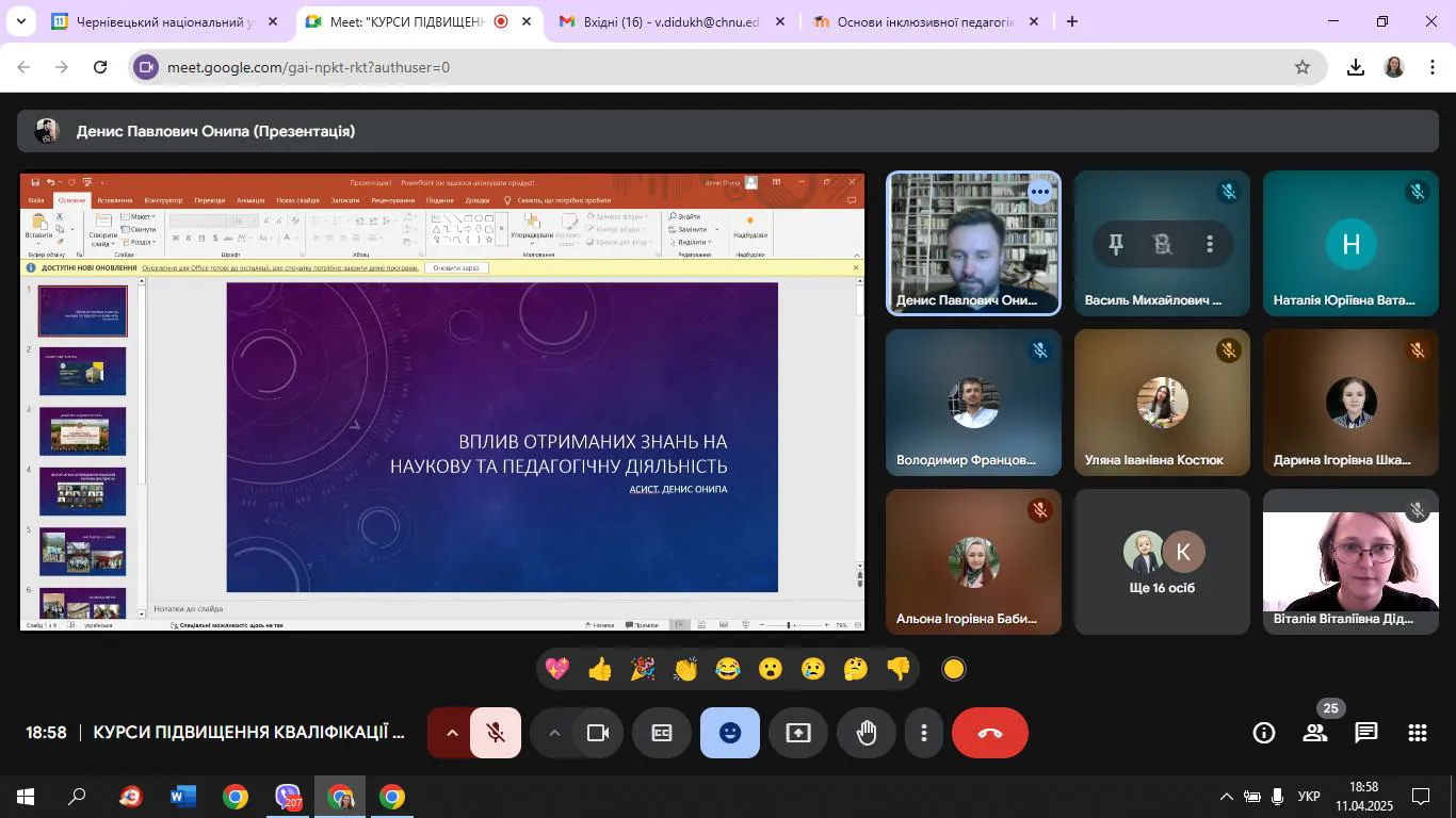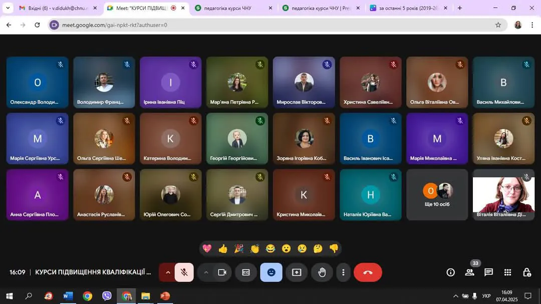 З 7 по 11 квітня в Чернівецькому національному університеті імені Юрія Федьковича відбулися курси підвищення кваліфікації для молодих науковців і викладачів: «Нові горизонти зростання сучасного викладача-науковця» (30 год, дистанційна форма), об’єднуючи учасників довкола спільної мети ̶ професійного розвитку, відкритості до інновацій та міждисциплінарної взаємодії.