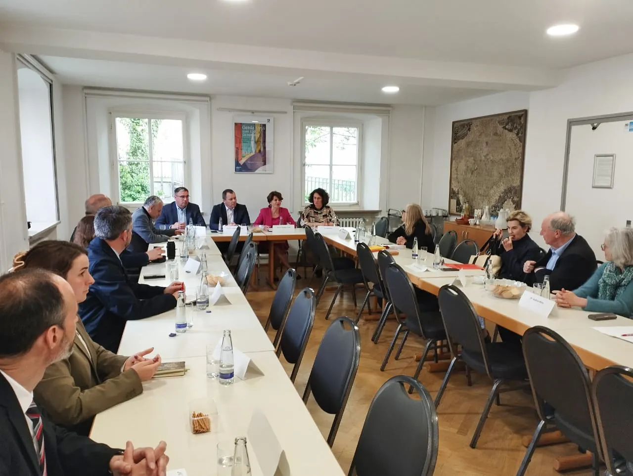 Завершальним етапом візиту стала зустріч в Інституті німецької культури та історії Південно-Східної Європи (IKGS), який є стратегічним партнером нашого університету. Інститут надає потужну наукову підтримку та гуманітарну допомогу для університету, регіону та України в цілому. У рамках візиту відбувся круглий стіл, організований IKGS, який об'єднав науковців та громадських лідерів з Німеччини, Австрії та України для обговорення питань підтримки українських університетів, роботи з академічною спільнотою в еміграції та посилення ролі європейських інституцій в період воєнного стану.
