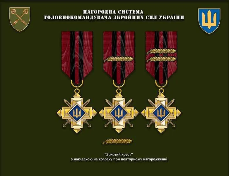 Почесні нагрудні знаки Головнокомандувача Збройних Сил України встановлені відповідно до Наказу № 187 від 5 липня 2023 року «Про почесні нагрудні знаки Головнокомандувача Збройних Сил України». Нагрудним знаком «Золотий хрест» нагороджуються особи рядового і сержантського (старшинського) складу Збройних Сил України за проявлену мужність і успішне виконання завдань під час бою.