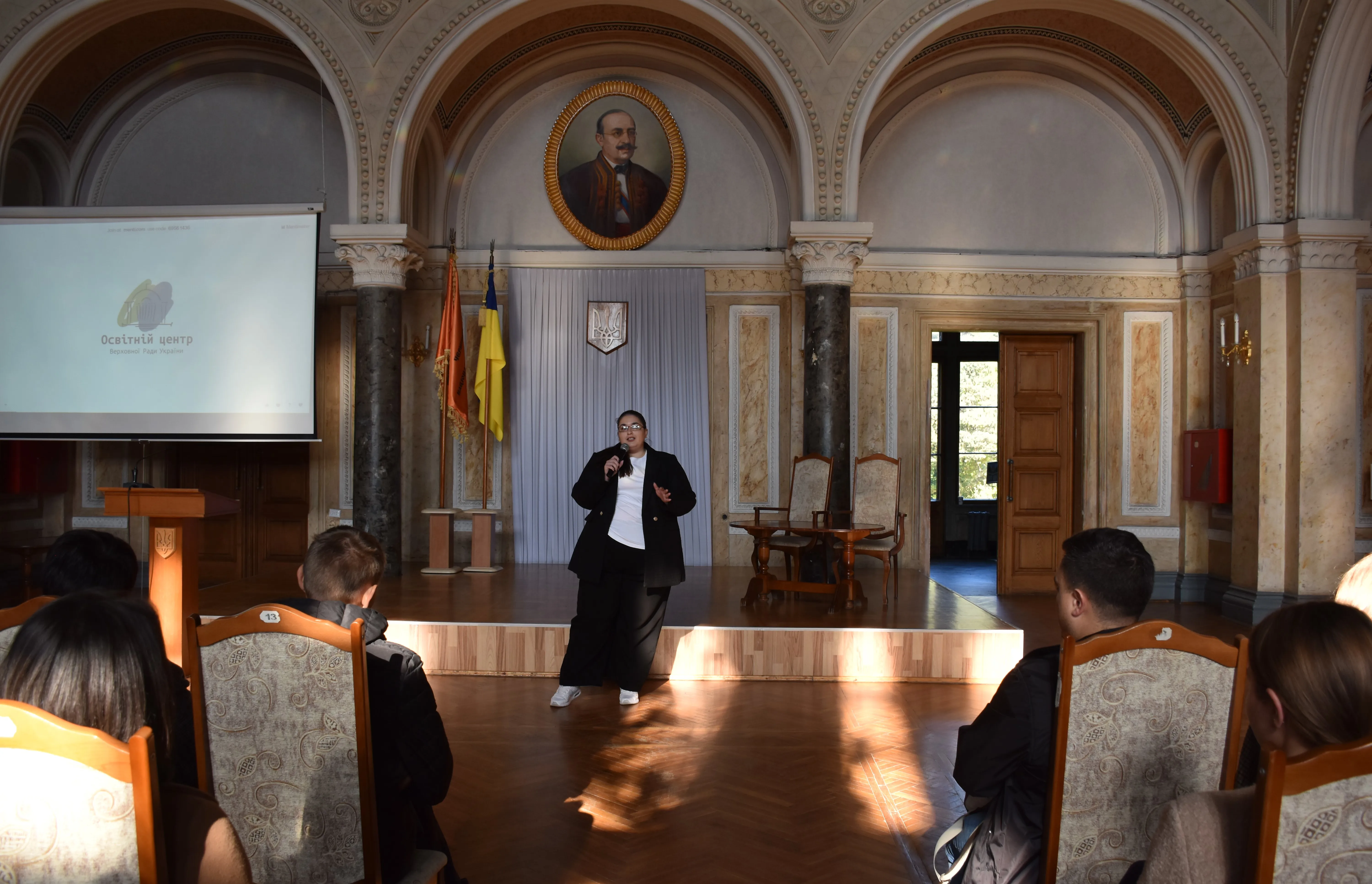 18 жовтня в Мармуровій залі Чернівецького національного університету імені Юрія Федьковича відбувся просвітницький захід Освітнього центру Верховної Ради України за підтримки Американських Рад з міжнародної освіти в Україні.