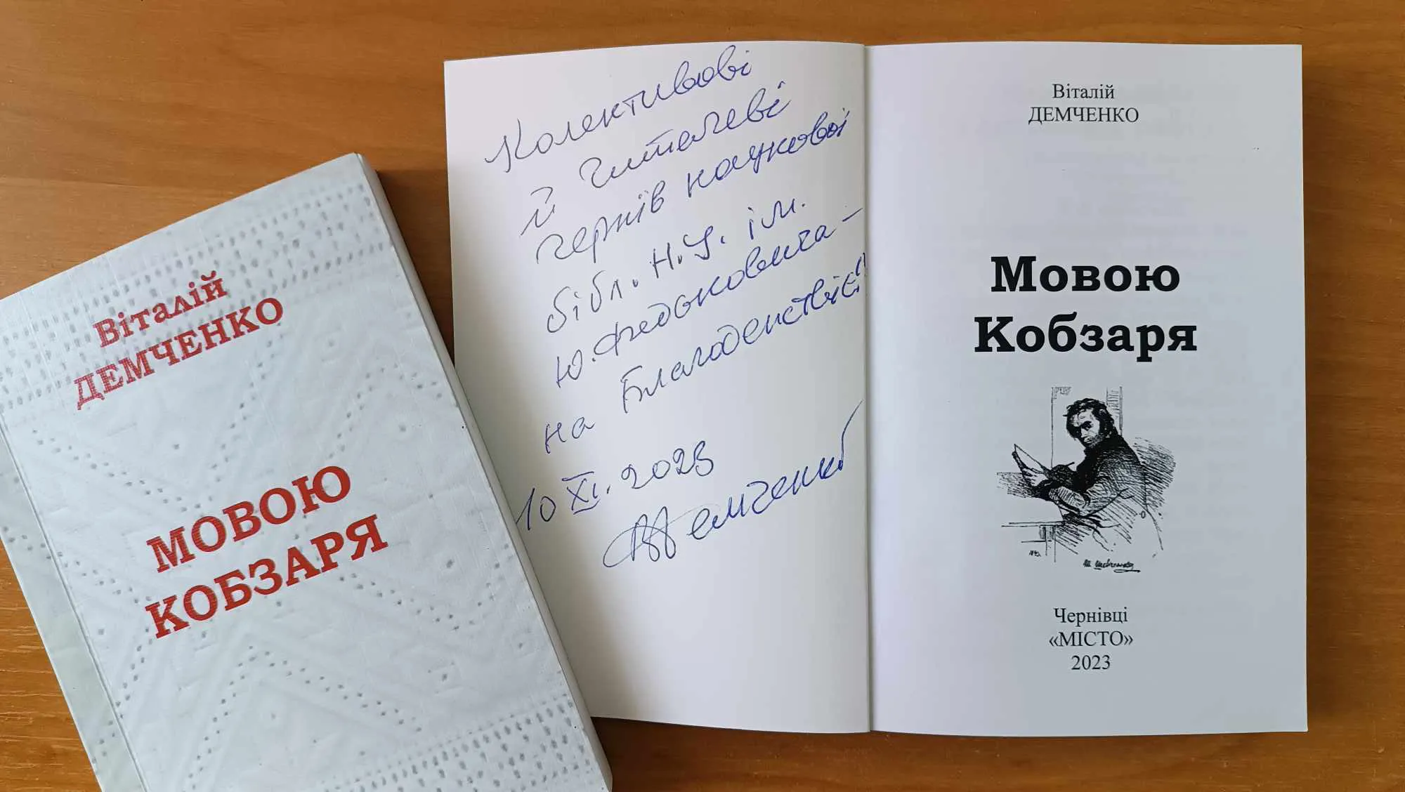 У Науковій бібліотеці Чернівецького національного університету імені Юрія Федьковича, в межах письменницько-бібліотечного марафону відбулася презентація видання – Демченко В. Мовою Кобзаря. Чернівці: Місто, 2023. 244 с. Це нова поетична збірка поета та публіциста, перекладача, мандрівника – Віталія Демченка., яку представив для учасників голова Чернівецької обласної організації НСПУ Василь Джуран.