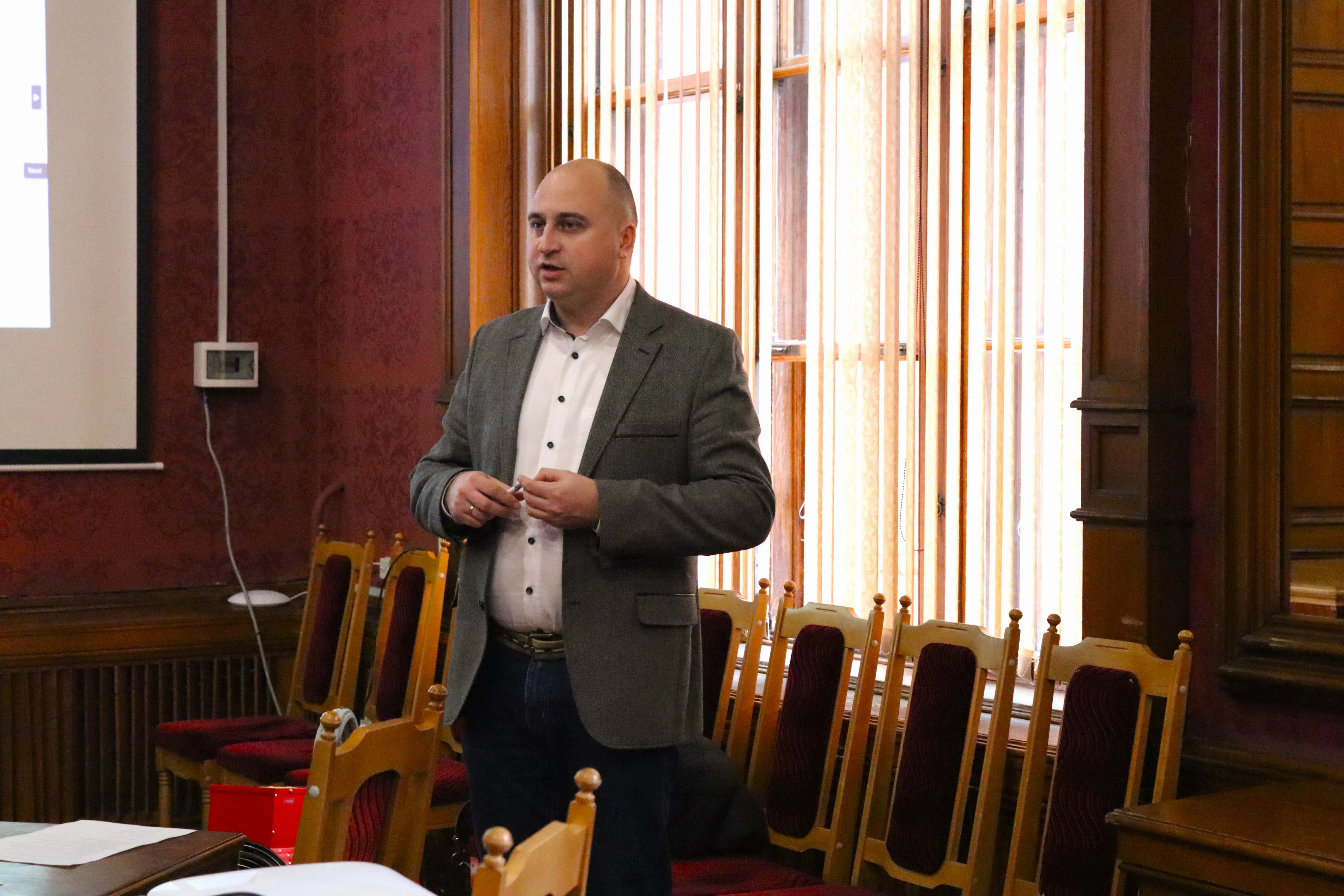 Завідувач відділу комунікацій та брендингу Віталій Кіндзерський розповів про основні функції відділу, підкресливши необхідність формування інформаційних агентів на рівні факультетів та навчально-наукових інститутів. Він також окреслив ключові завдання для комунікаційників, серед яких — забезпечення активного ведення сторінок у Facebook, Instagram та WhatsApp.