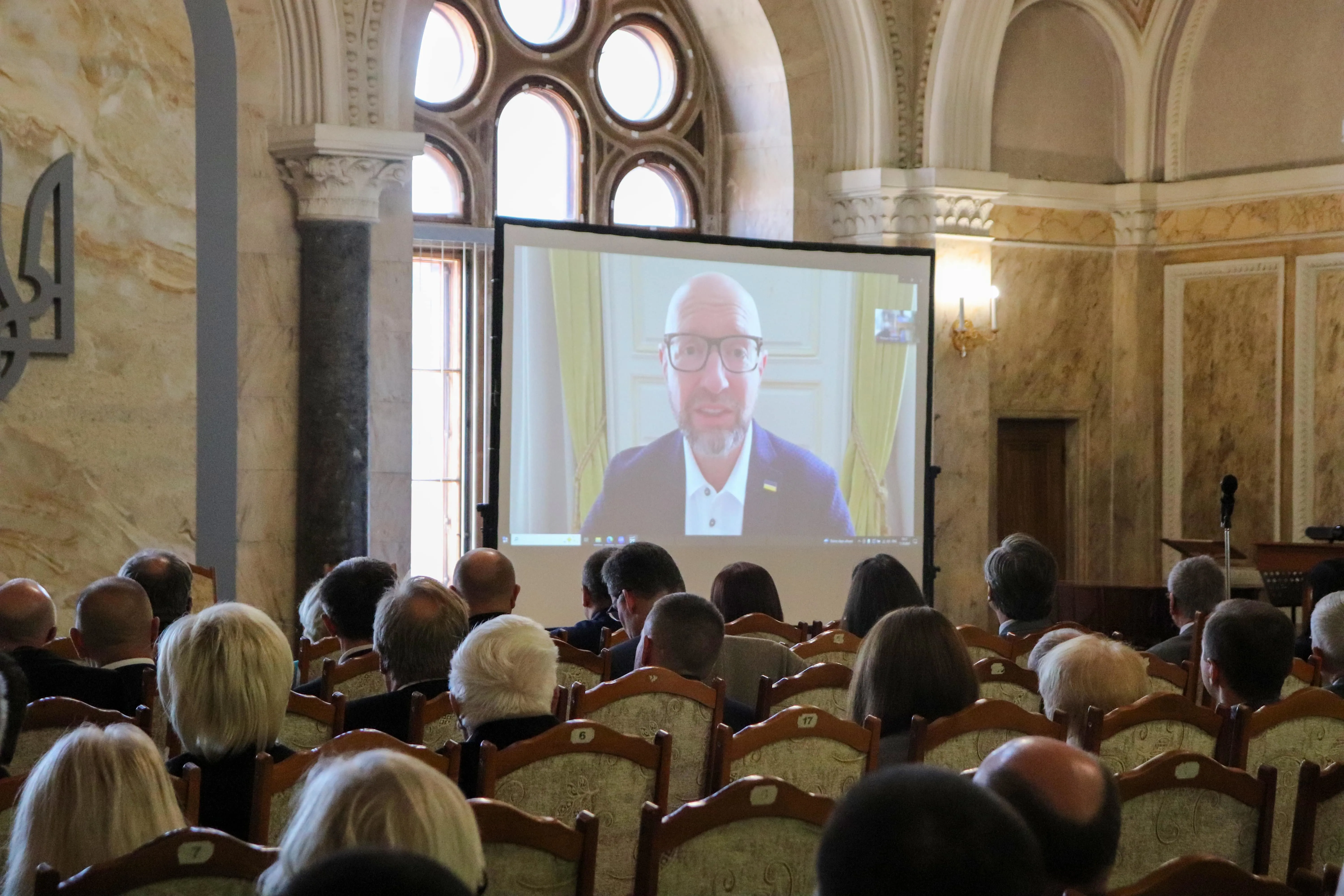 Особливим моментом заходу стало відеозвернення випускника університету, двічі Прем’єр-міністра України, державного діяча Арсенія Яценюка, який подякував Alma Mater за отримані знання та наголосив на значенні університетської спільноти для майбутнього держави.