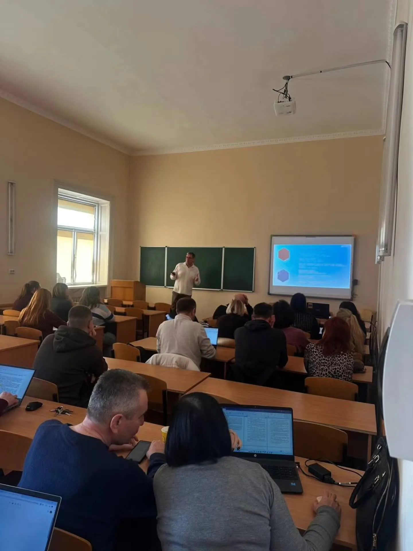Проректор з науково-педагогічної роботи та цифрової трансформації Андрій Верстяк у своїй презентації наголосив, що цифрова трансформація - це передусім зміна підходів, ролей і культури роботи, а не лише впровадження окремих інструментів. Йшлося про формування єдиного цифрового середовища, автоматизацію рутинних процесів, зменшення навантаження на працівників та підвищення якості управлінських рішень.