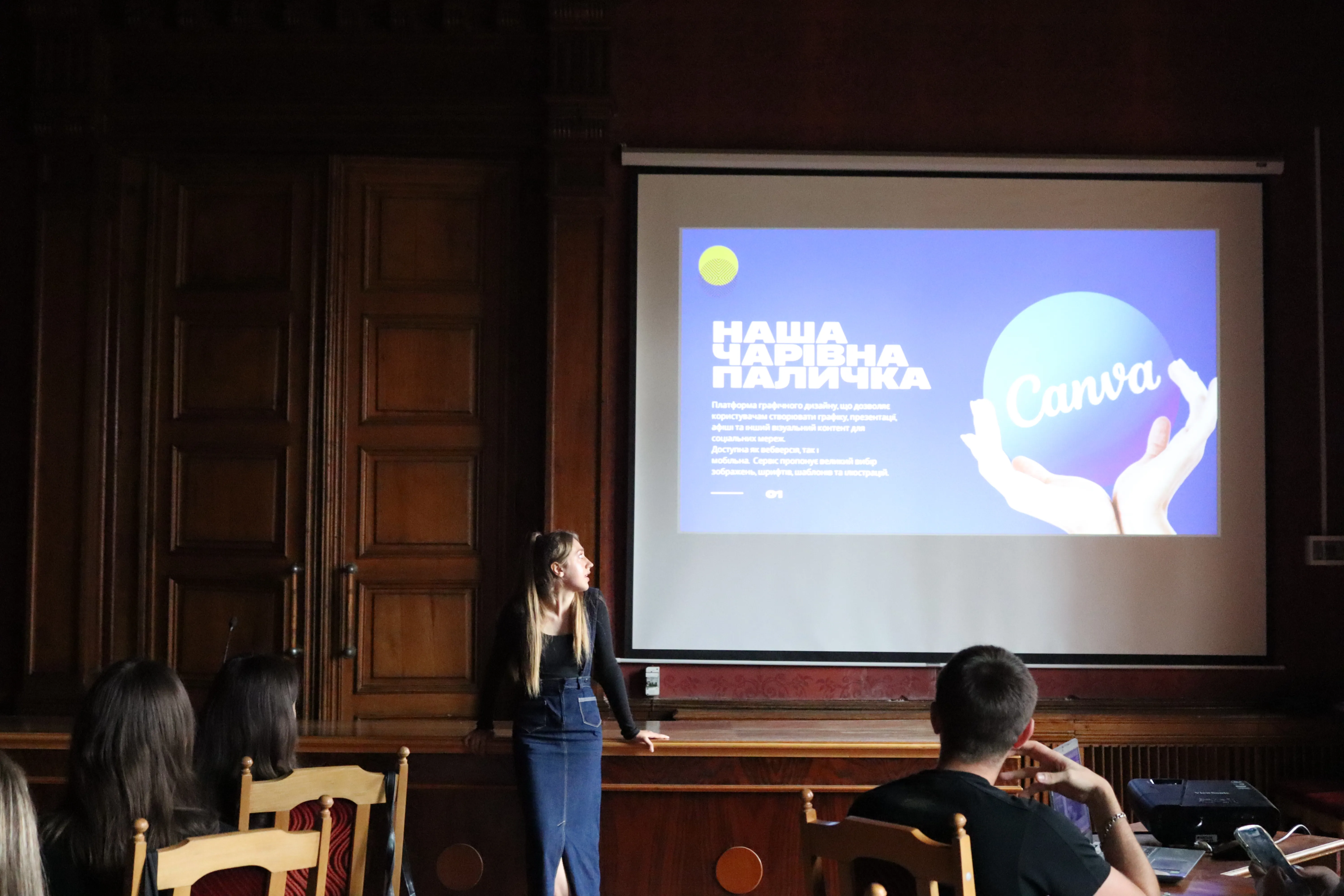 Особливою подією дня стало перше заняття в рамках навчання інформагентів від Голови відділу дизайнерів Степанії Головач. Вона провела майстер-клас для учасників, ознайомивши їх з основами дизайнерського підходу до створення візуального контенту.