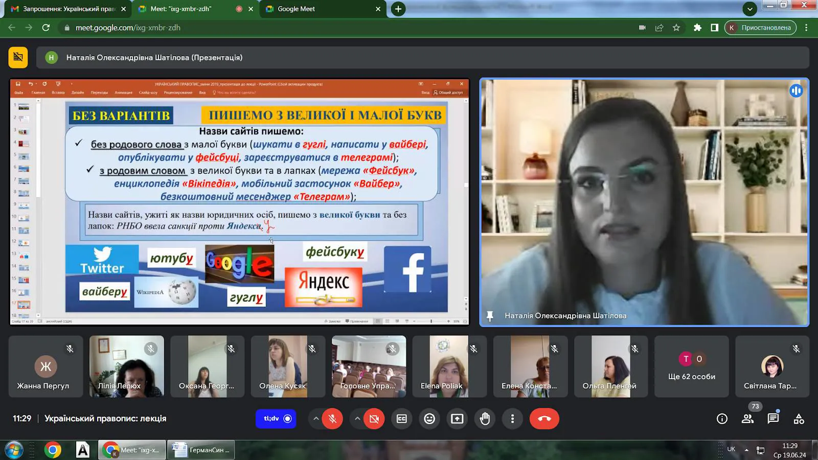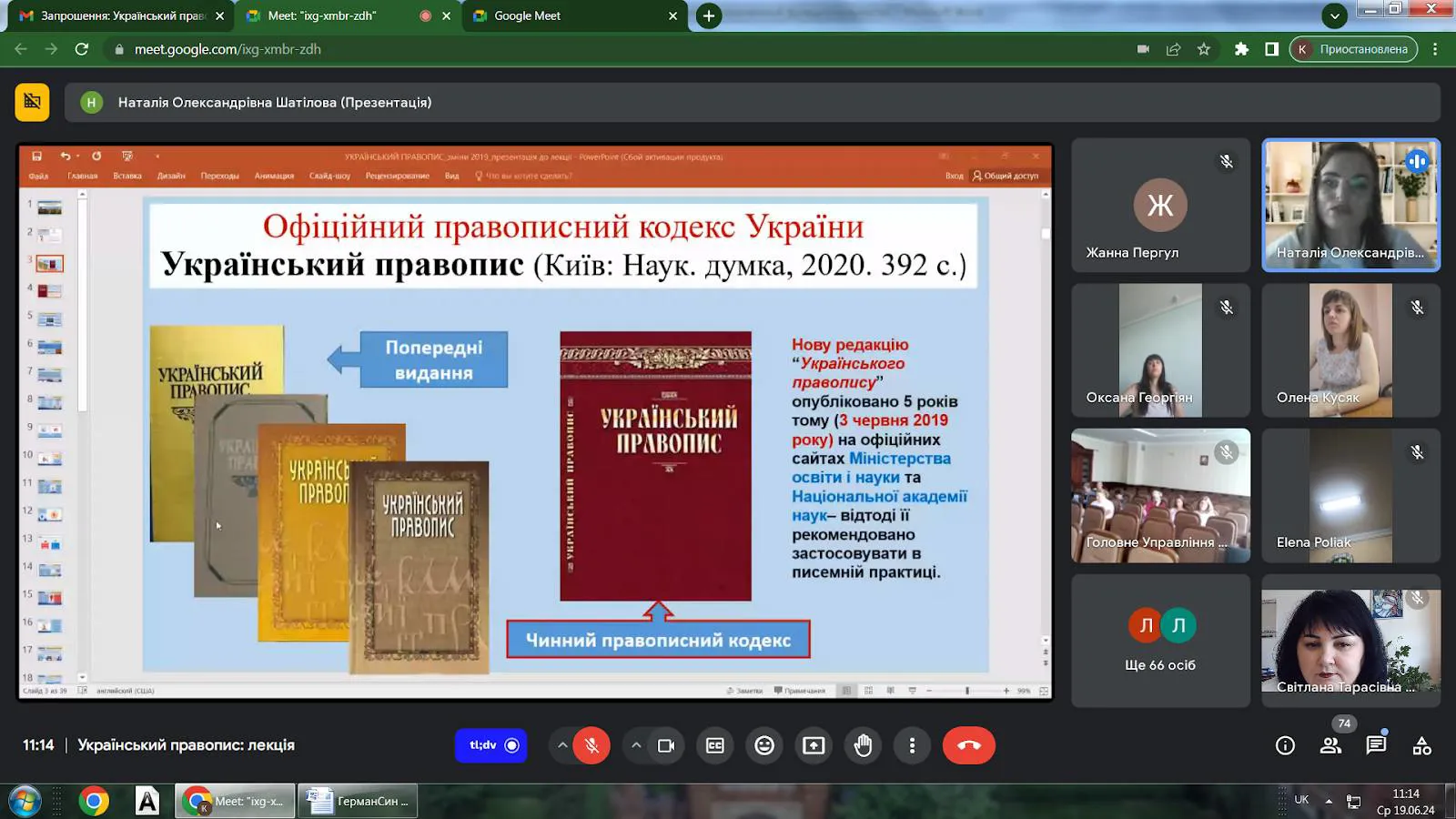 Кафедра сучасної української мови Чернівецького національного університету імені Юрія Федьковича радо відгукнулася на пропозицію Головного управління Пенсійного фонду України в Чернівецькій області щодо проведення лекції про основні зміни в чинній редакції «Українського правопису» для працівників цієї установи. Отож 19 червня відбулася онлайн-лекція, що об'єднала на платформі Google Meet понад 80 учасників із різних куточків Буковини.
