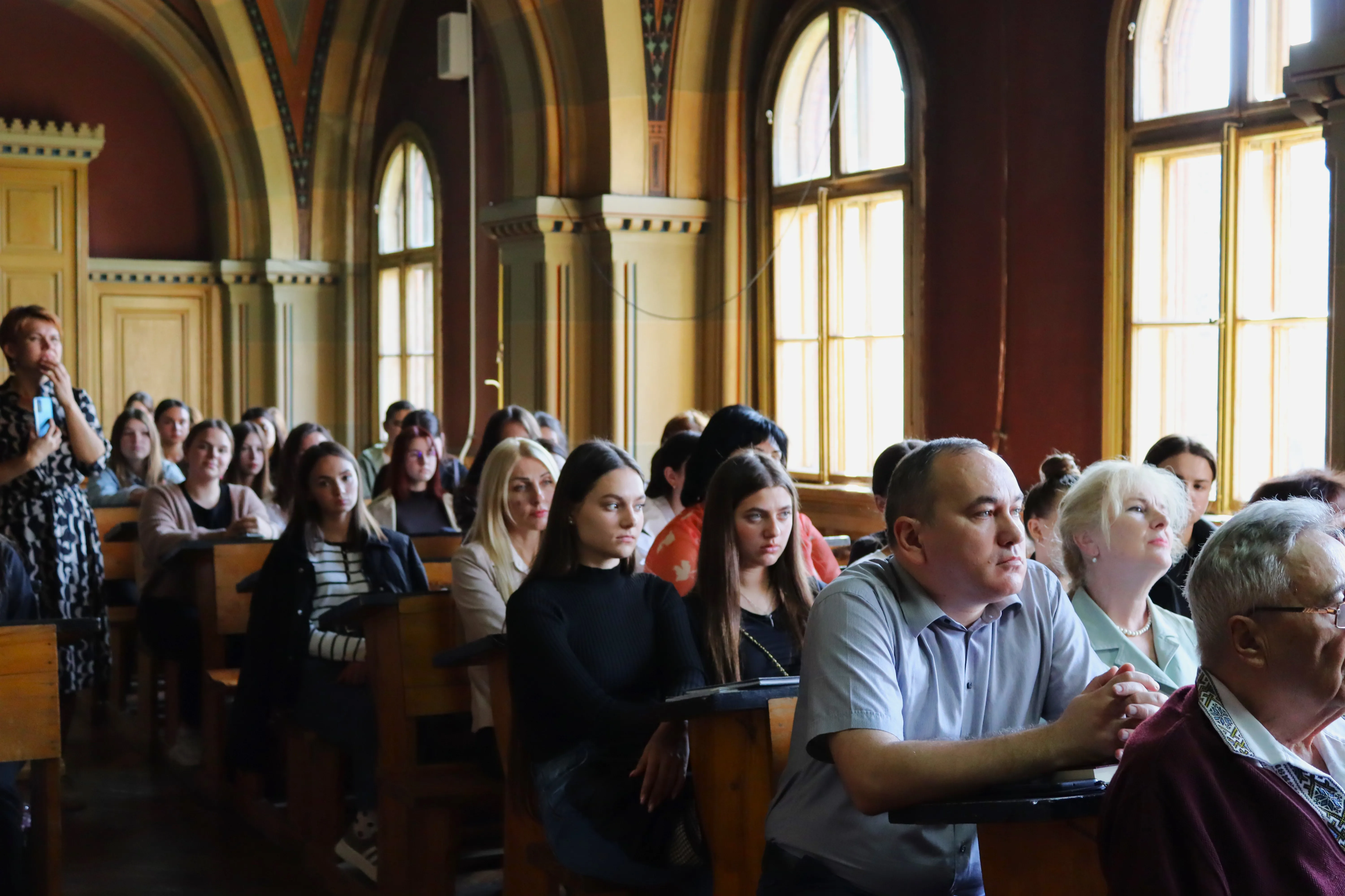 На зустрічі були присутні викладачі та студенти філологічного факультету (спец."Середня освіта" та "Філологія"), до яких із вітальним словом звернувся проректор з наукової роботи Чернівецького національного університету імені Юрія Федьковича доцент Юрій Халавка, чинний та колишній декани філологічного факультету доцент Ярослав Редьква та професор Борис Бунчук, завідувач кафедри української літератури доцент Валентин Мальцев.