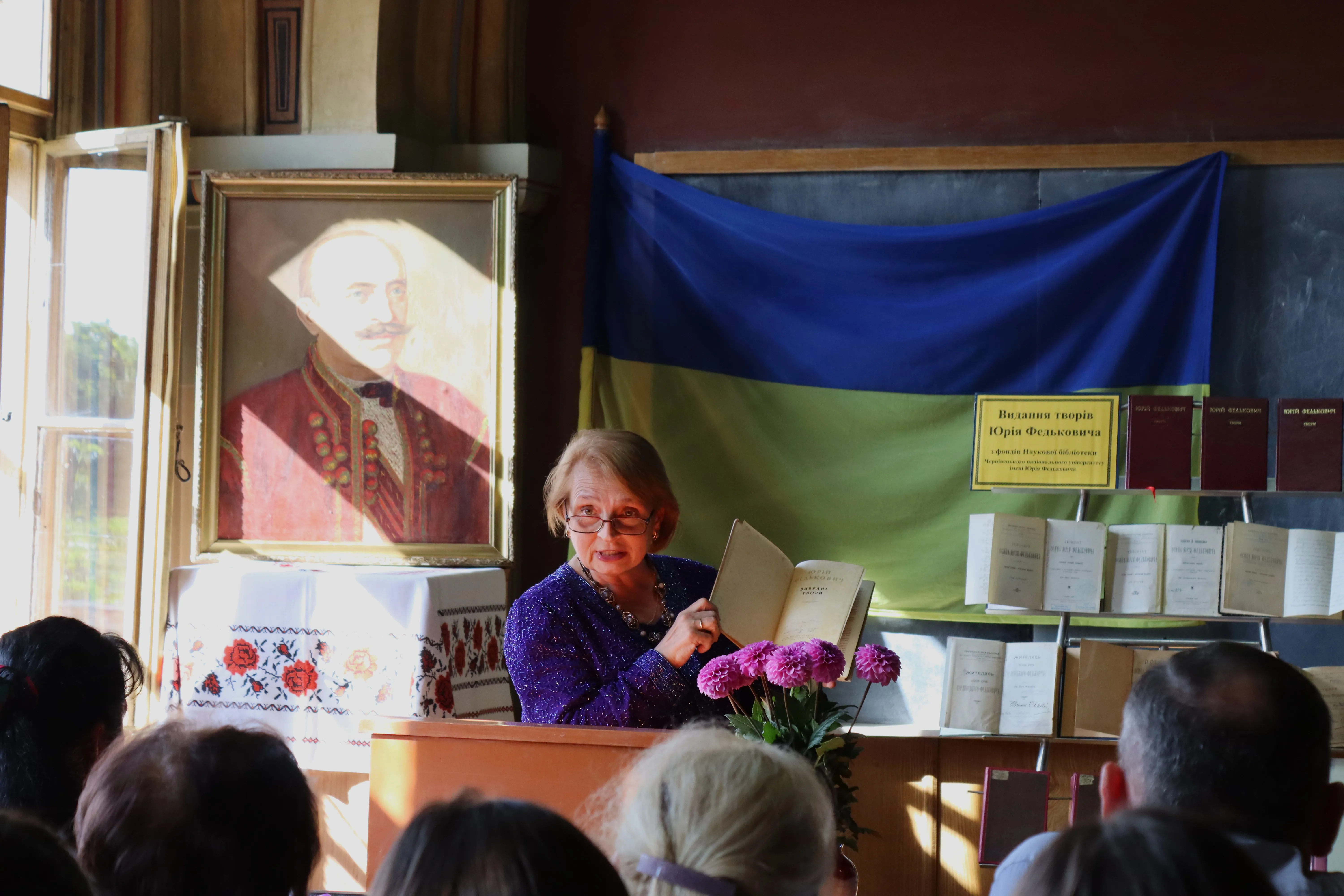Захід супроводжувала виставка видань творів Юрія Федьковича різних років, про які розповіла завідувач науково-методичного відділу Наукової бібліотеки університету Тетяна Мурашевич.