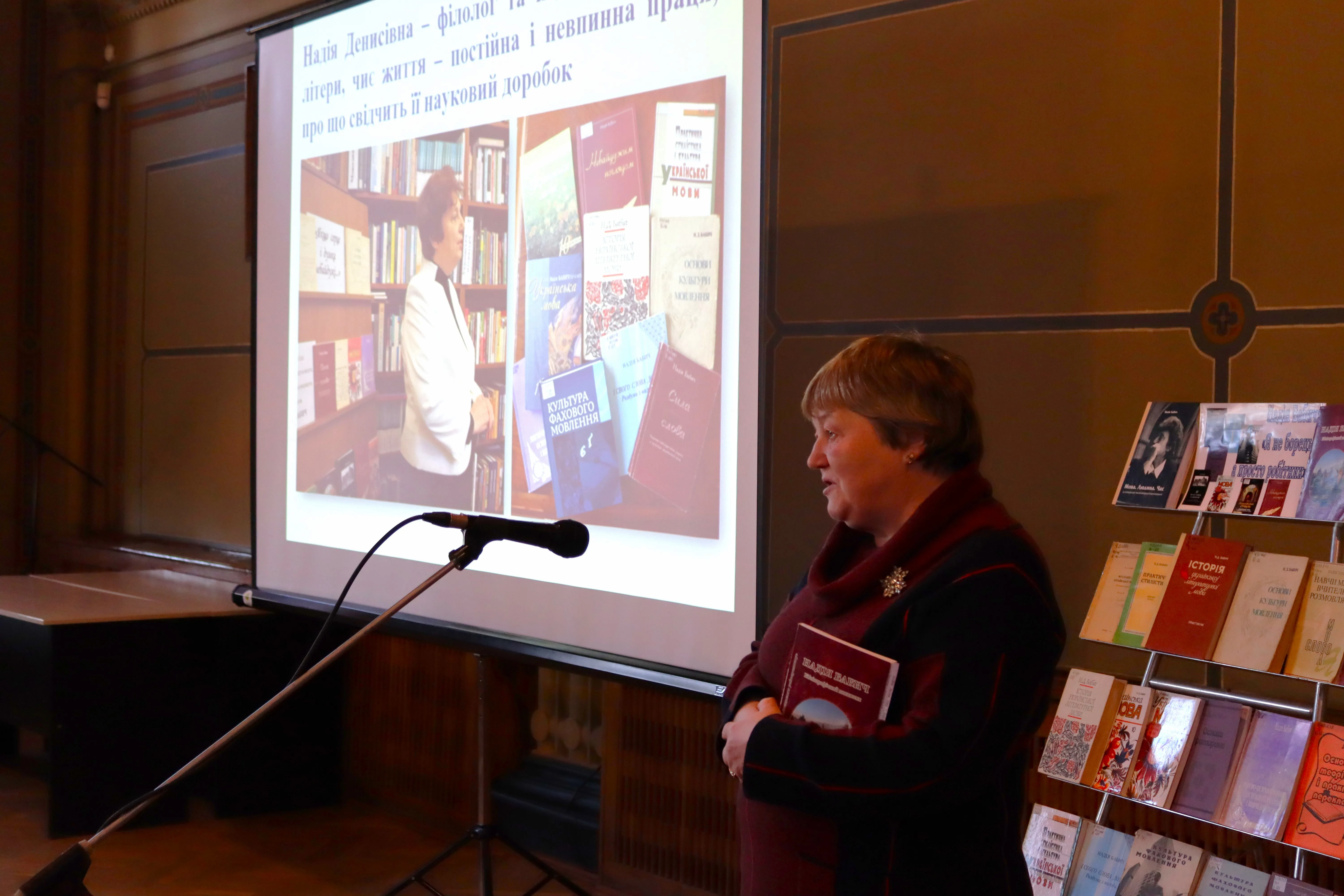 Презентація супроводжувалася аудіофрагментами радіопередач та відеоматеріалами, що відобразили значний внесок Надії Бабич у розвиток української мовознавчої науки. Завершальним акордом заходу став виступ Народного артиста України Івана Дерди.
