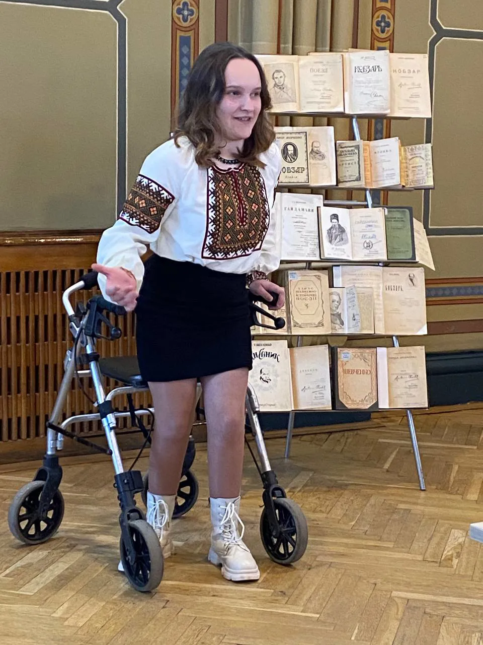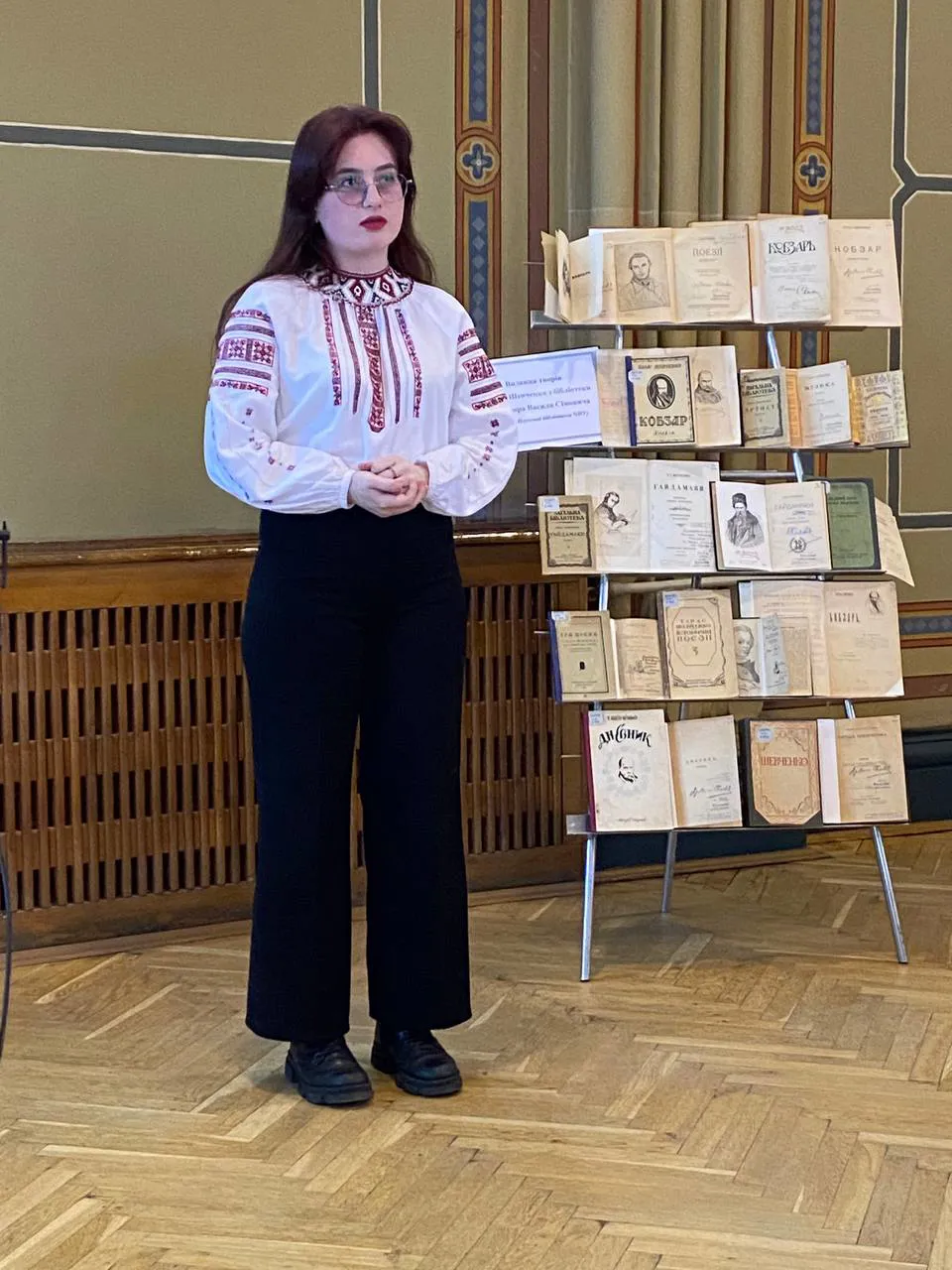 На завершення поетичної світлиці модераторка Лариса Маркуляк висловила подяку керівництву університету за підтримку у проведенні конкурсу, Науковій бібліотеці нашого університету – за чудову книжкову виставку з фондів книгозбірні, а також поету Омеляну Лупулу за книги, які автор передав переможцям поетичного турніру.