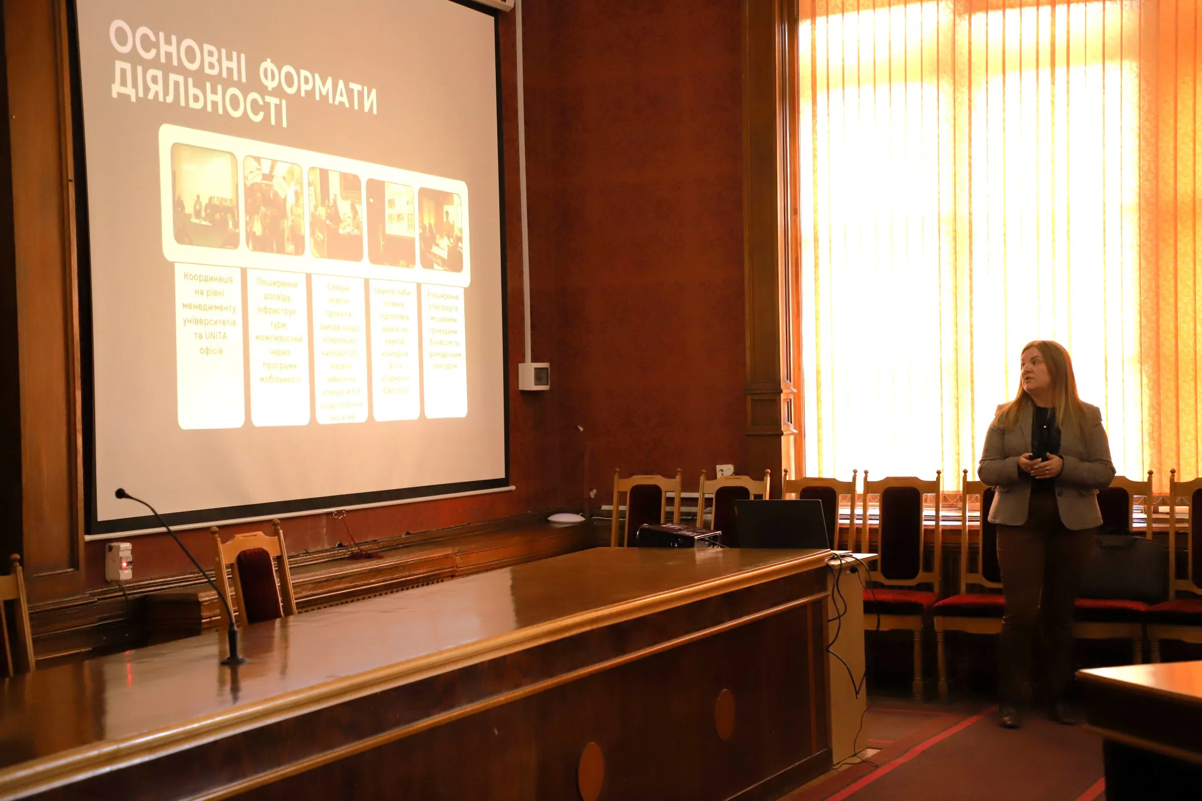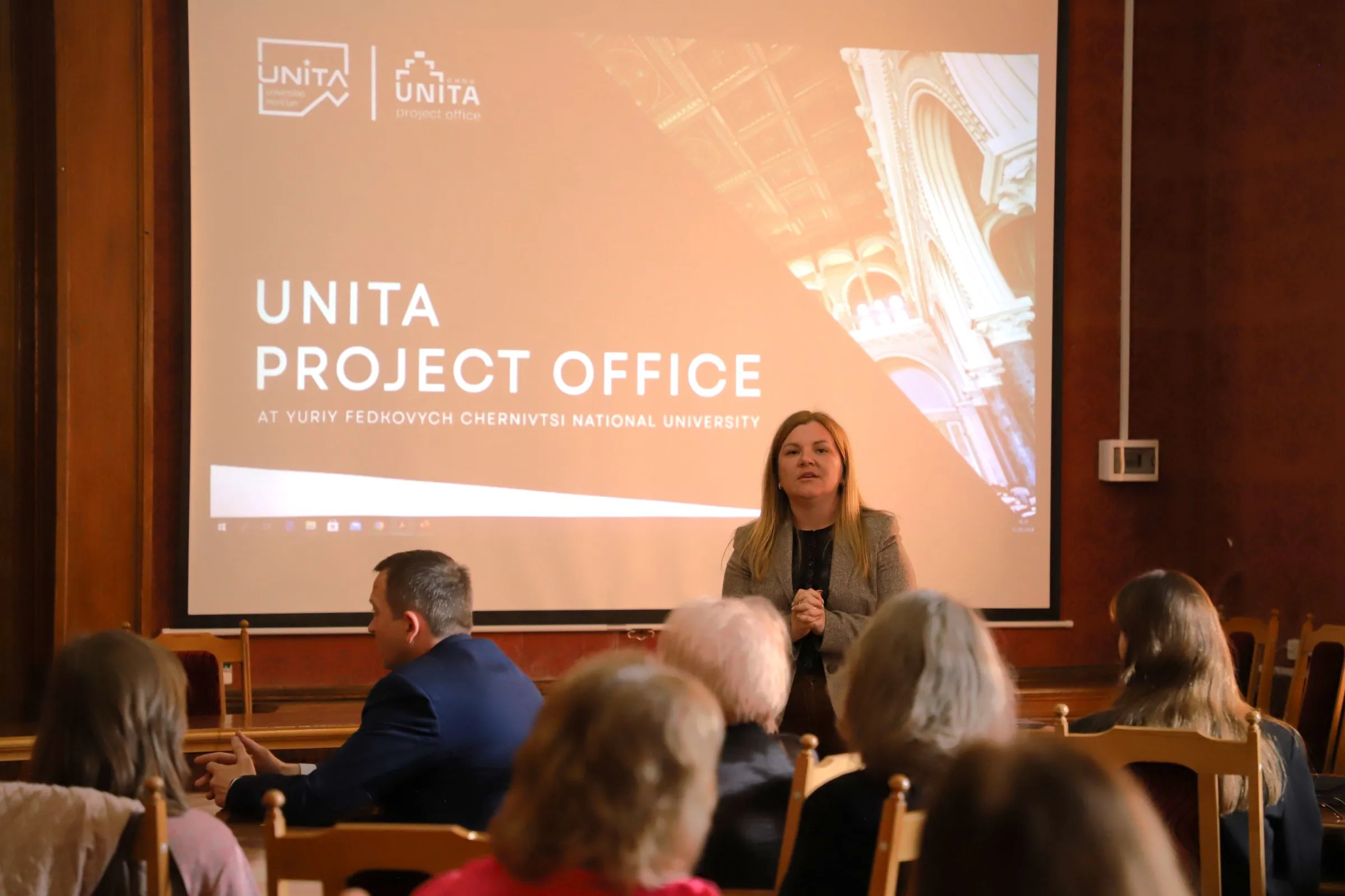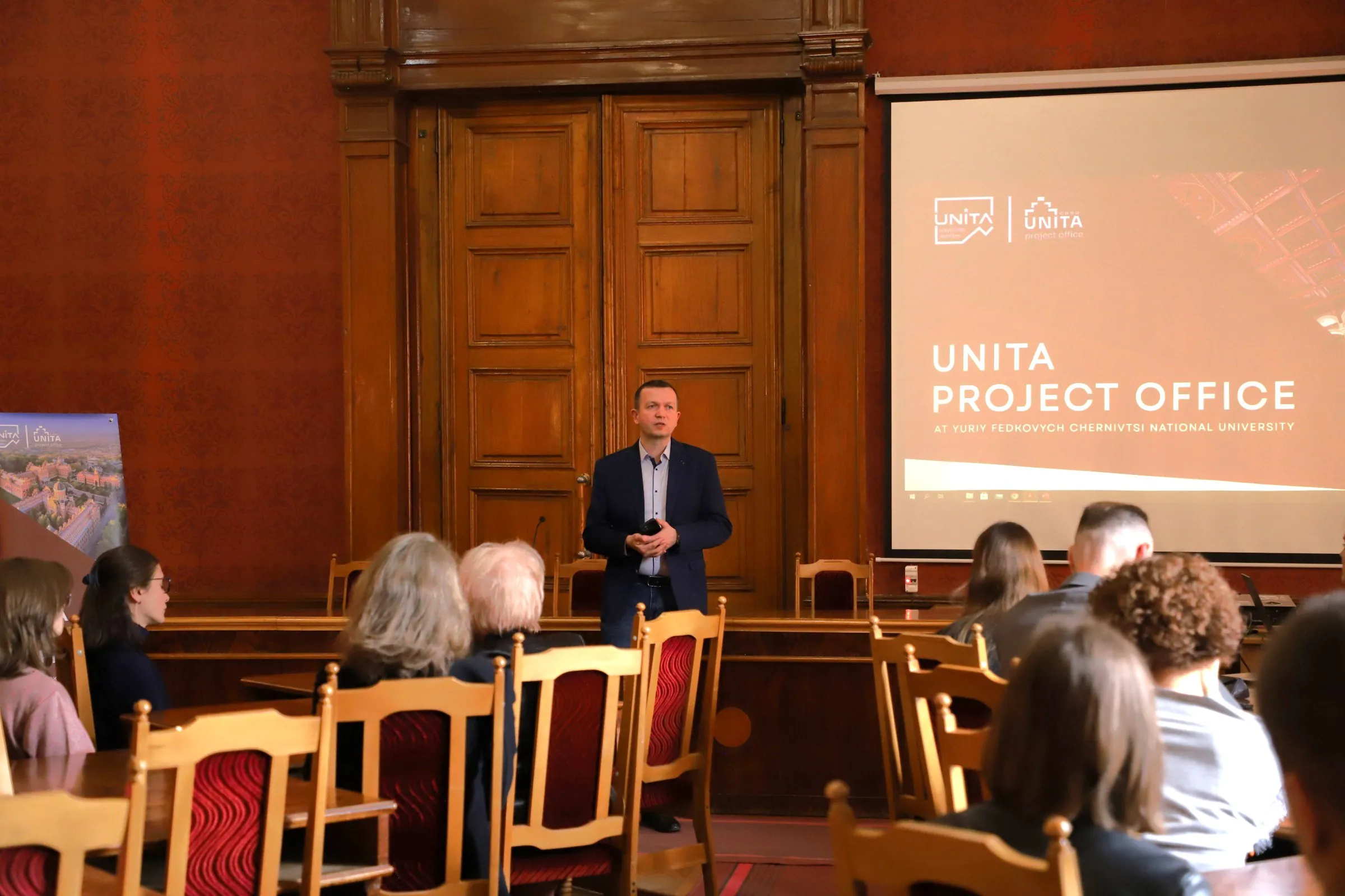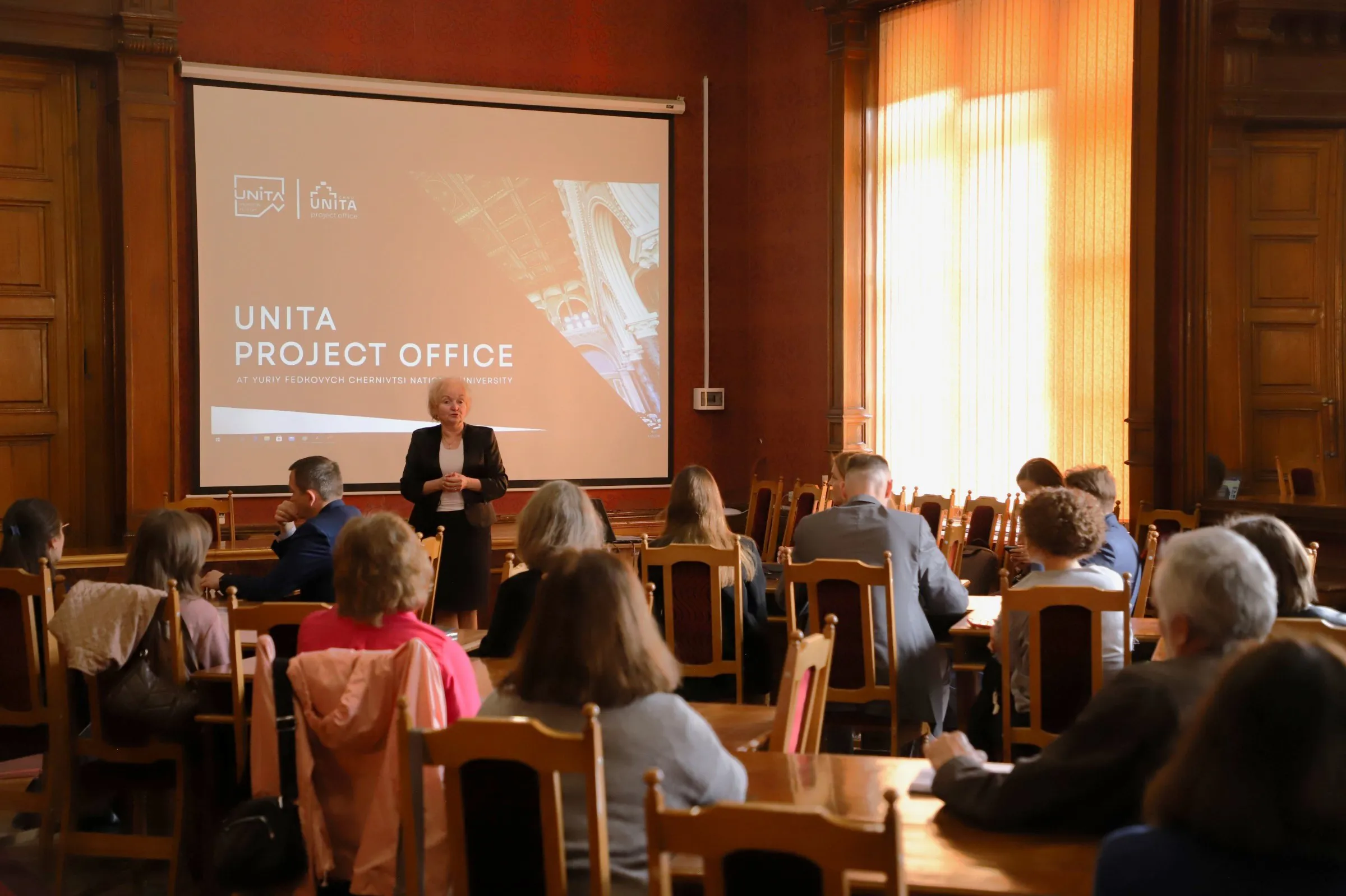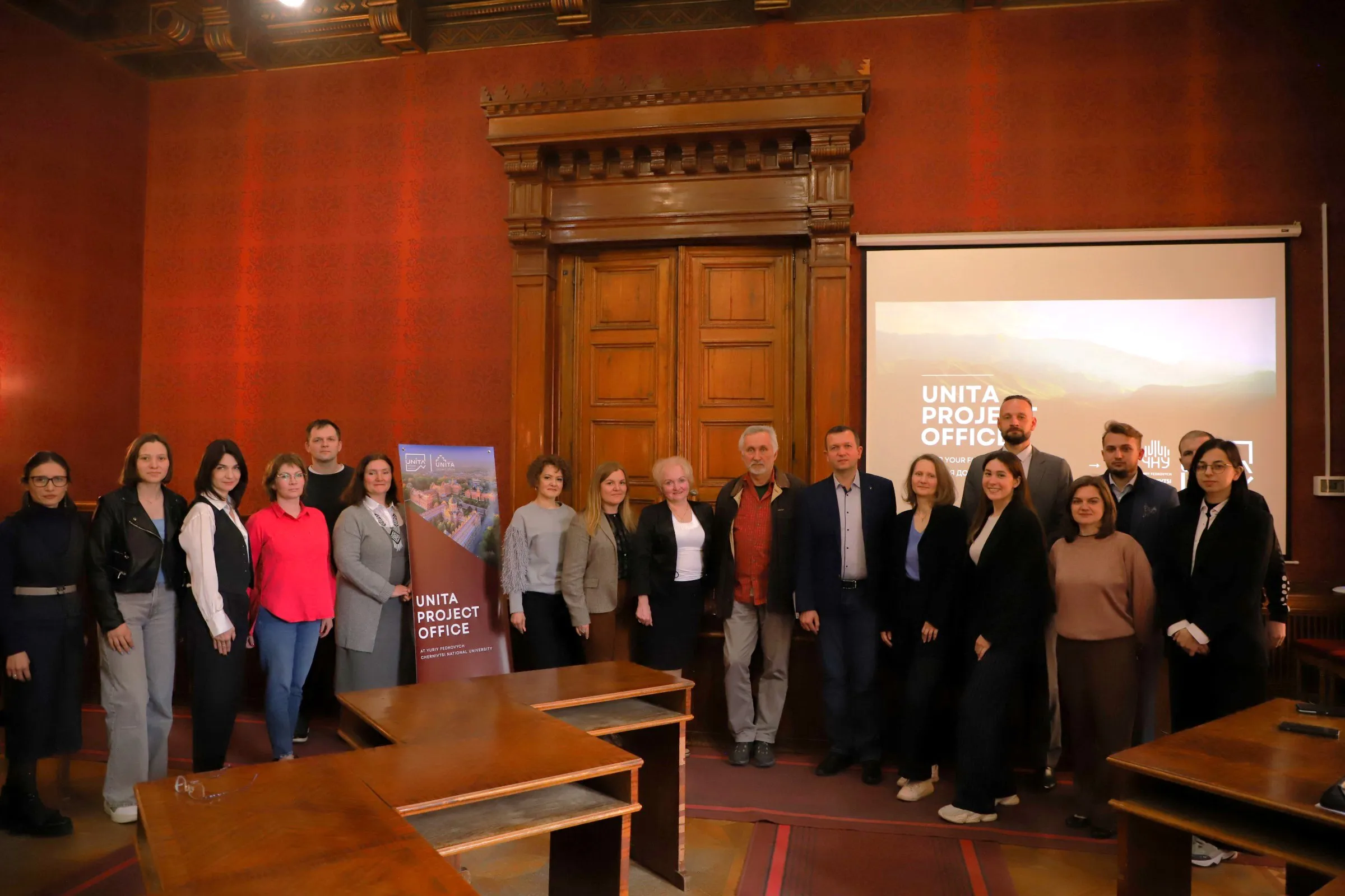 13 травня в Червоній залі Чернівецького національного університету імені Юрія Федьковича відбулася презентація UNITA Project Office. Захід відбувся напередодні Дня науки в Україні й став майданчиком ознайомлення співробітників та здобувачів вищої освіти нашого університету з можливостями, що відкриває членство у консорціумі UNITA - формати наукової, освітньої співпраці, найрізноманітніші форми мобільності тощо.