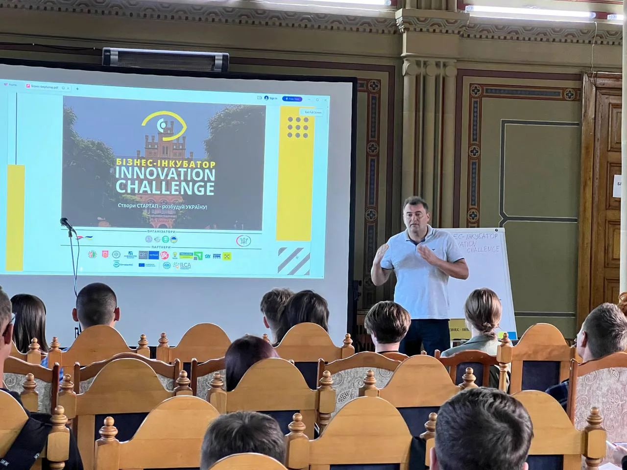 Першим спікером у новій програмі бізнес-інкубаторства був д.е.н., декан економічного факультету Руслан Білоскурський з темою: "Підприємництво та інновації".