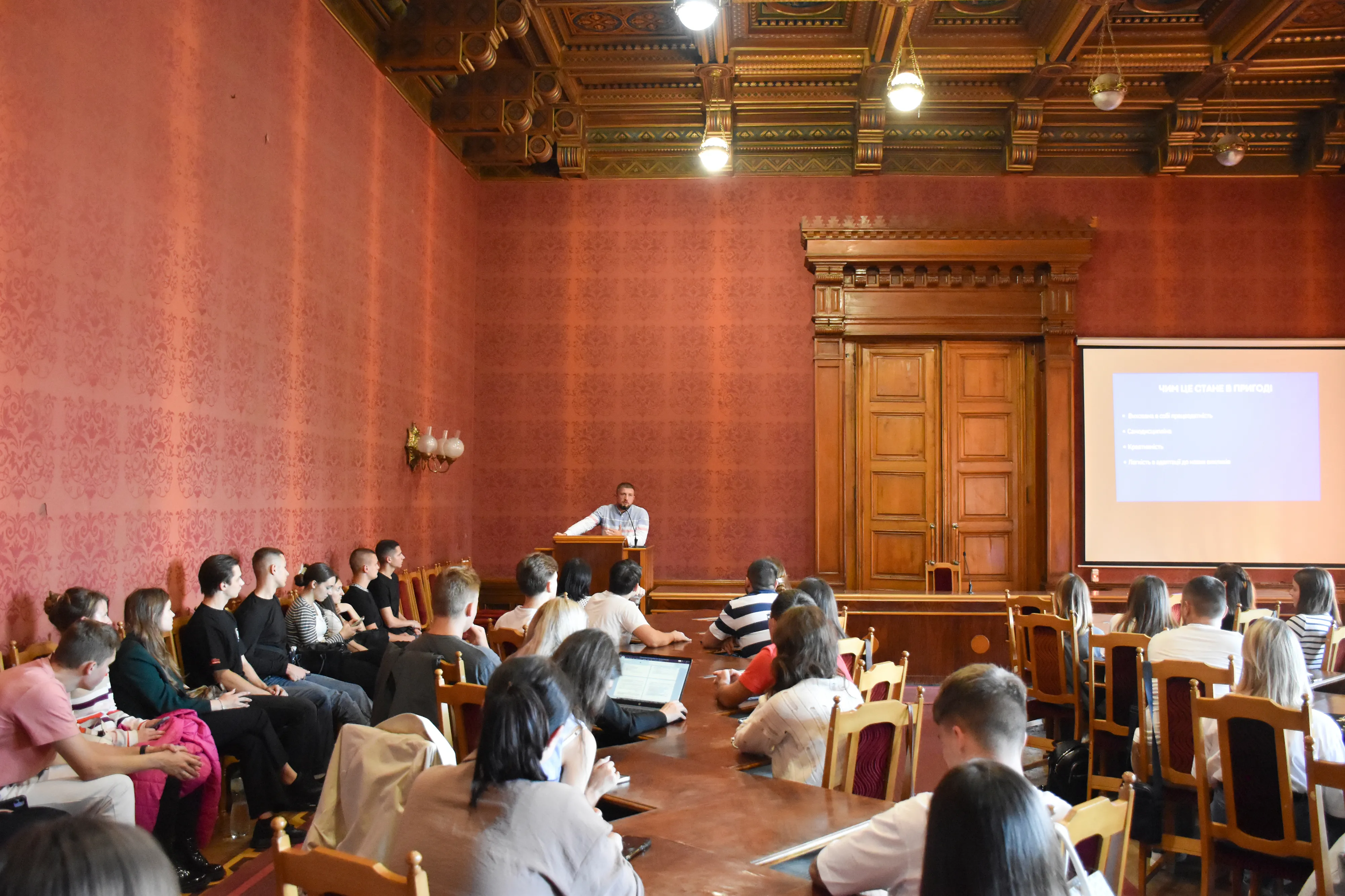 24 вересня у Червоній залі Чернівецького національного університету імені Юрія Федьковича відбувся бізнес-захід «One Day Business Mind», організований спільно з Університетським центром кар'єри. Подія була спрямована на розвиток бізнес-мислення та залучення студентів до підприємницької діяльності. З вітальним словом до учасників зустрічі звернувся проректор з науково-педагогічної роботи та цифрової трансформації Андрій Верстяк.