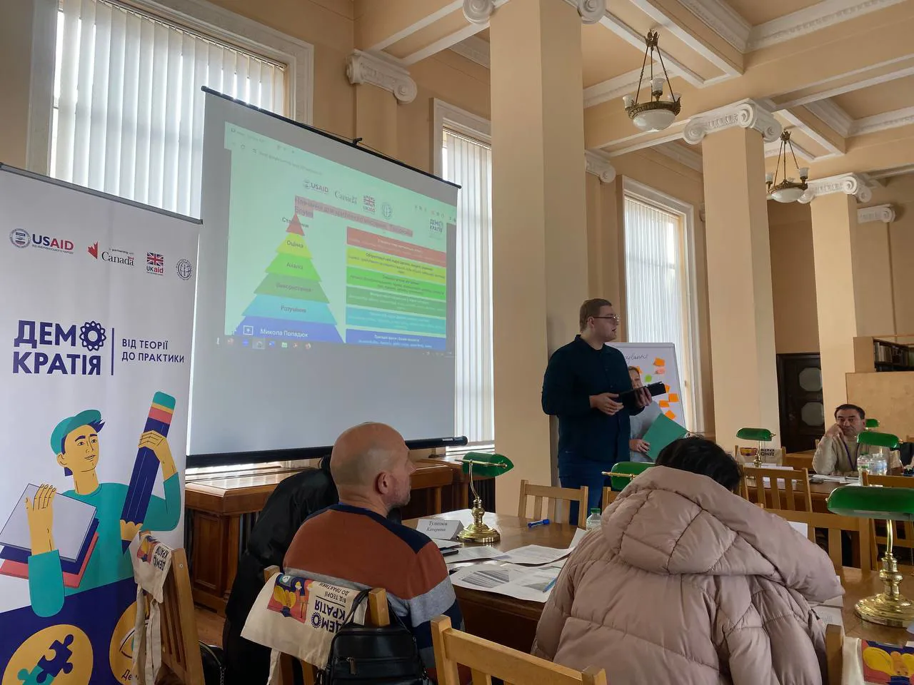 26 грудня викладач кафедри політології та державного управління, кандидат політичних наук Ірина Равлик разом з Миколою Попадюком - консультантом з громадянської освіти IFES, вчителем, директором Програми ENGin в Україні, молодіжним делегатом України в ООН 2023-2024 рр., провели тренінг з «Інтерактивних методик викладання».