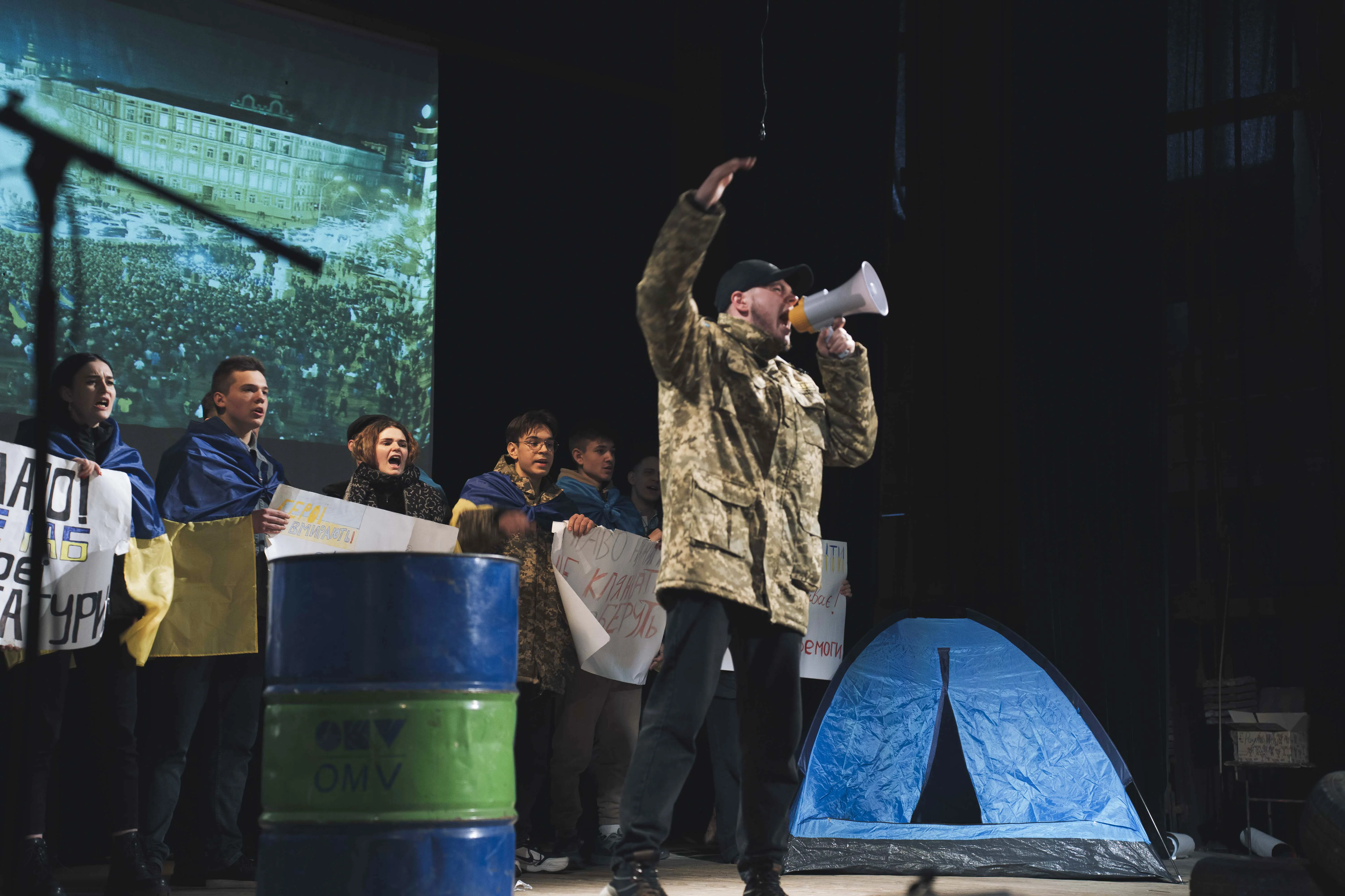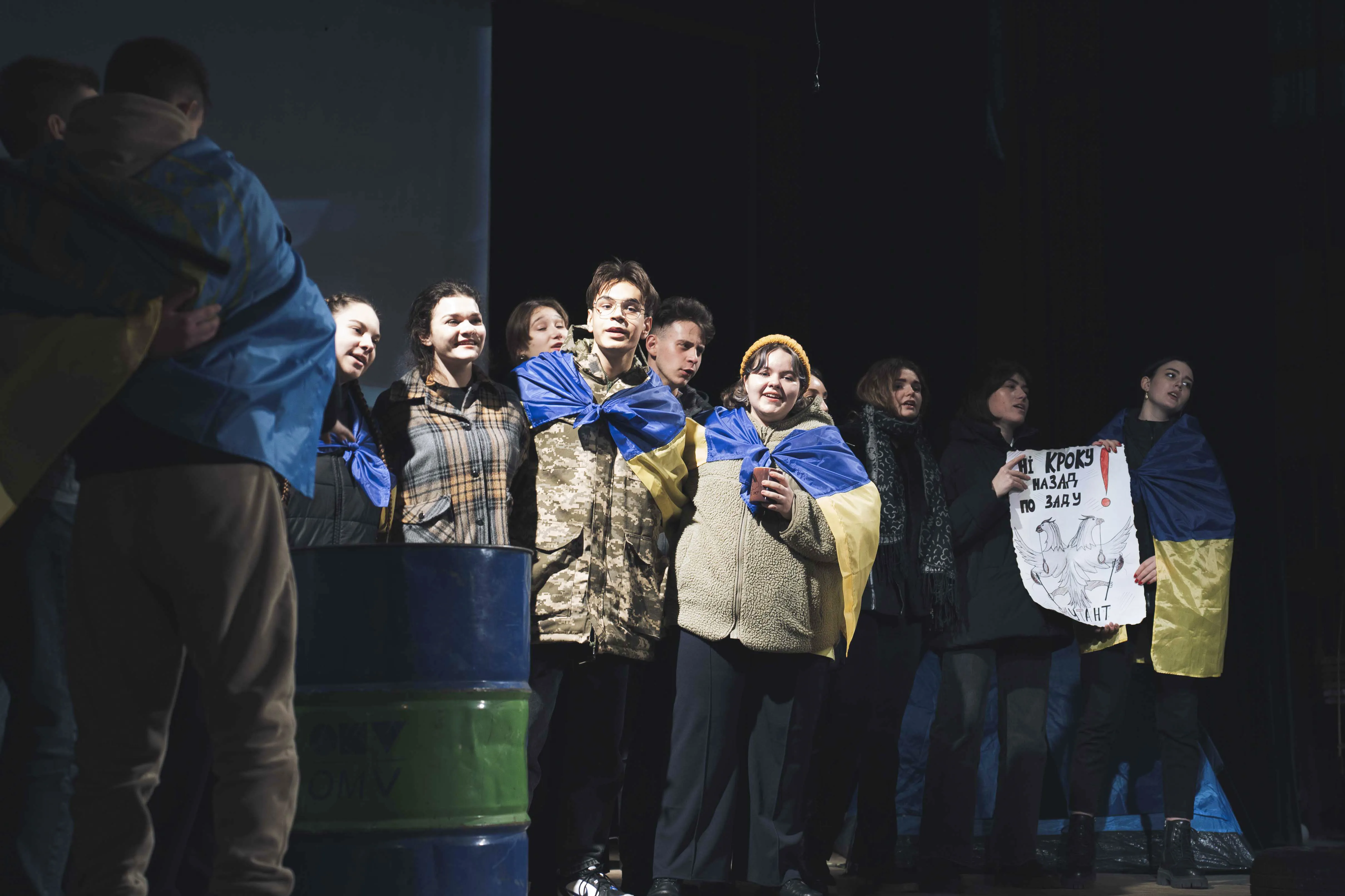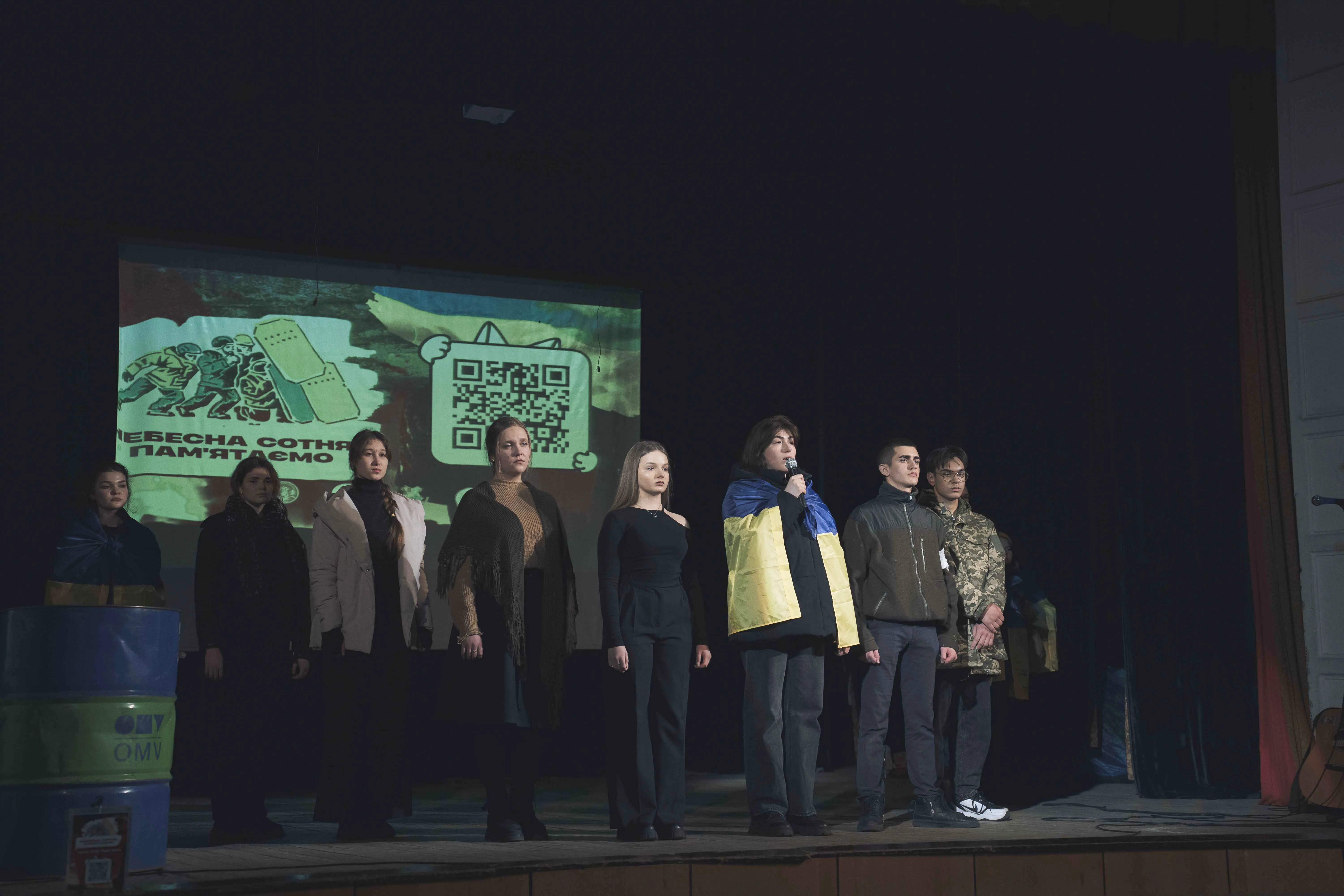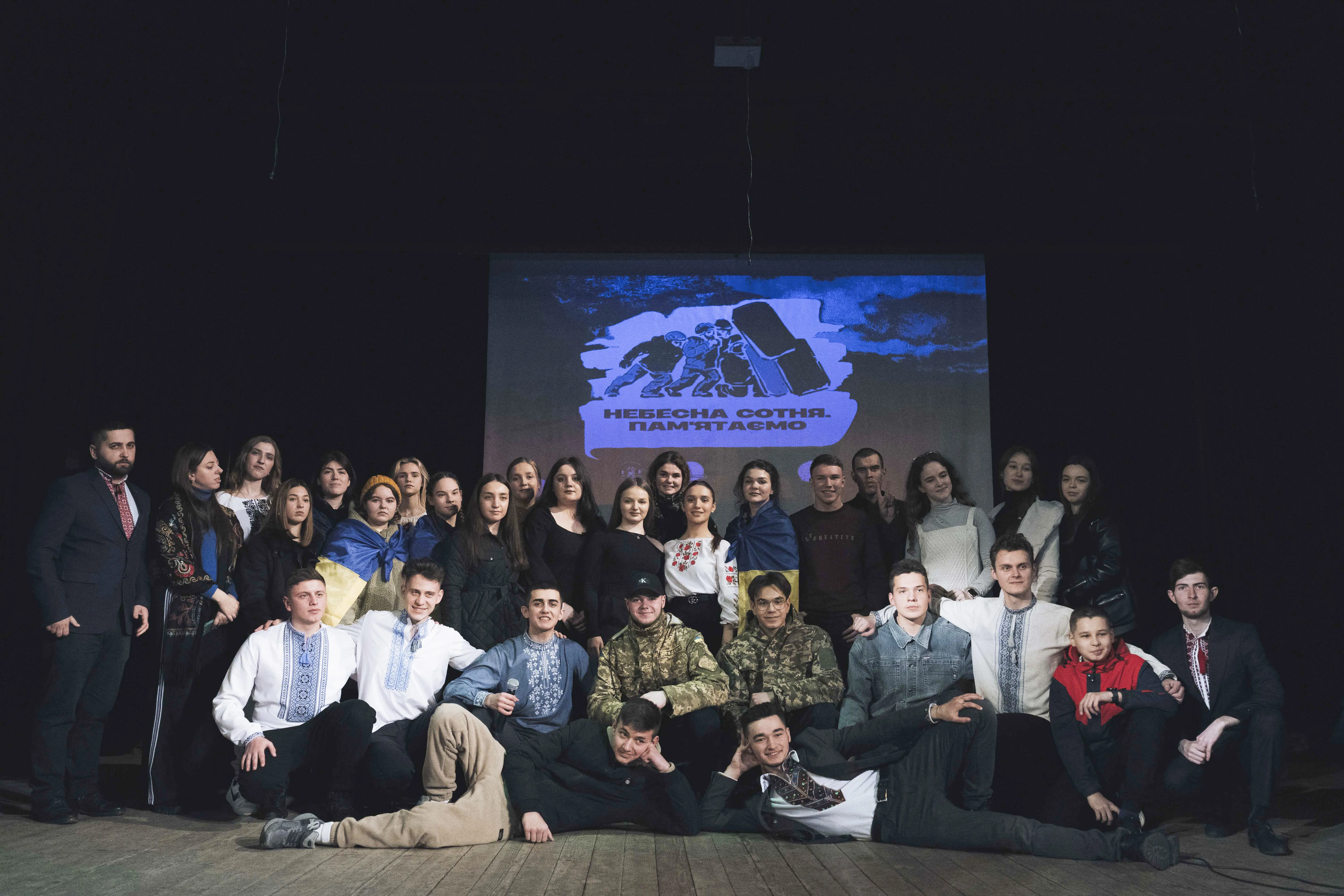 У залі аншлаг: школярі, студенти, викладачі, батьки, діти героїв. Центр культури і дозвілля студентів, який організував подію, традиційно, інсценував сцени Майдану: початок революції у листопаді, мітинг 8 грудня, зустріч Нового року на Майдані, перші жертви, розстріли Небесної Сотні 18-20 лютого. Актори театр-студії «Маска» ЦКіДу вміло передали емоції мітингувальників у ті буремні дні для держави. Студенти, учасники вокальної студії «Роси», виконували славень України, повстанських та актуальних на той час українських пісень. Танцювальний ансамбль «Дотик» через хореографічну постановку показав боротьбу українців у лютневі морозні дні.
