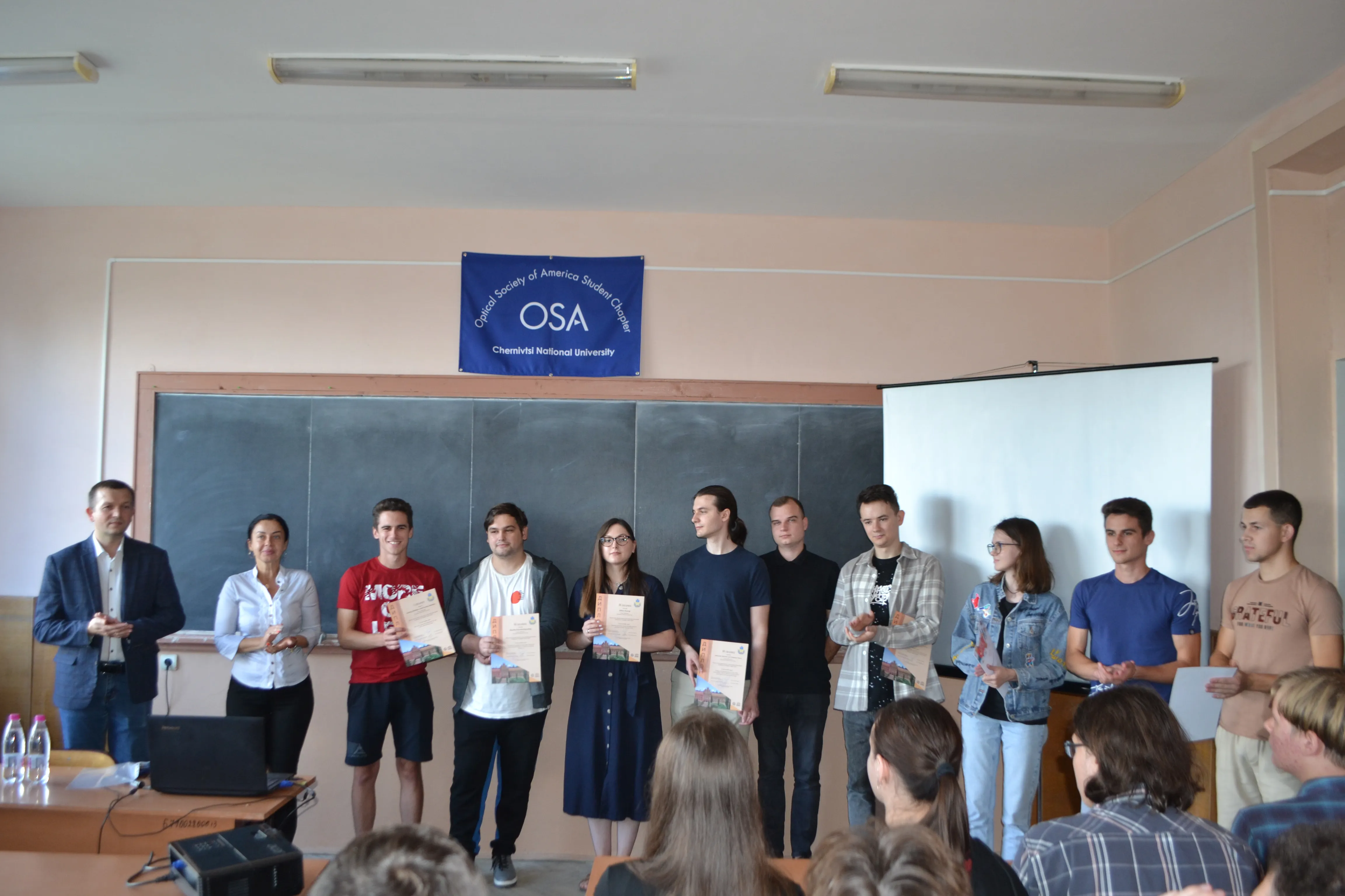 Наприкінці лекції були відзначені найкращі доповіді студентів та аспірантів. Вручення нагород відбулося за участі проректора з наукової роботи, професора Андрія Саміли та голови організаційного комітету конференції Кореляційна оптика, професора Клавдії Зенкової.