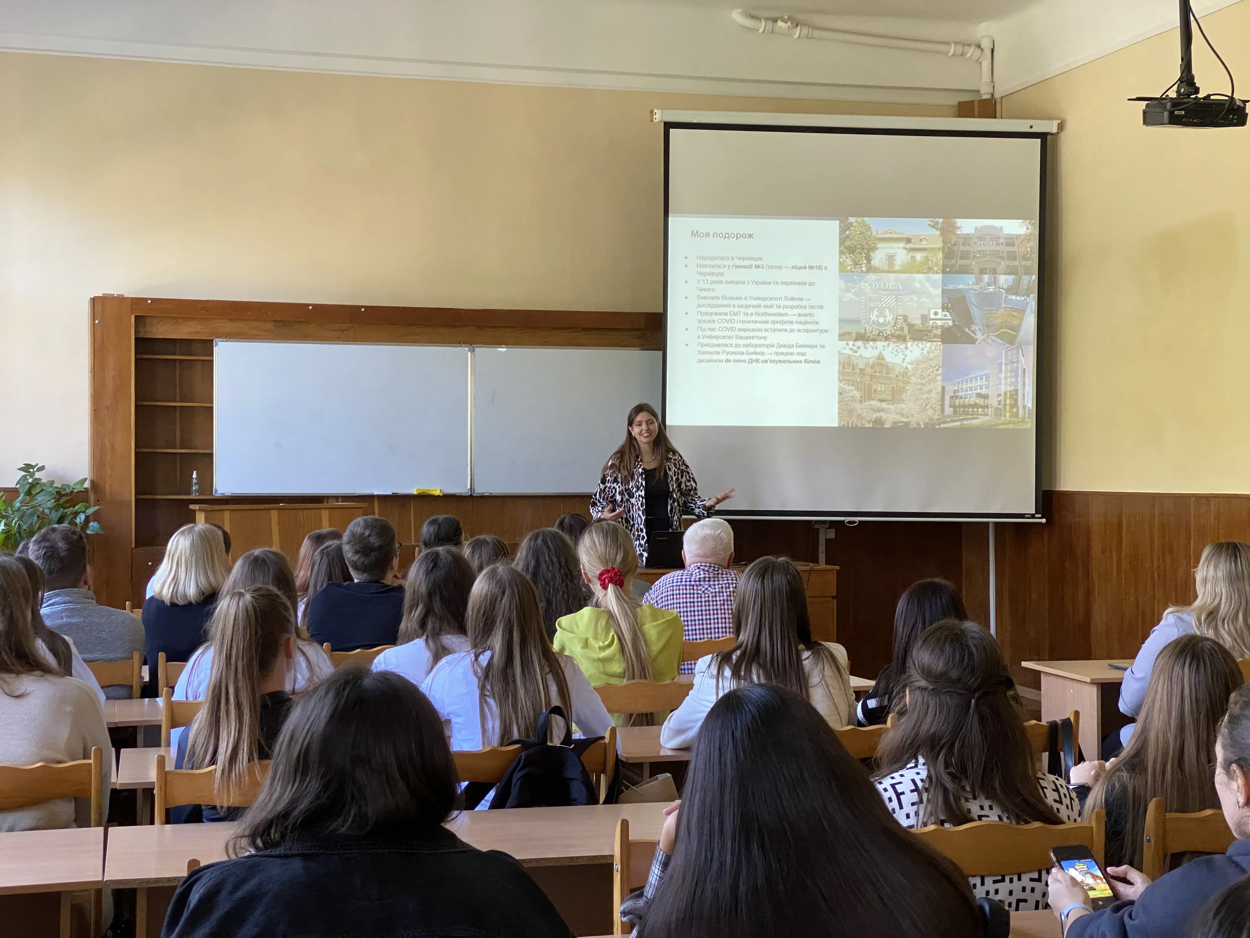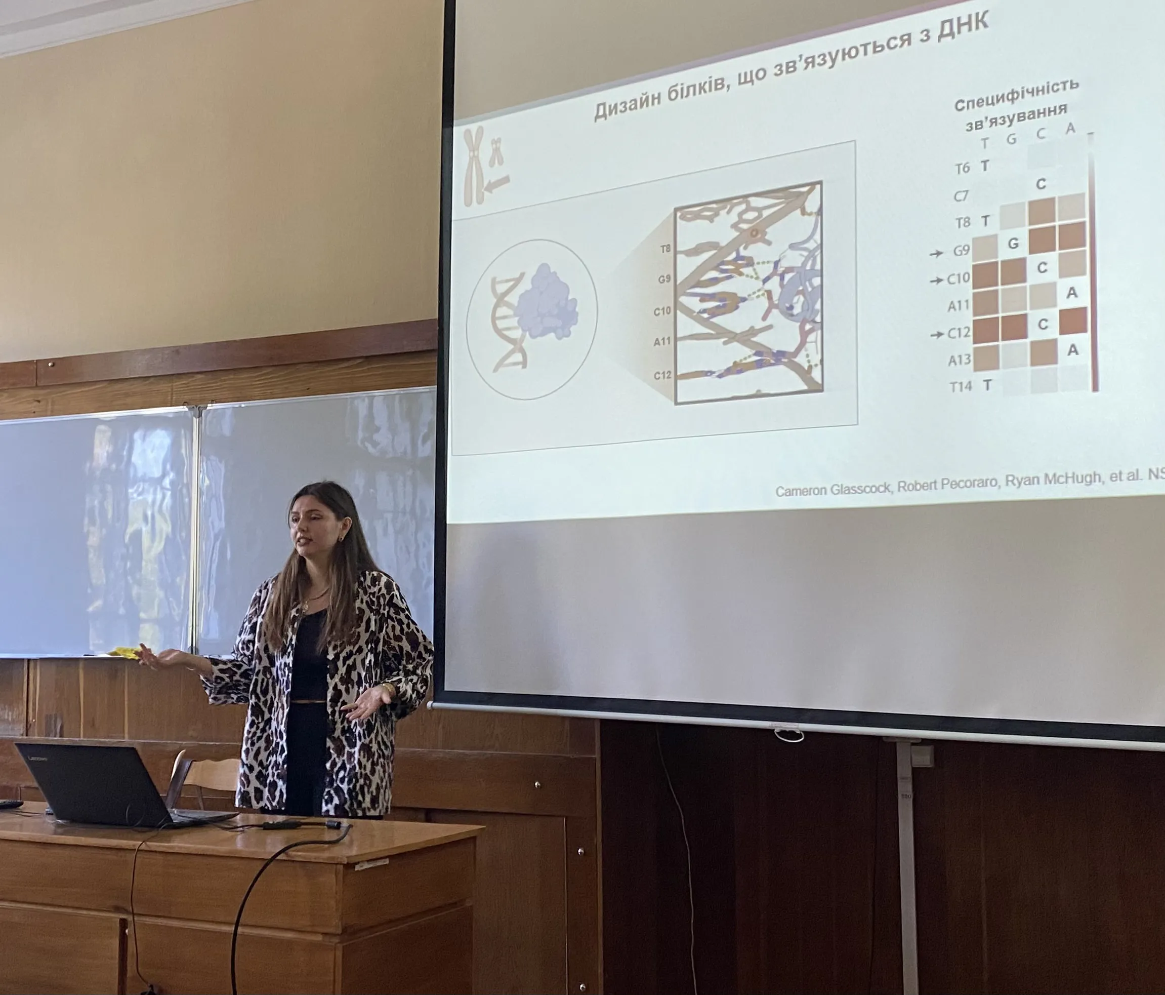 Науковці та студентська спільнота кафедри біохімії та біотехнології навчально-наукового інституту біології, хімії та біоресурсів Чернівецького національного університету імені Юрія Федьковича мали унікальну можливість зустрітися з Юлією Політанською, дослідницею з Інституту дизайну білків Вашингтонського університету (м. Сієтл, США), який очолює професор Девід Бейкер, лауреат Нобелівської премії з хімії 2024 року. Гостя провела лекцію, присвячену останнім досягненням у галузі дизайну білків та їхньому застосуванню в медицині. Дослідниця поділилася досвідом роботи над створенням білків з новими функціями, які можуть використовуватися для розробки інноваційних лікарських засобів та діагностичних систем. Питання щодо сучасних методичних підходів до лабораторних досліджень, можливості застосування штучного інтелекту у наукових розробках, перспективи застосування створених білків викликали особливу зацікавленість та жваве обговорення.
