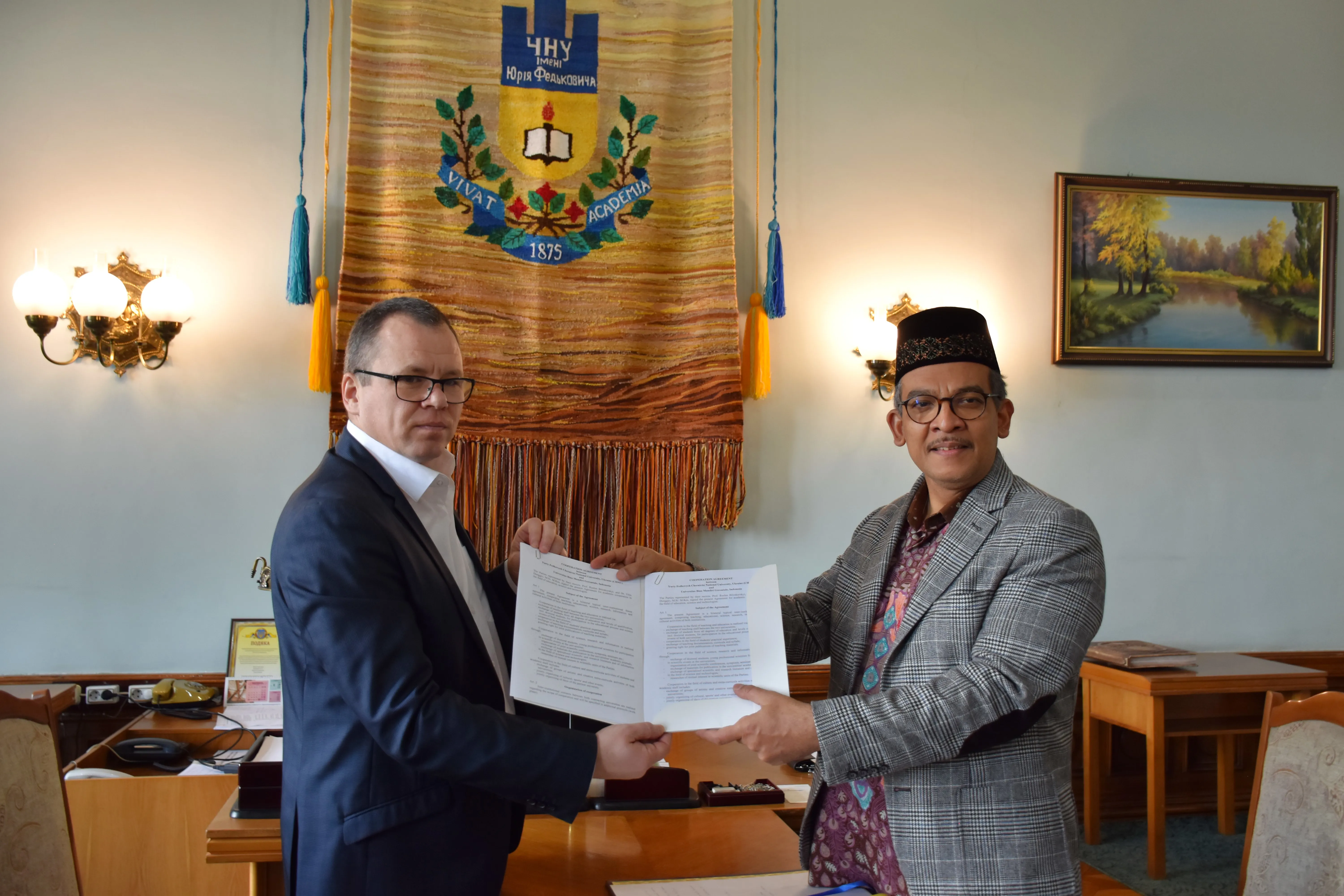 1 листопада до Чернівецького національного університету імені Юрія Федьковича прибула офіційна делегація з Республіки Індонезія. Надзвичайний і Повноважний Посол Індонезії в Україні Аріф Мухаммед Басалама зустрівся з ректором університету Русланом Білоскурським для обговорення перспектив співпраці з університетом та підписання меморандуму про співробітництво.