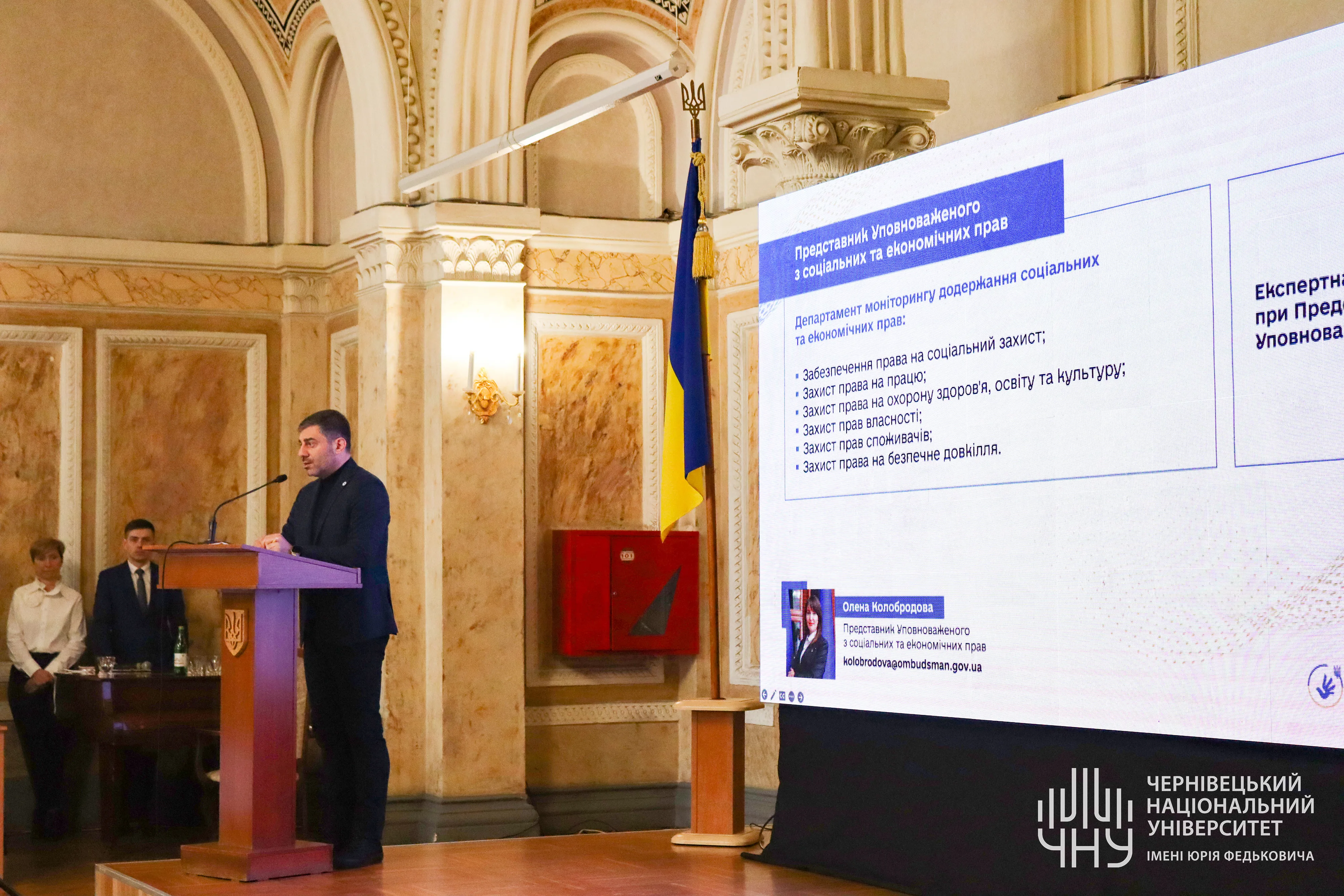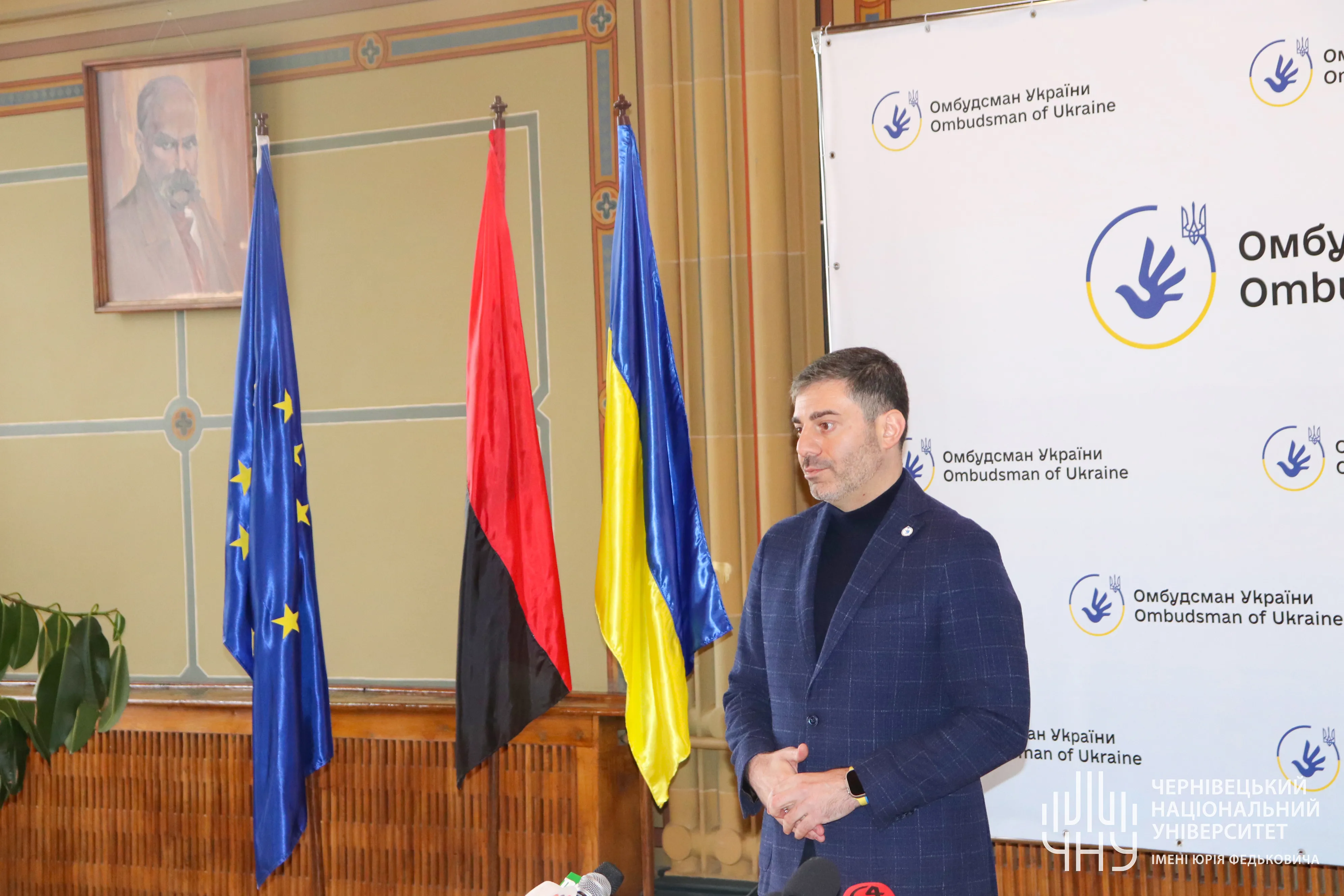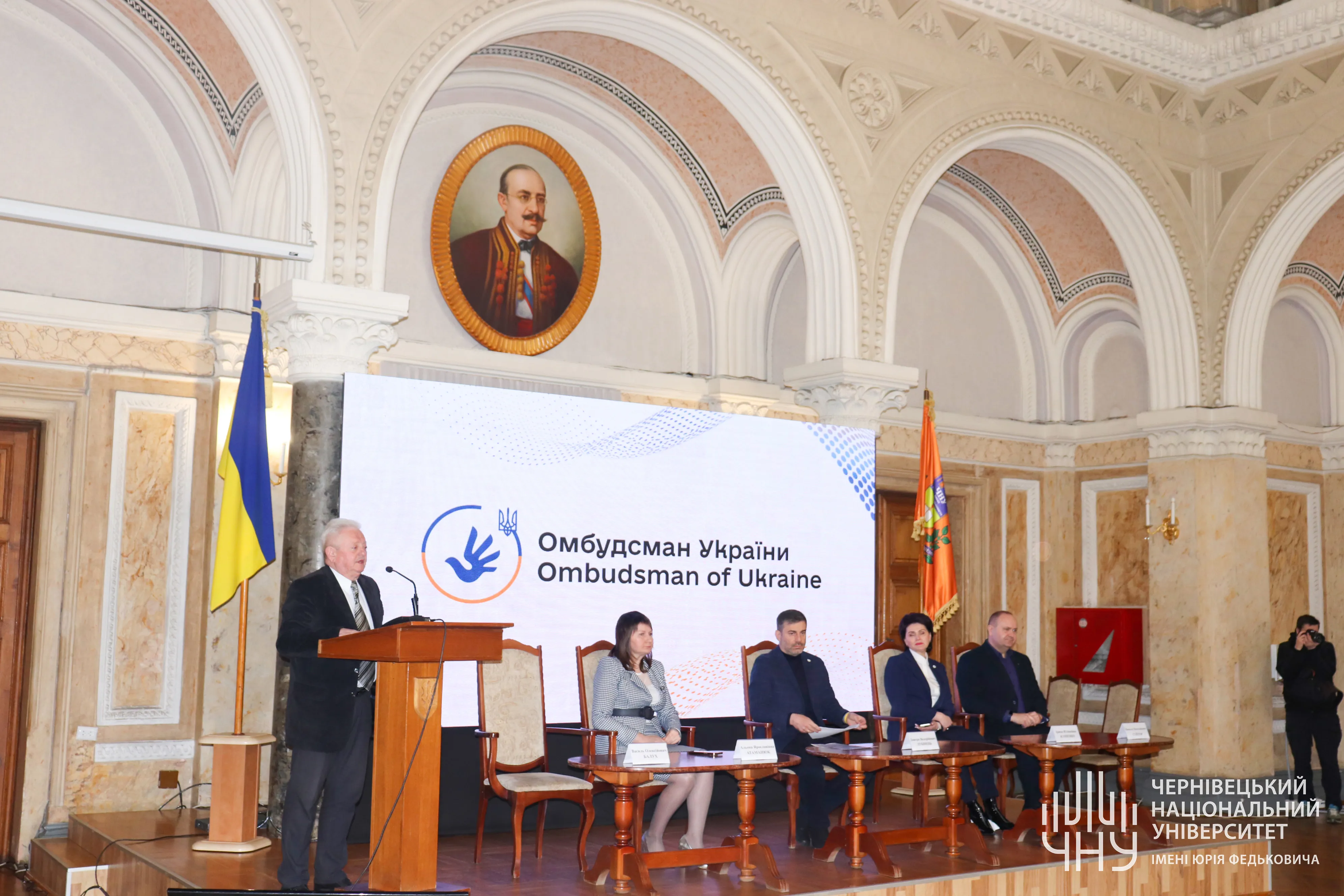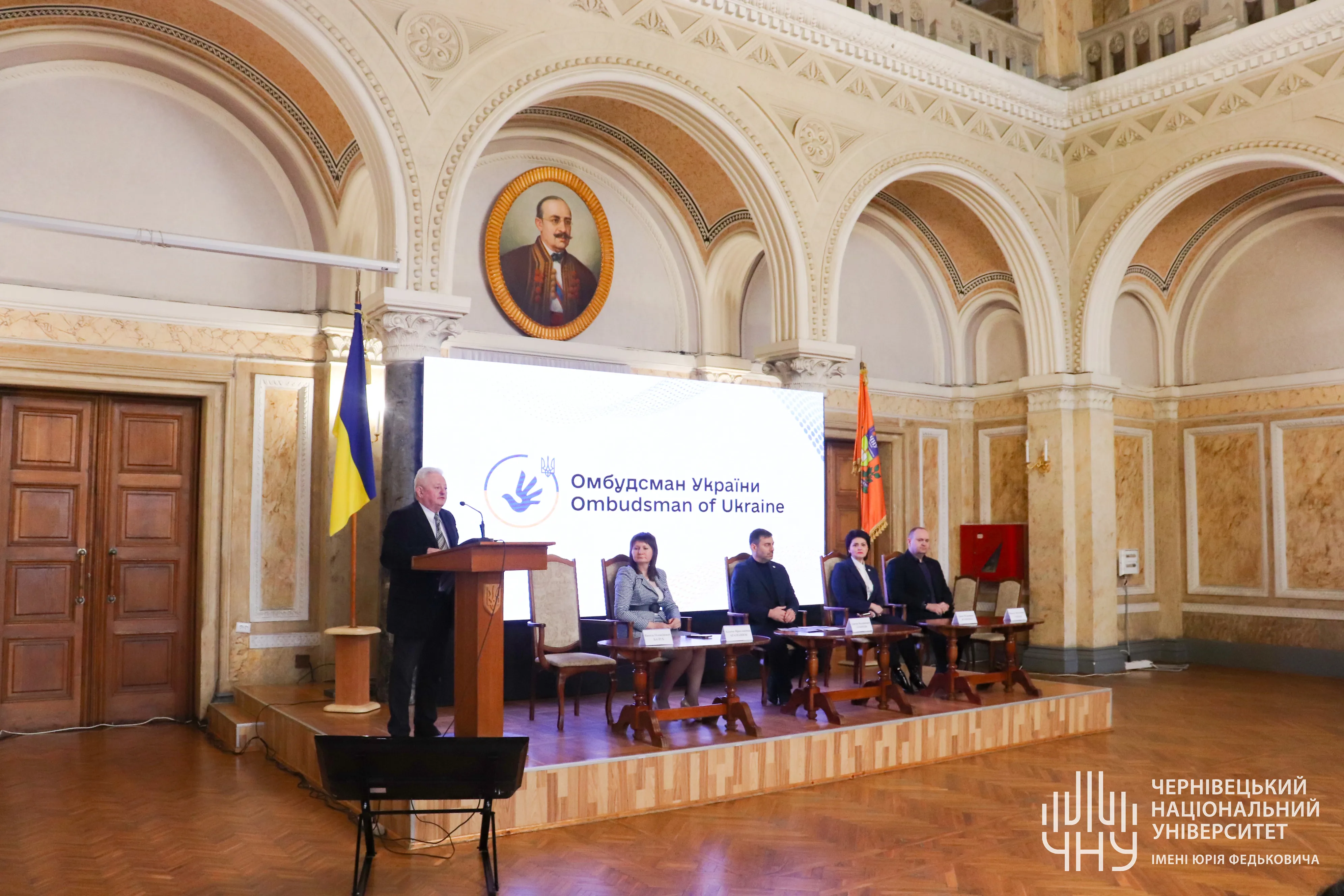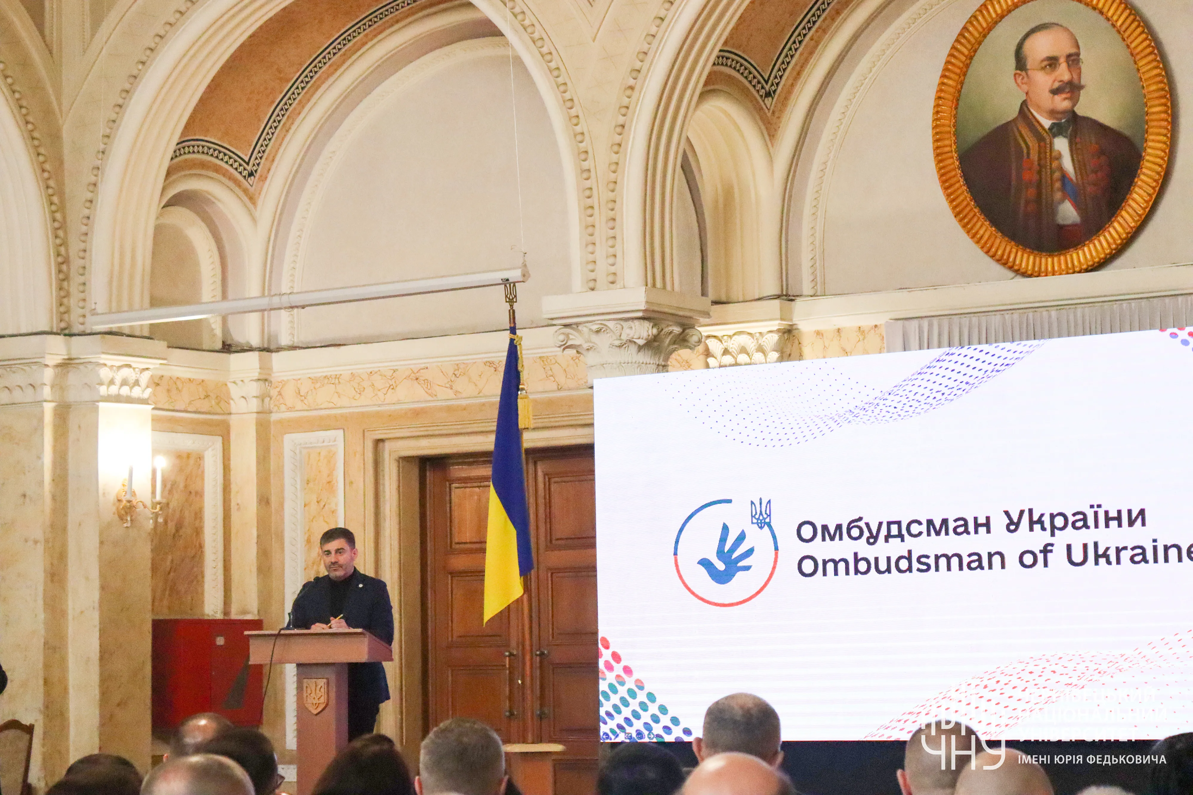 15 березня у Мармуровій залі Чернівецького національного університету імені Юрія Федьковича відбувся захід «Головні аспекти роботи Секретаріату Уповноваженого Верховної Ради України з прав людини в умовах збройної агресії РФ проти України». Серед учасників були народні депутати Верховної Ради України, Почесні консули, керівники органів місцевого самоврядування, представники благодійних фондів та організацій, професорсько-викладацький склад та студенти університету.