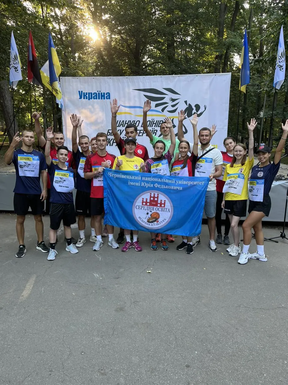 У Чернівцях кілька сотень людей взяли участь у цьому забігу, аби вшанувати пам'ять Героїв України. Серед них були і представники Чернівецького національного університету імені Юрія Федьковича. За активну участь у забігу нашому університету вручили прапор! Усі учасники заходу отримали подяки.