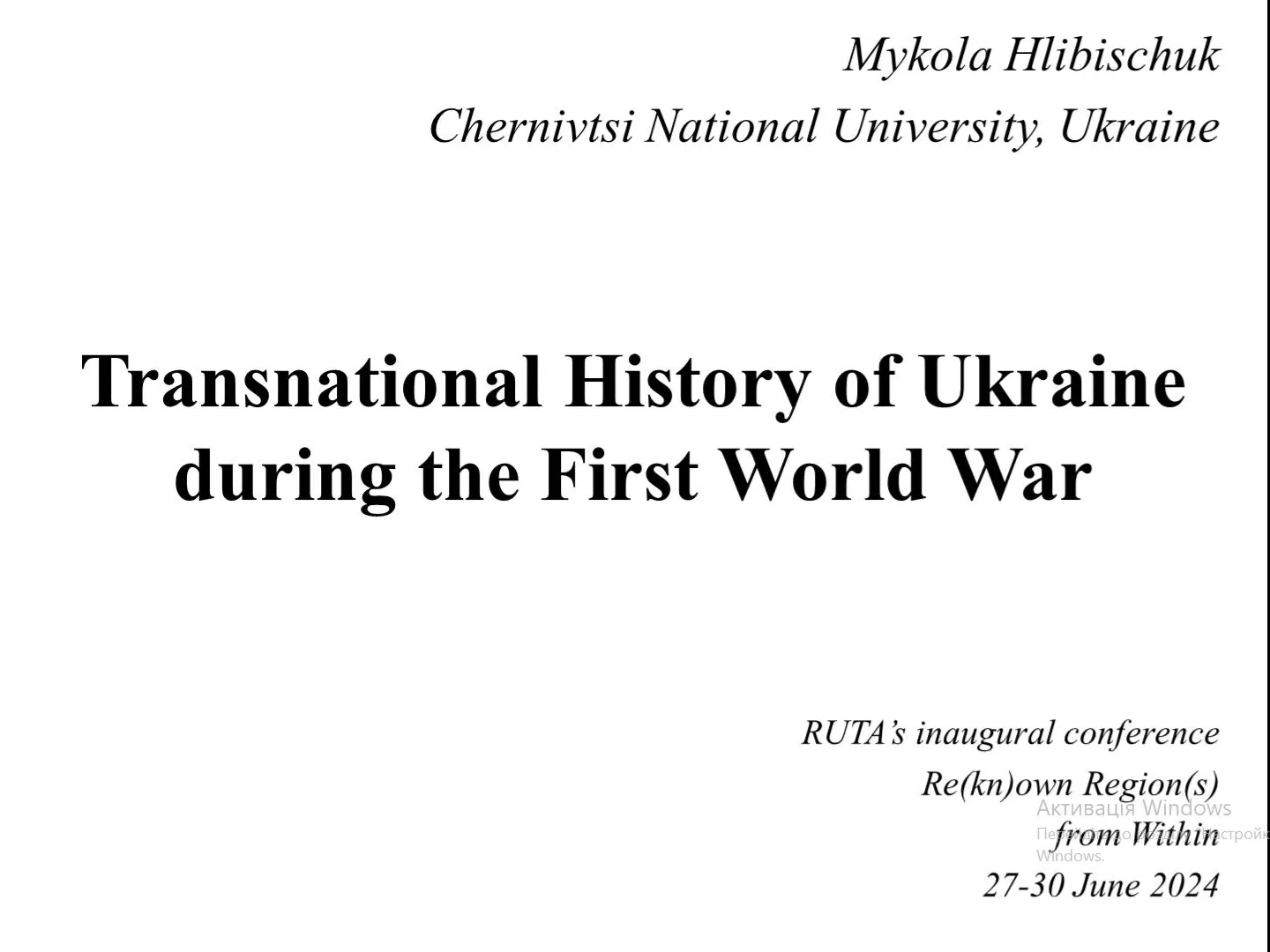 Чернівецький національний університет імені Юрія Федьковича представляв на цьому заході Микола Глібіщук – асистент кафедри всесвітньої історії. Тематика секції, на якій доповідав викладач нашого університету стосувалася історії українських міст у роки Першої світової війни. Іншими учасниками цієї секції були Артем Харченко (Харків), Валентина Шевченко (Київ/Львів), а модератором і диспутантом – Павло Єремєєв (Харків) та Оксана Дудко (Торонто, Канада). Доповідь, яка супроводжувалася презентацією, була присвячена важливості українського контексту для розуміння транснаціональної історії Великої війни 1914-1918 рр.