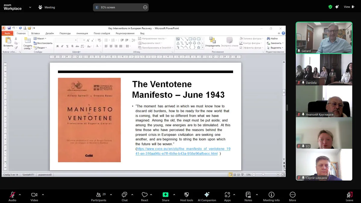 30 квітня у режимі онлайн відбулась відкрита лекція професора Джерарда МакКенна на тему: "Ключові заходи з європейської відбудови: уроки історії”.