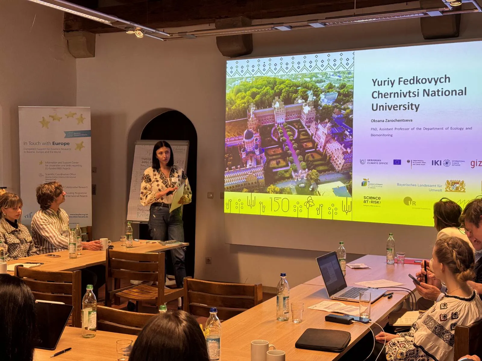 Перший день навчального візиту включав панельні дискусії про найкращі практики у сфері сталого розвитку, тематичні бесіди в формі World Cafe у трьох тематичних групах "Вода", "Відходи", "Енергія". Учасники з української та німецької сторін мали змогу представити проєкти, що виконуються в їх установах та громадах. Оксана Зароченцева познайомила учасників з Чернівецьким національним університетом імені Юрія Федьковича, який цьогоріч відзначає 150-річчя та з основними проєктами, в яких наразі бере участь кафедра екології та біомоніторингу. А саме – в міжнародному моніторингу зимових втрат бджолиних колоній Асоціації COLOSS, та в проєкті RestPoll за рамковою угодою