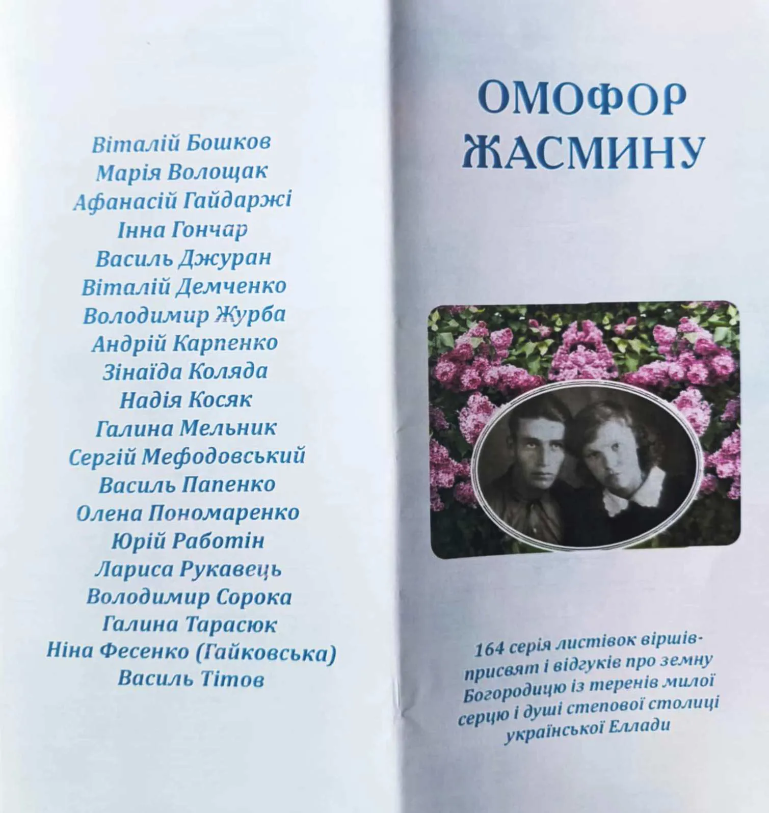 Також учасники дійства мали можливість ознайомитися з 164-ю серією листівок віршів-присвят: Омофор жасмину : серія листівок віршів-присвят і відгуків про земну Богородицю із теренів милої серцю і душі степової столиці української Еллади / авт. ідеї, упоряд. В. Джуран. Чернівці: Родовід, 2024. 12 л.