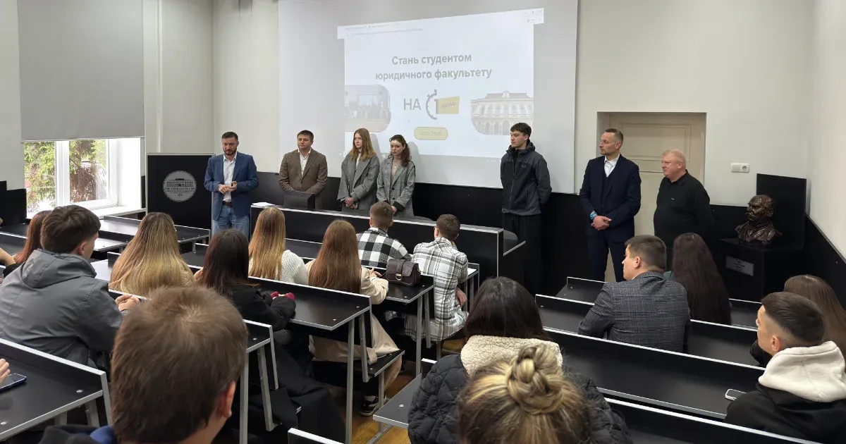 Спочатку школярі взяли участь в організаційній зустрічі, під час якої дізналися про історію юридичного факультету, спеціальності та освітні програми, які пропонуються вступникам, особливості вступної кампанії 2025 року.