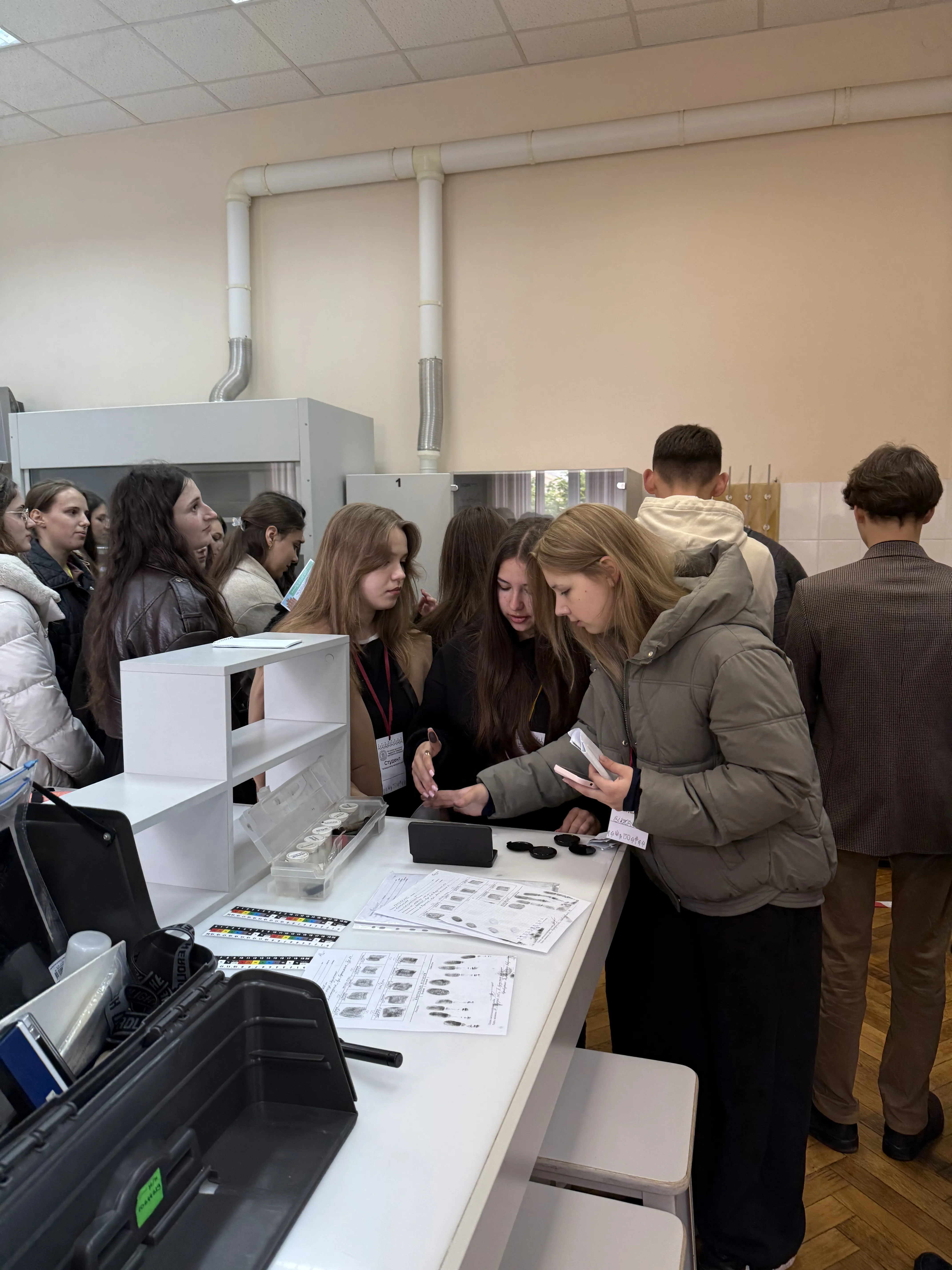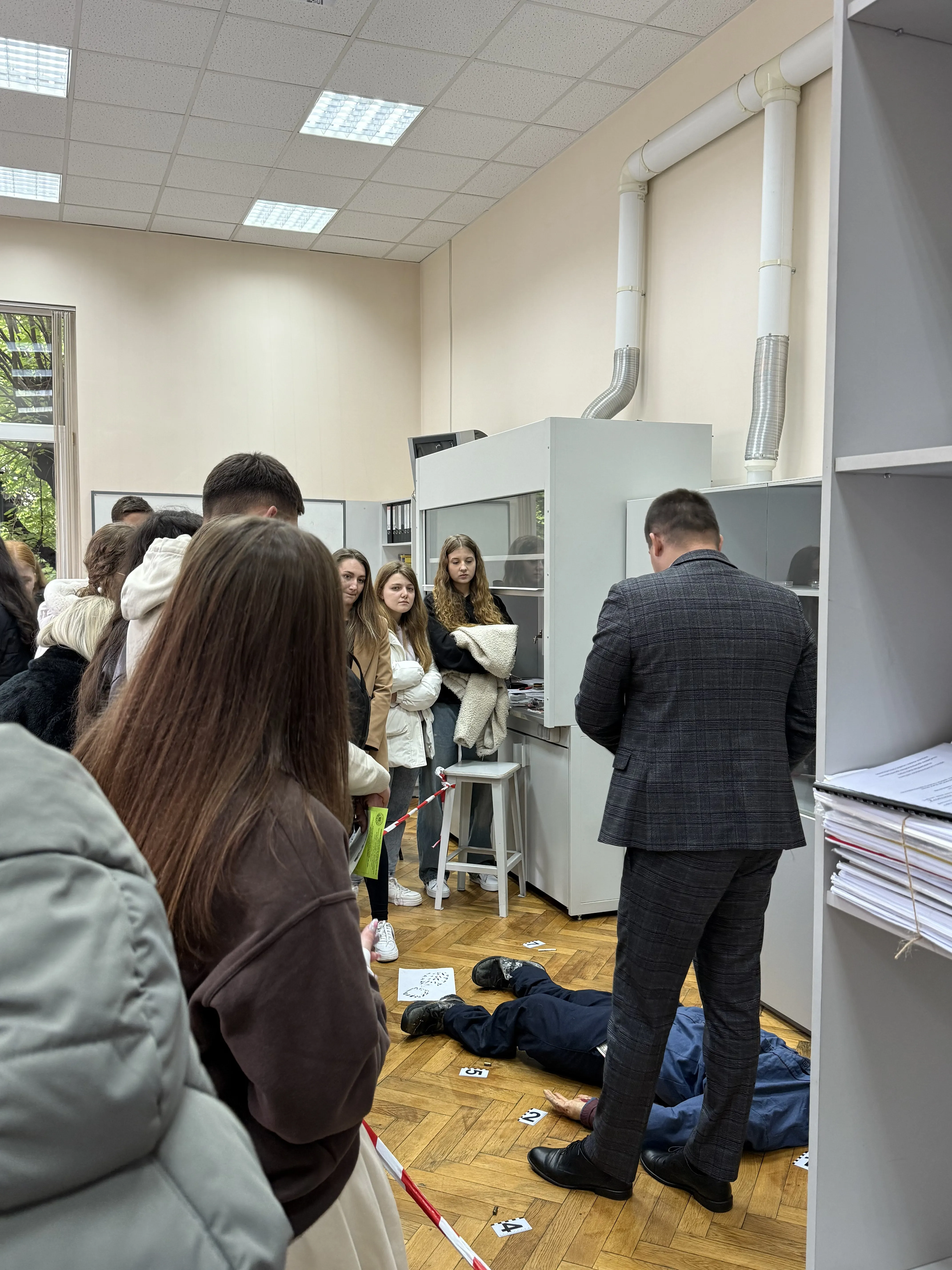 - Практичне заняття «Огляд місця події» (кафедра кримінального права) – справжній майстер-клас у криміналістичній лабораторії, де учасники змогли побачити, як проводиться дана слідча дія.