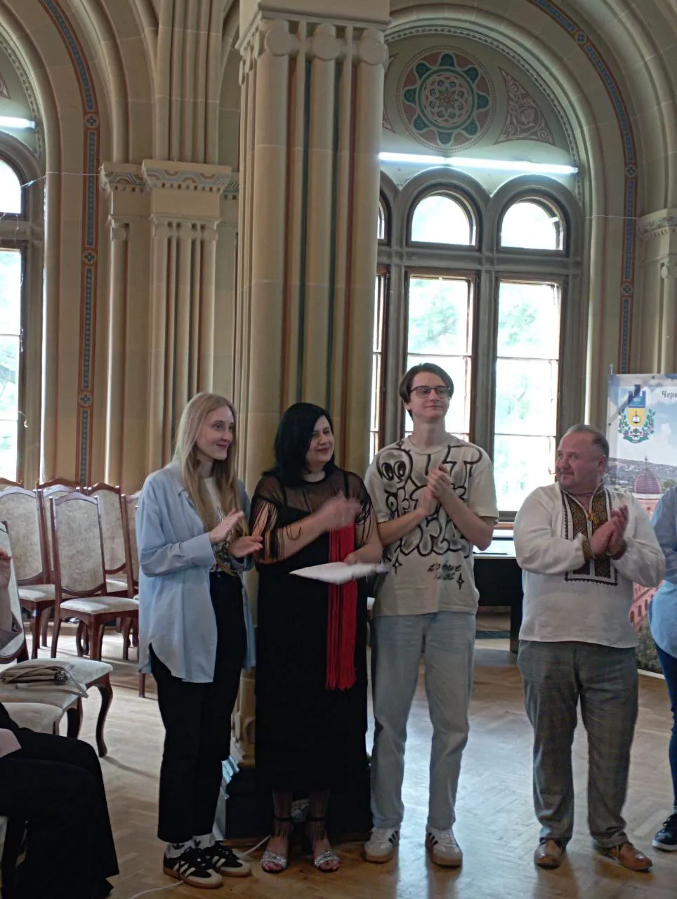 Маестро та гості концерту долучилися до благодійної ініціативи Центру культури і дозвілля ЧНУ з придбання зарядних станцій для військовослужбовців 107ї ТрО, які доставить Андрій Федоренко.